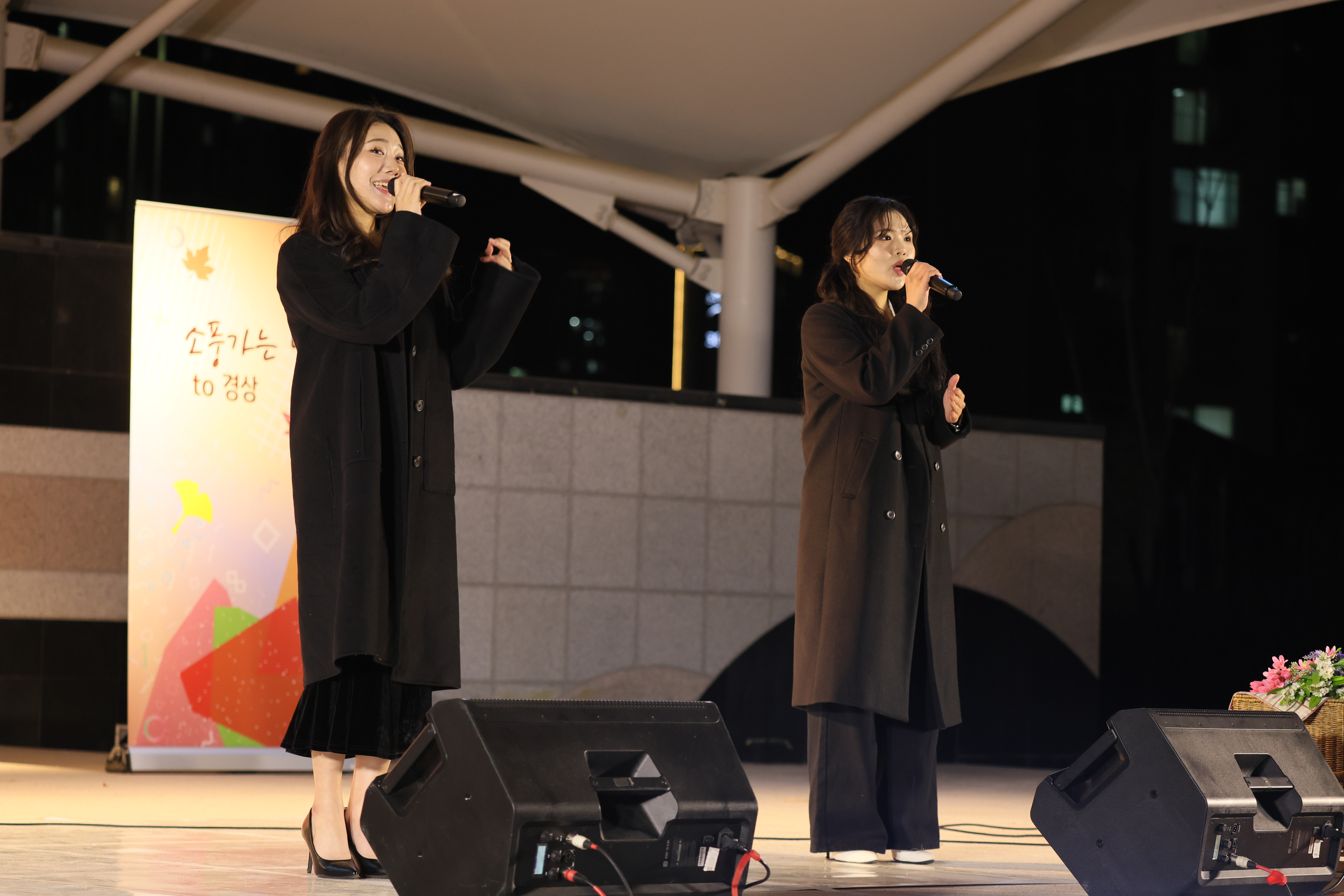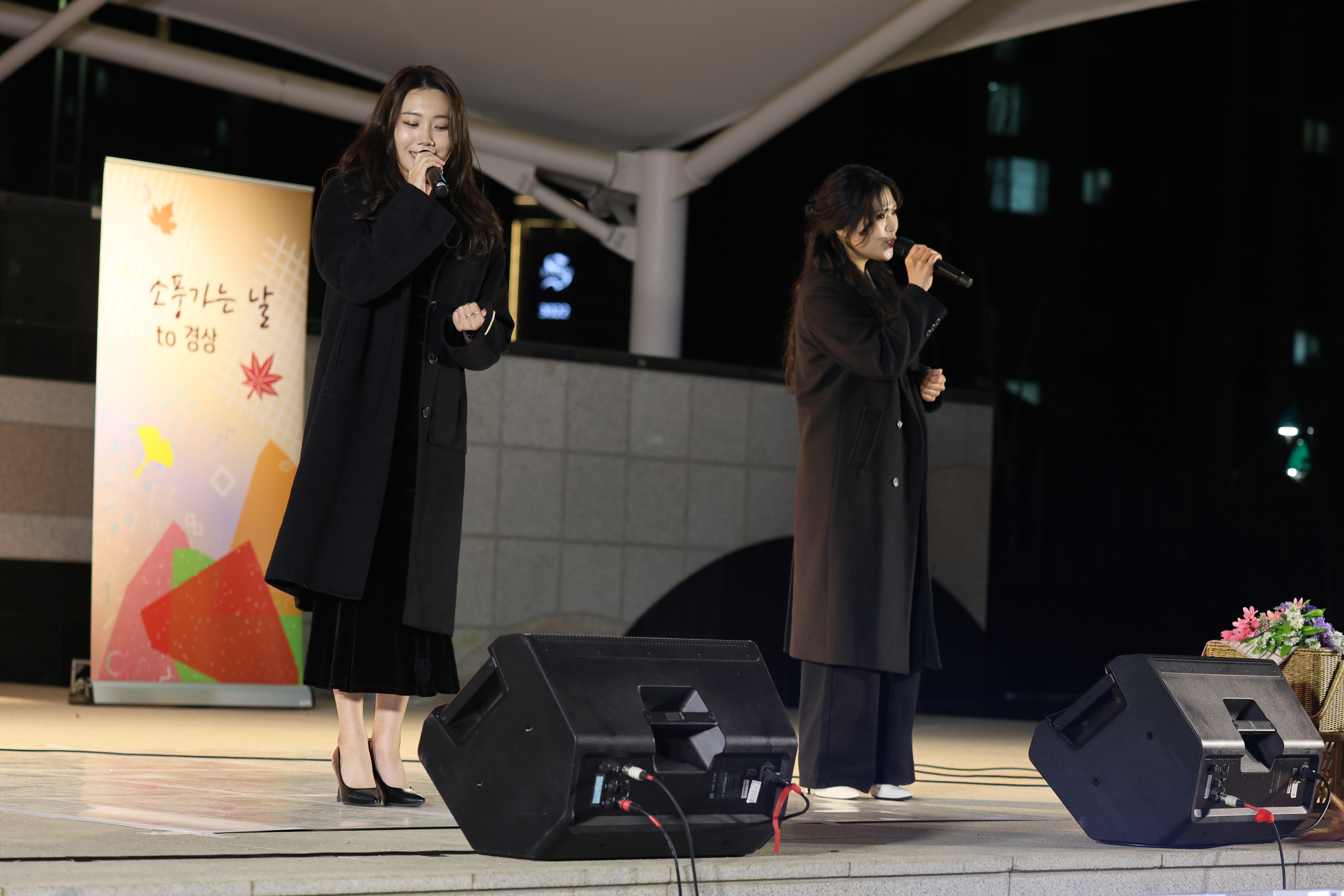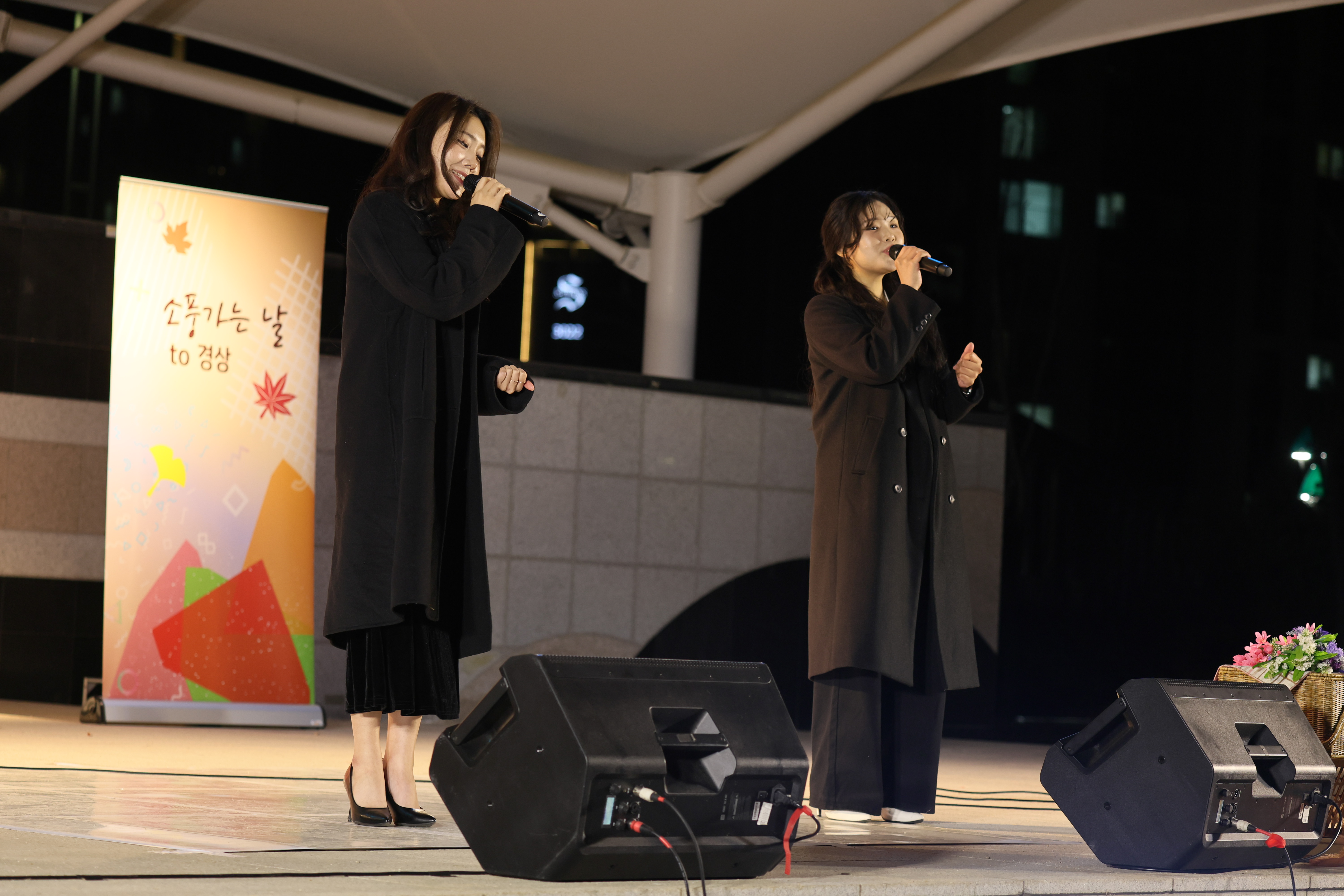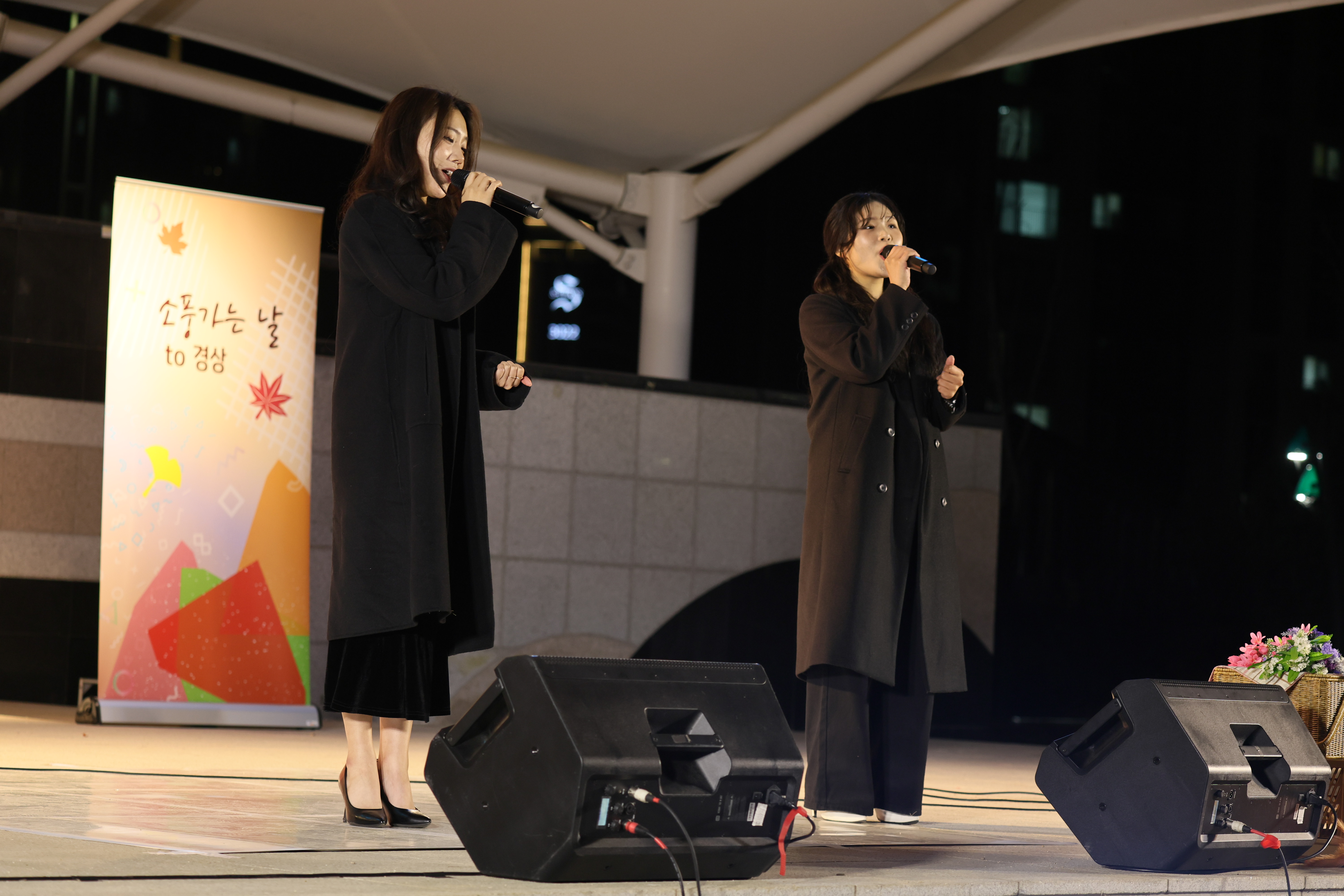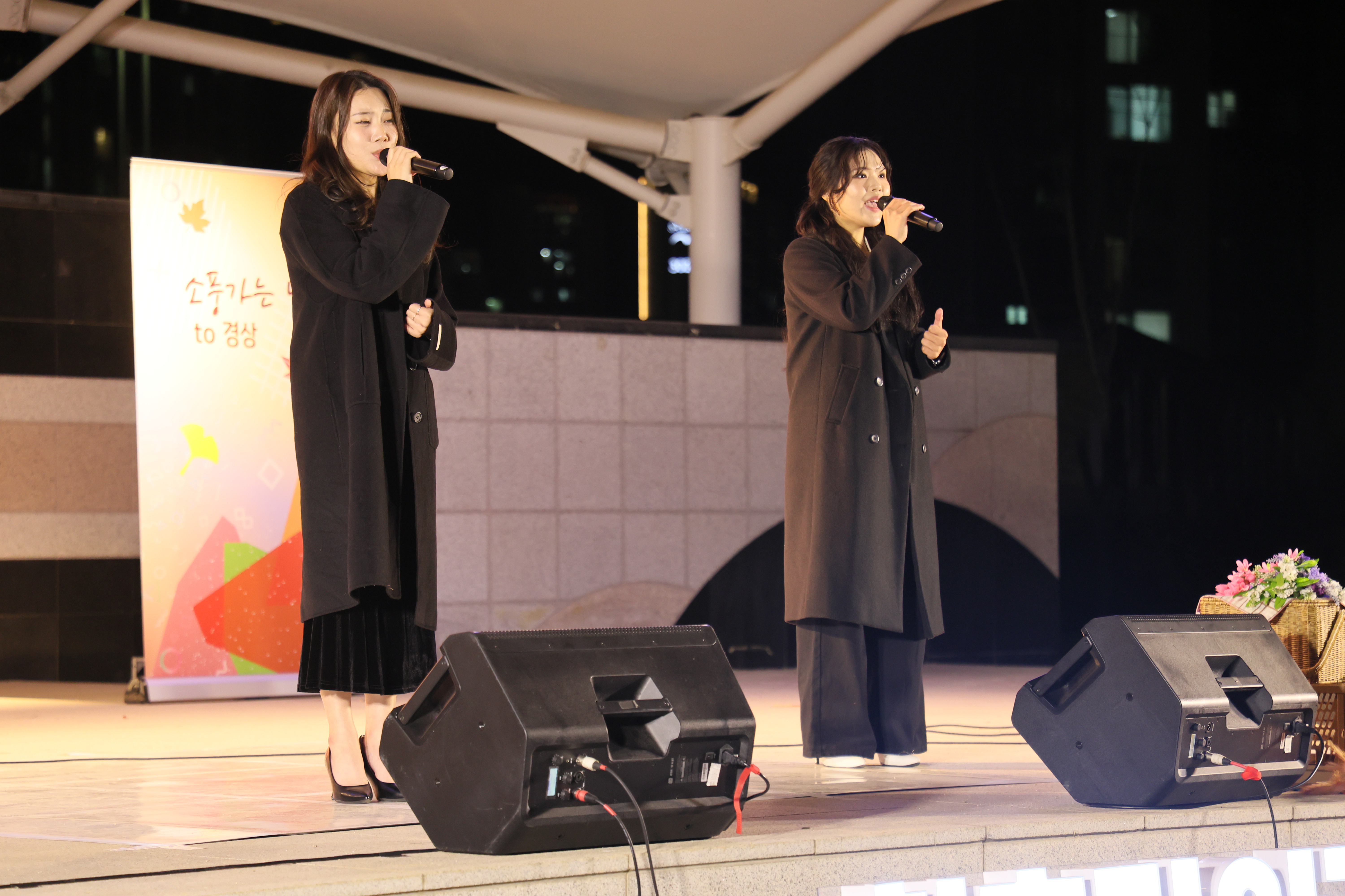 셋이서 서서 노래 불렀습니다.
