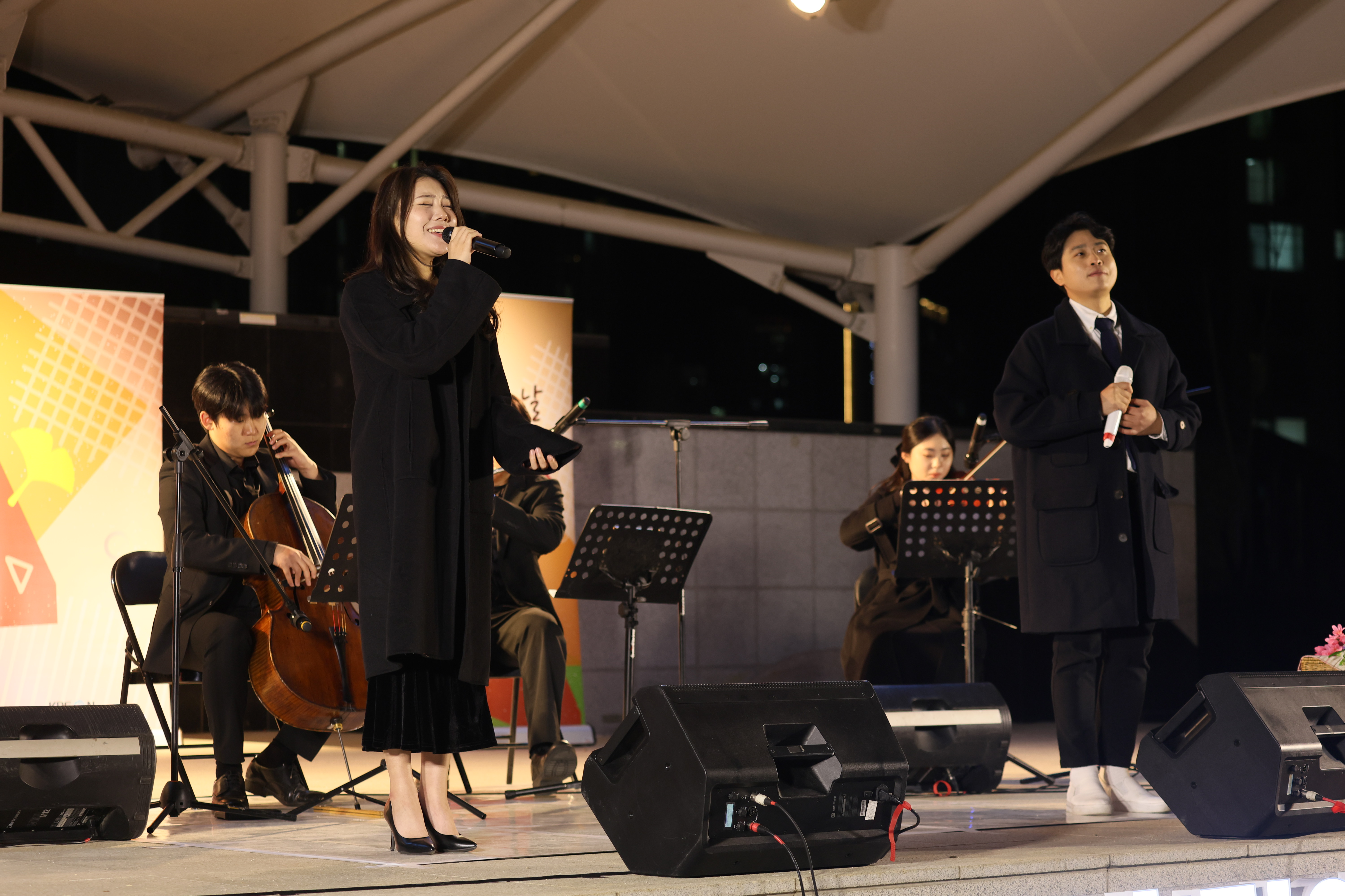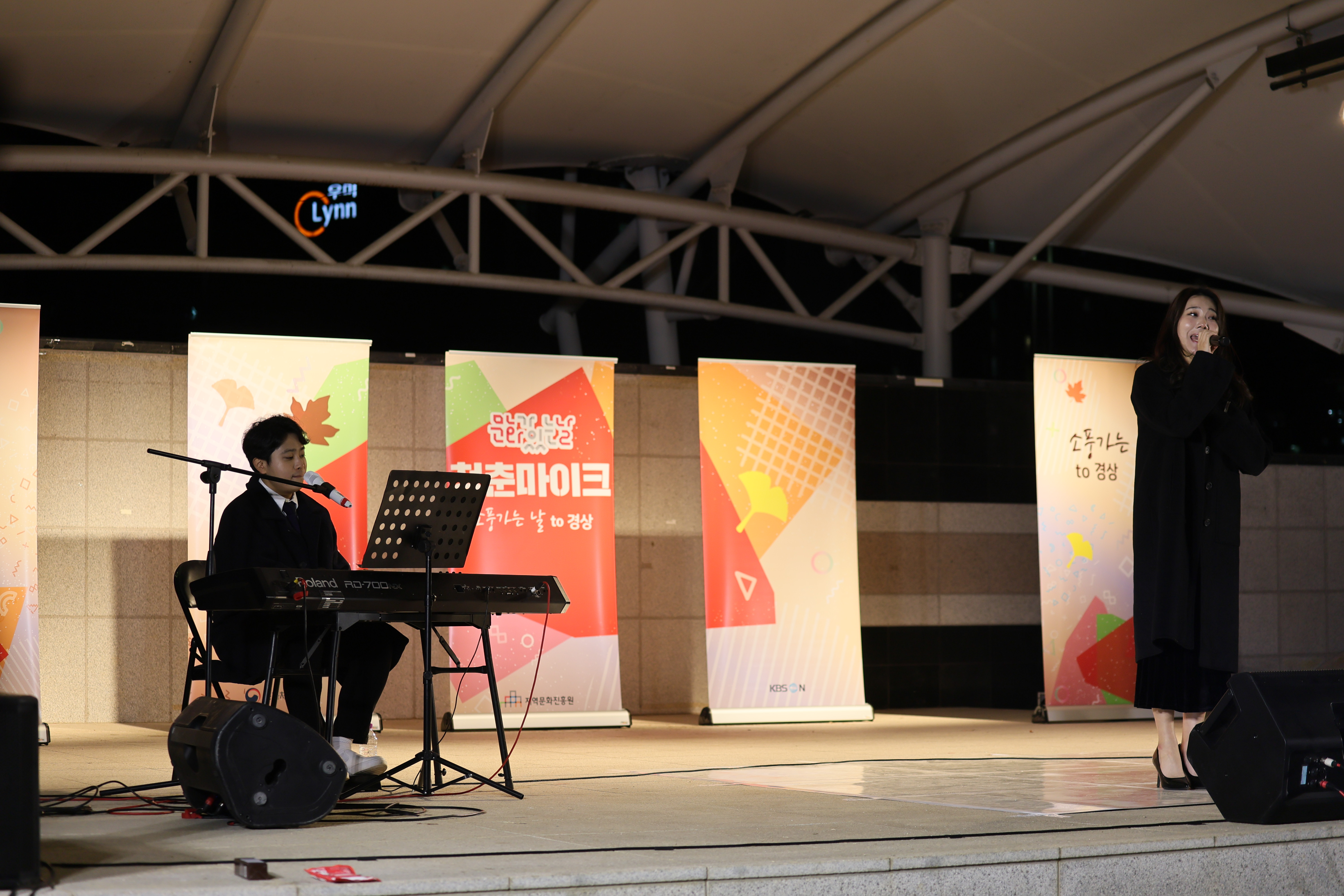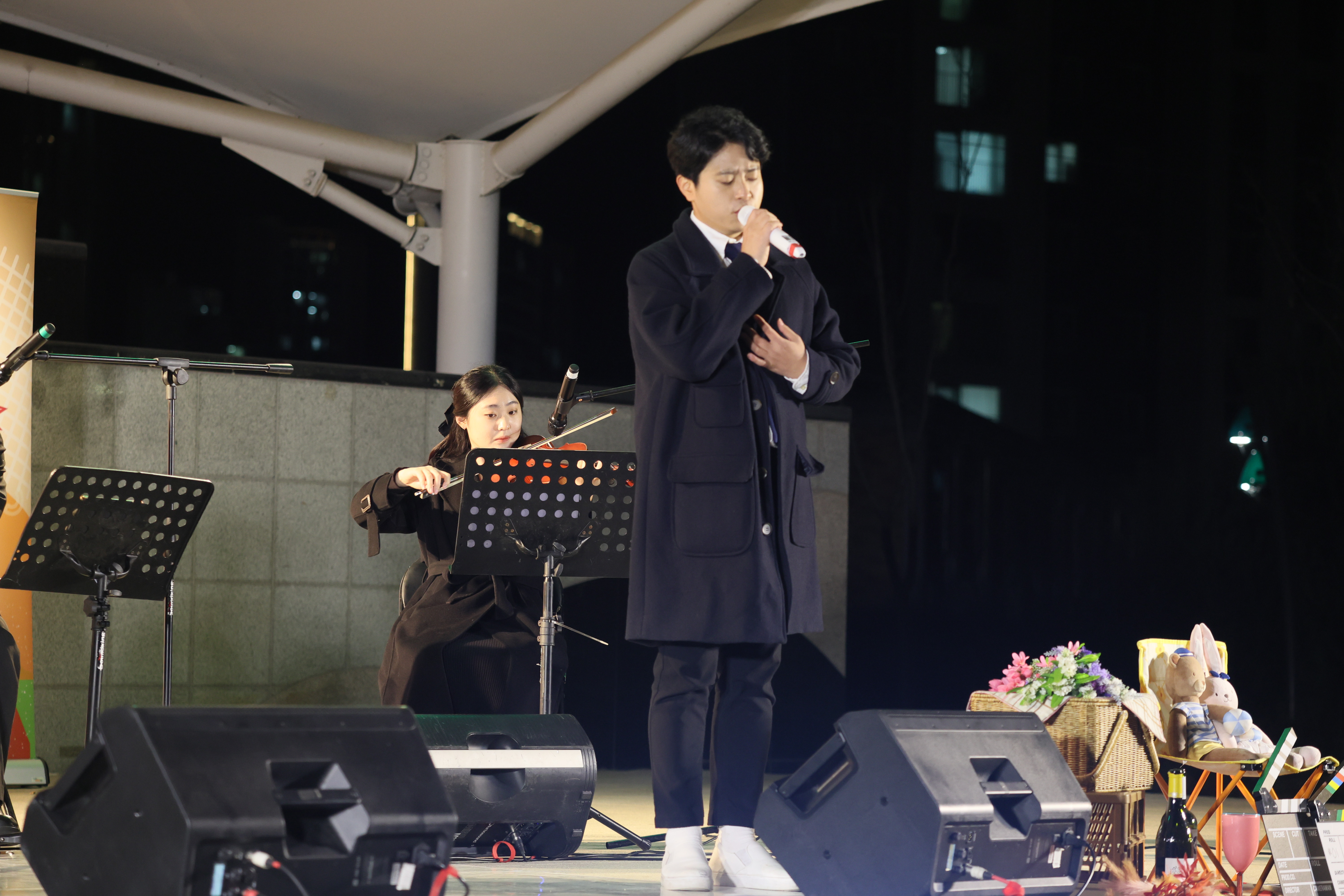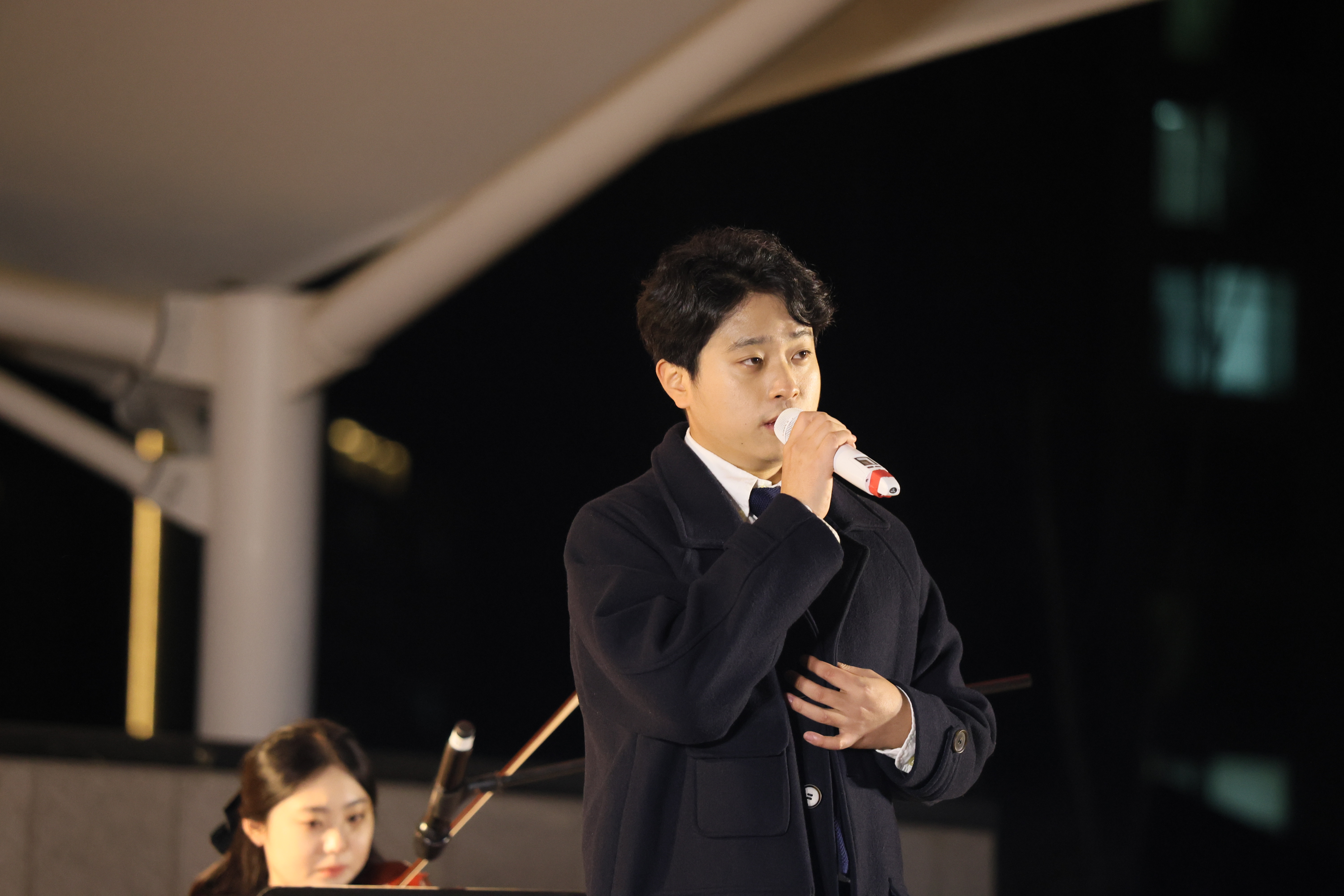 조명현 배우가 피아노 치고 노래를 둘이서 부르셨습니다.