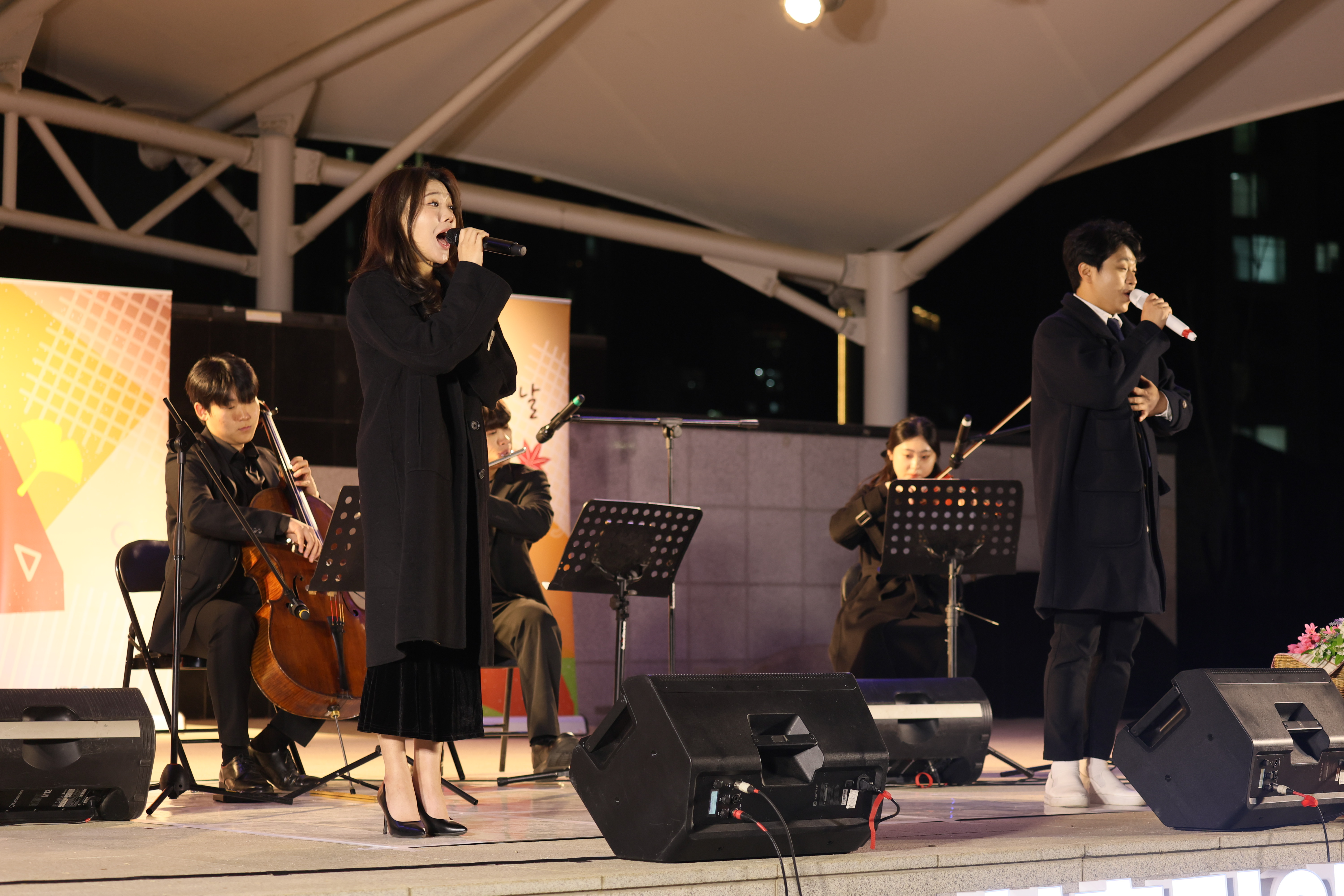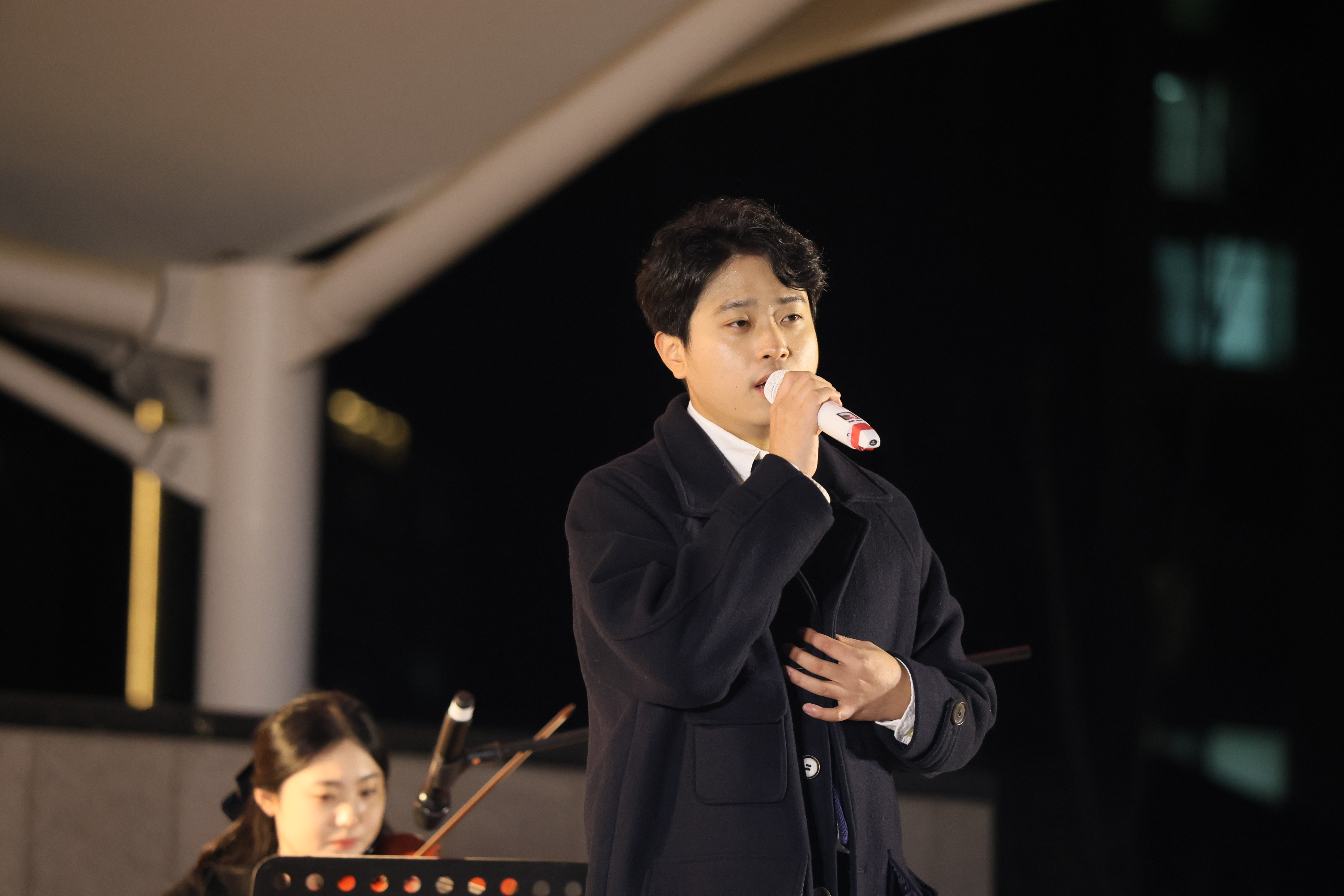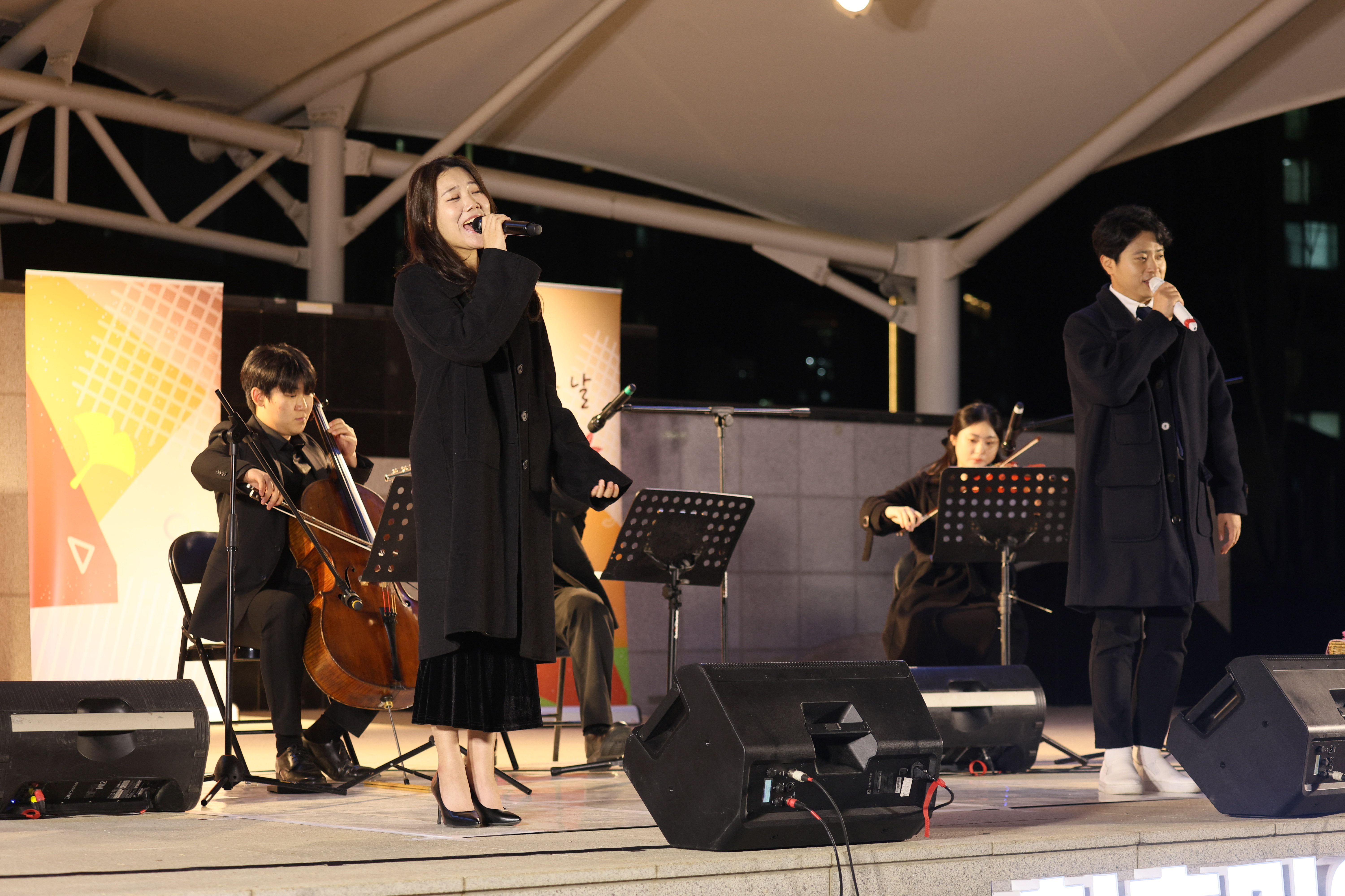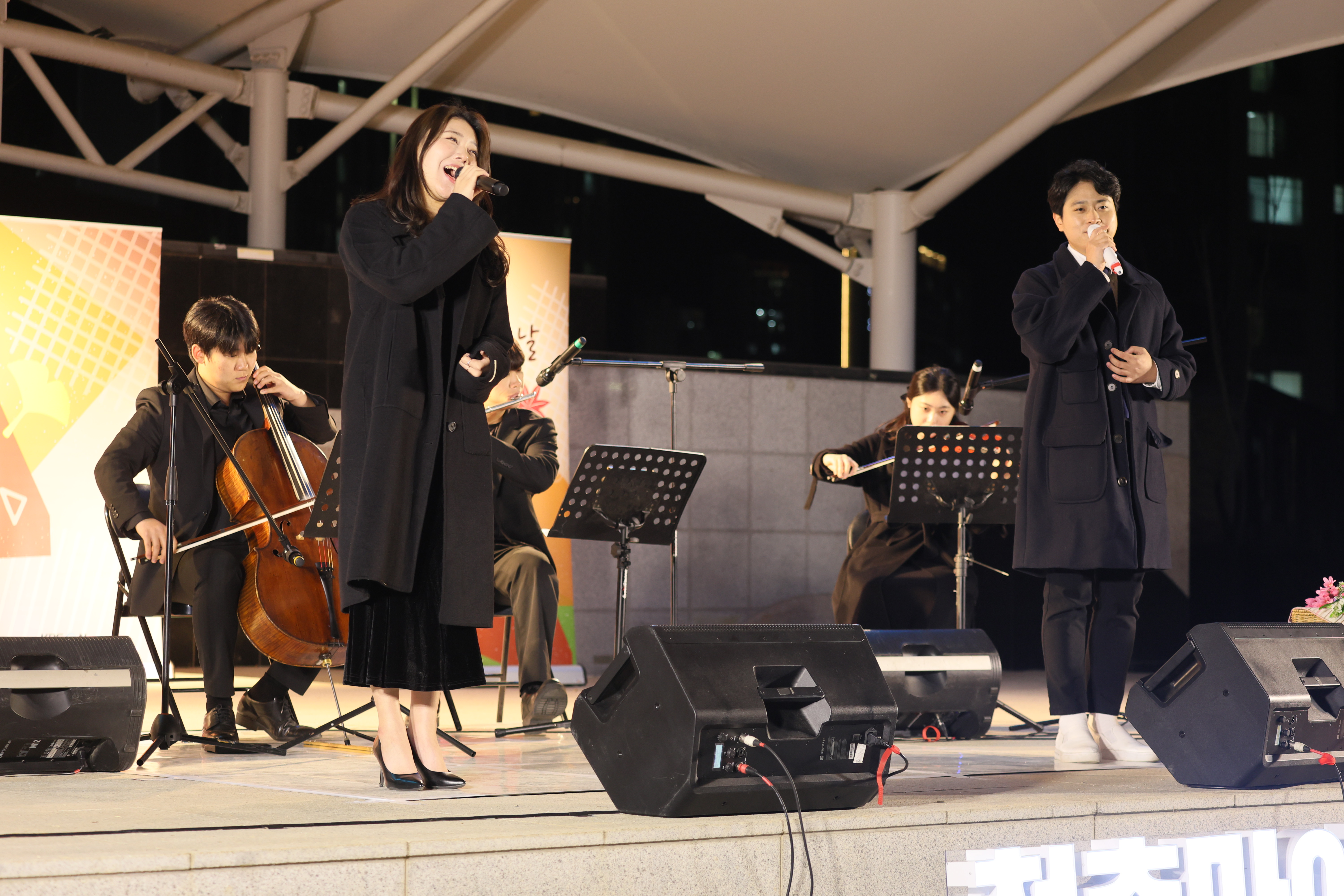 조명현 배우가 피아노 치고 노래를 둘이서 부르셨습니다.