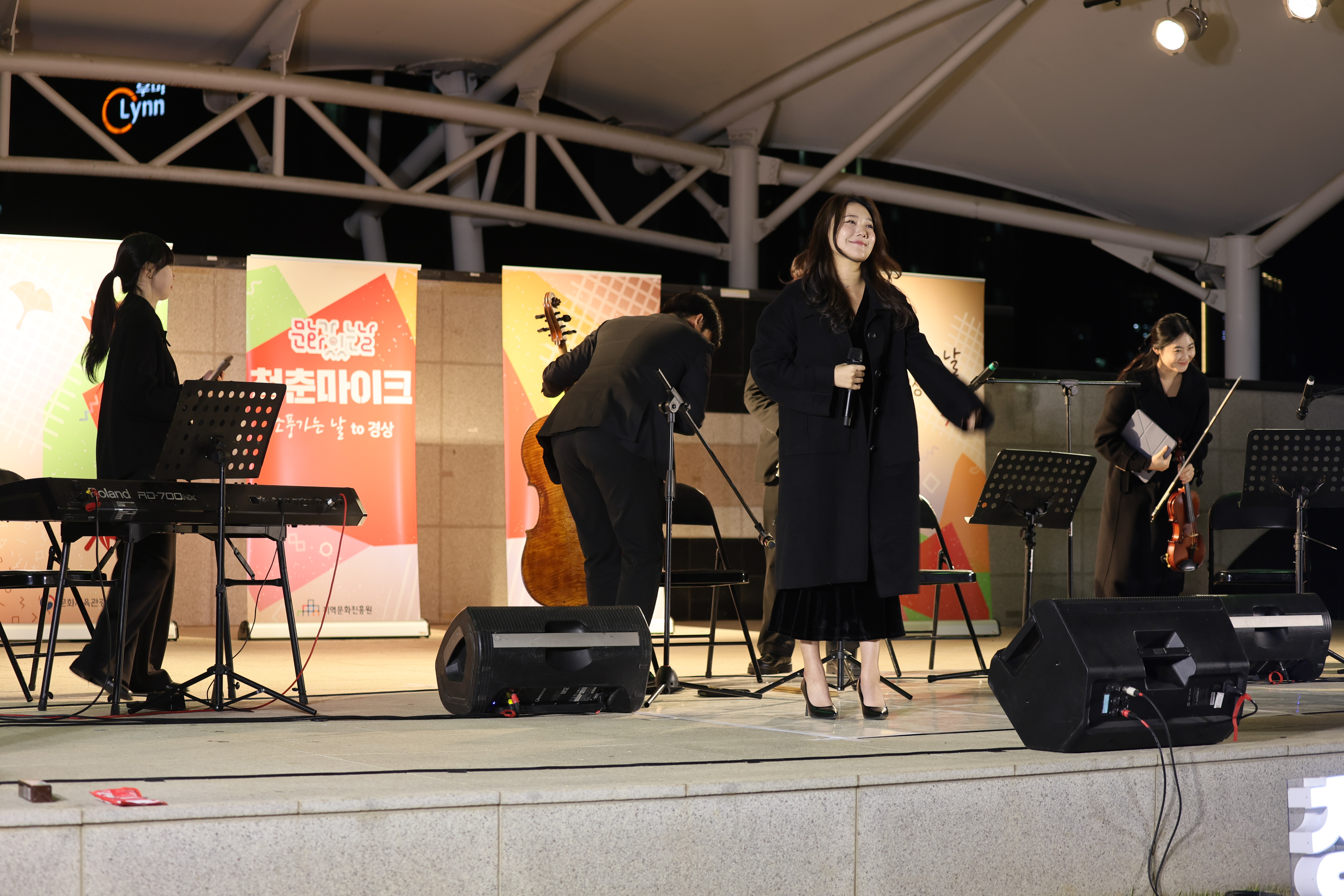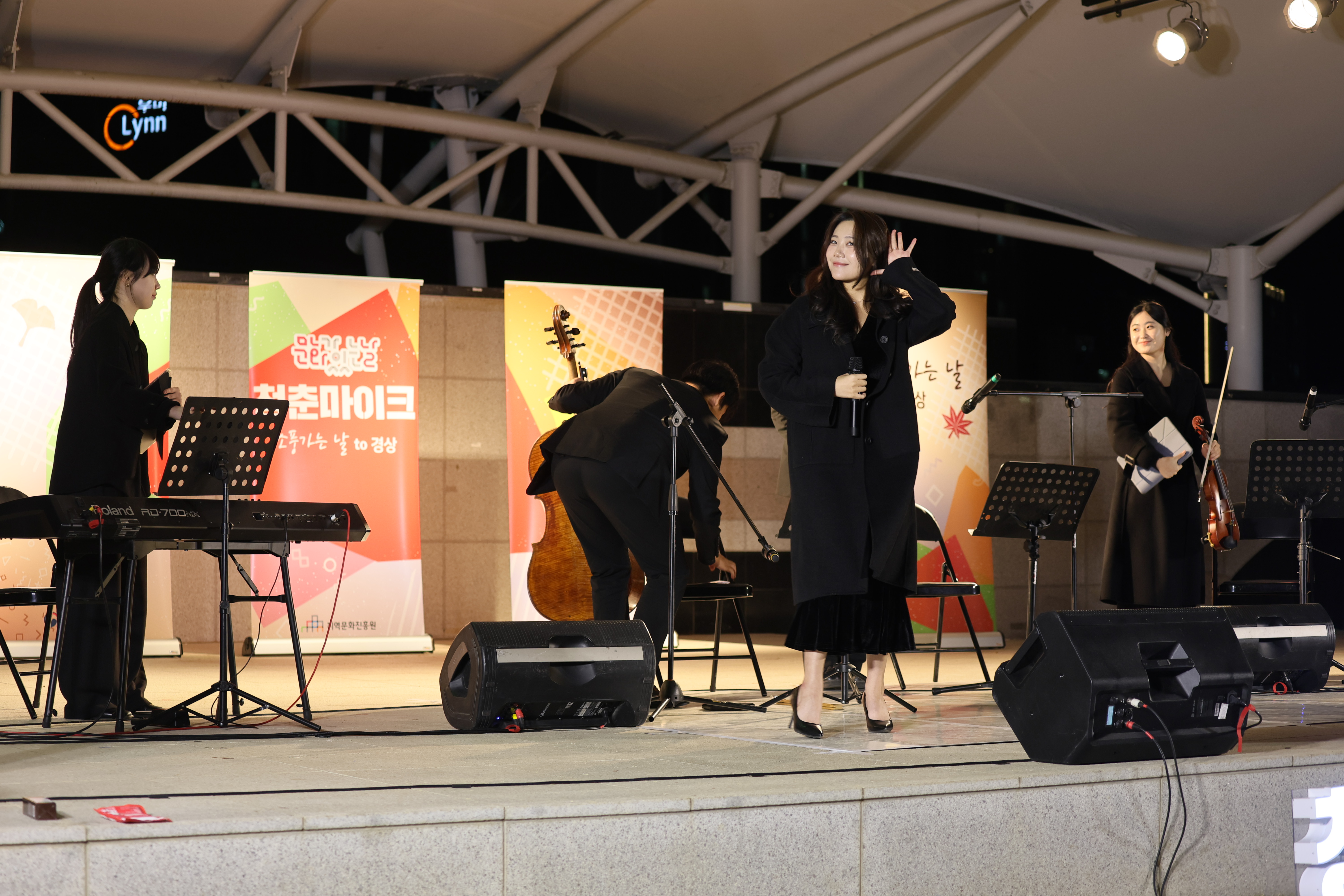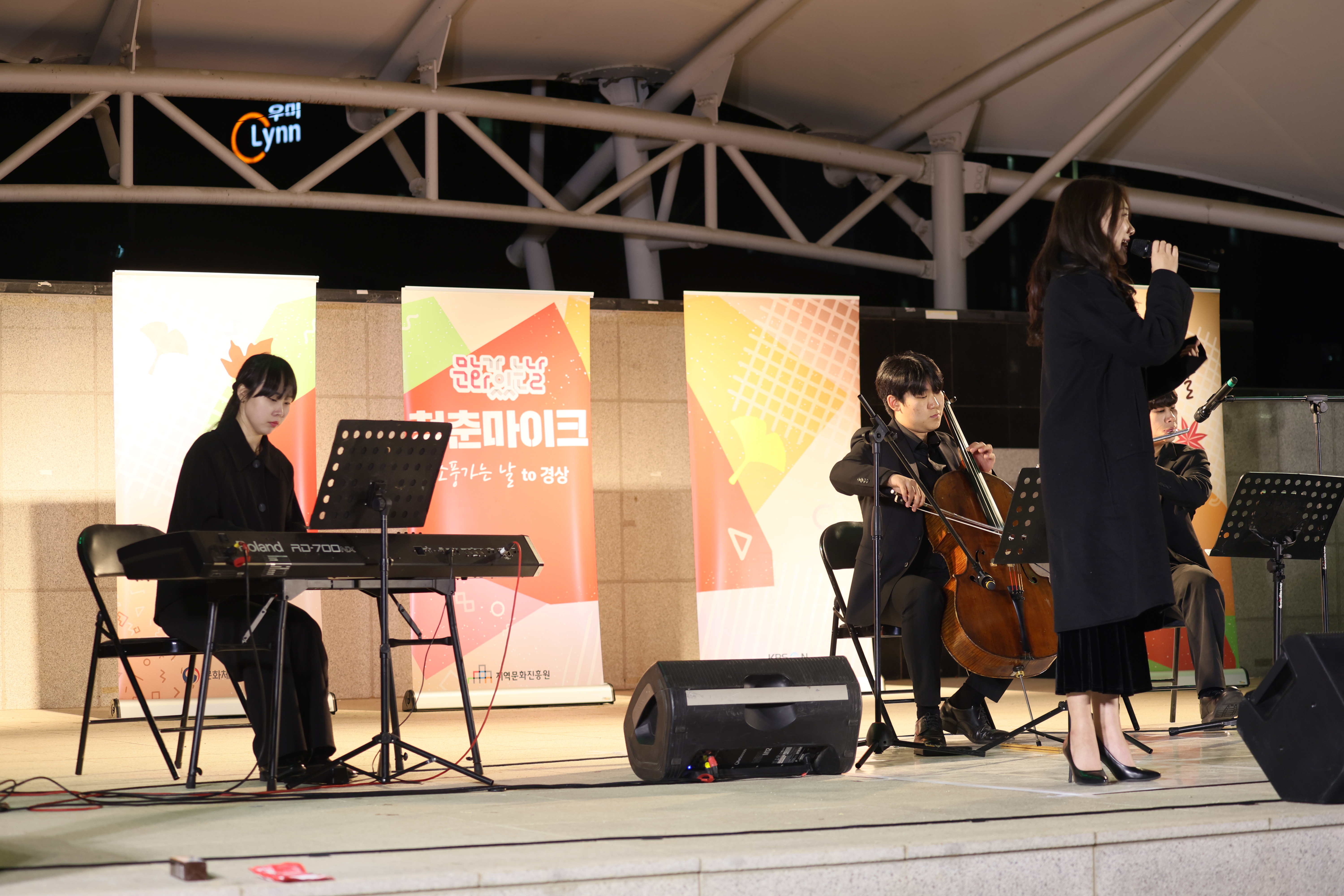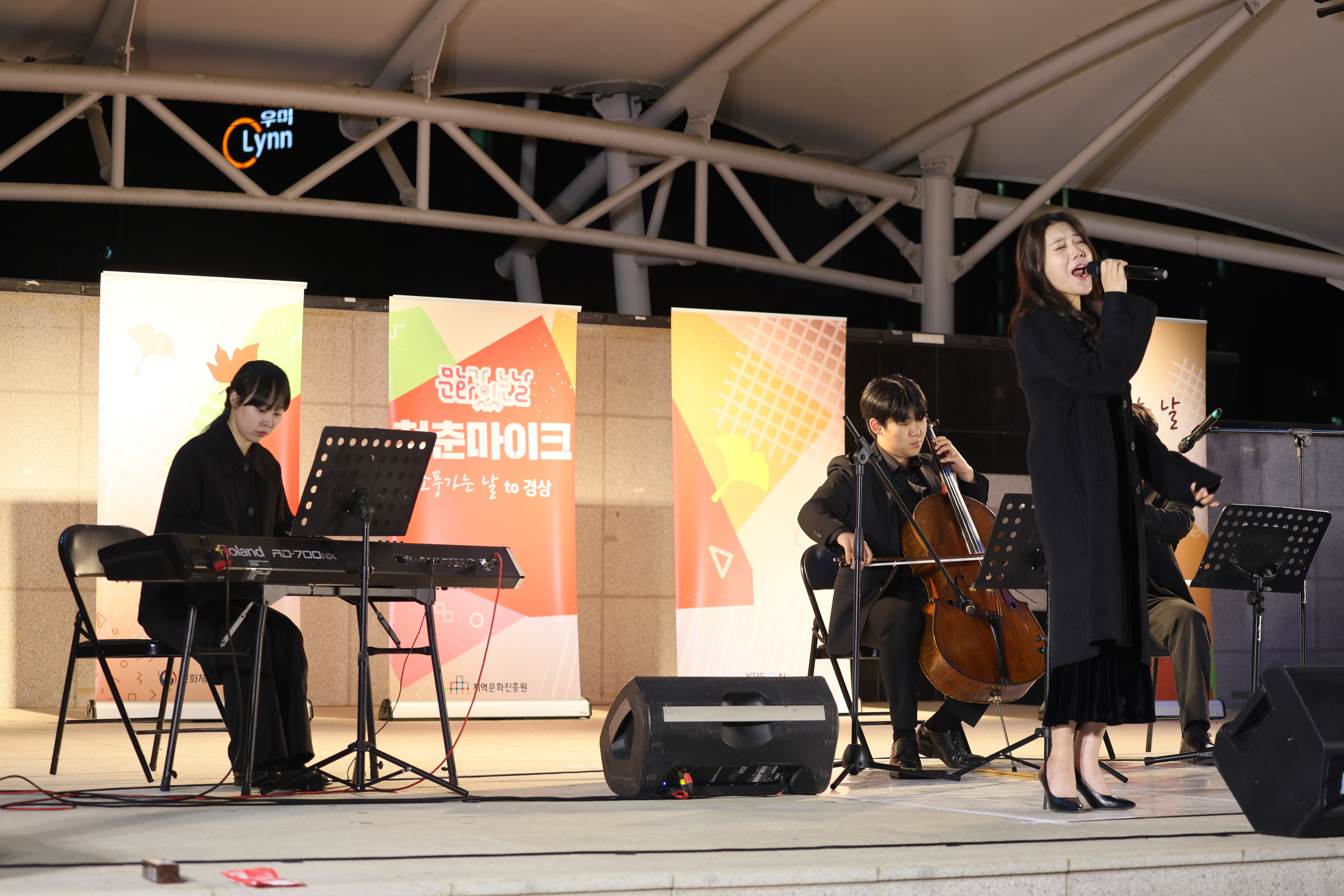 조명현 배우가 피아노 치고 노래를 둘이서 부르셨습니다.