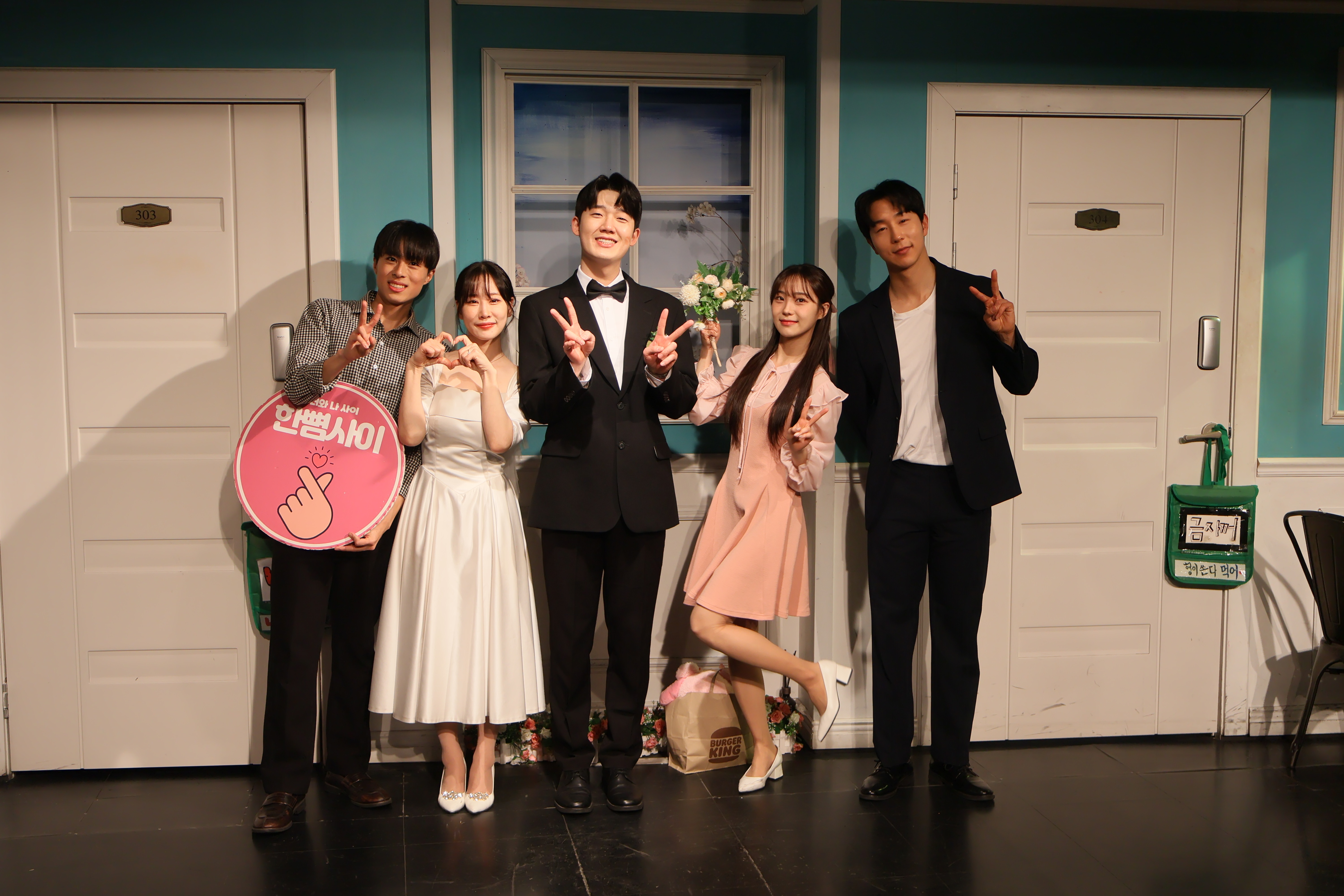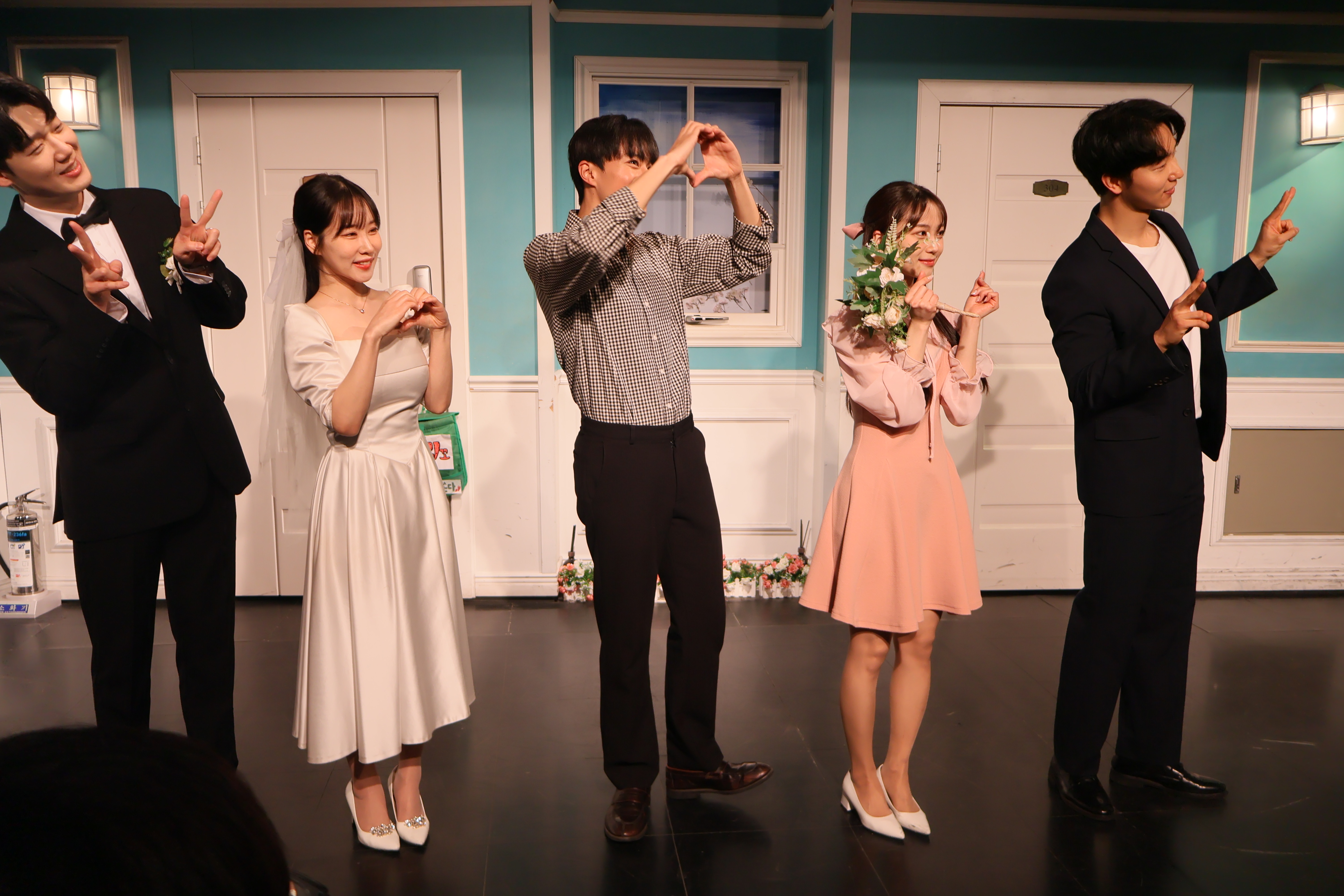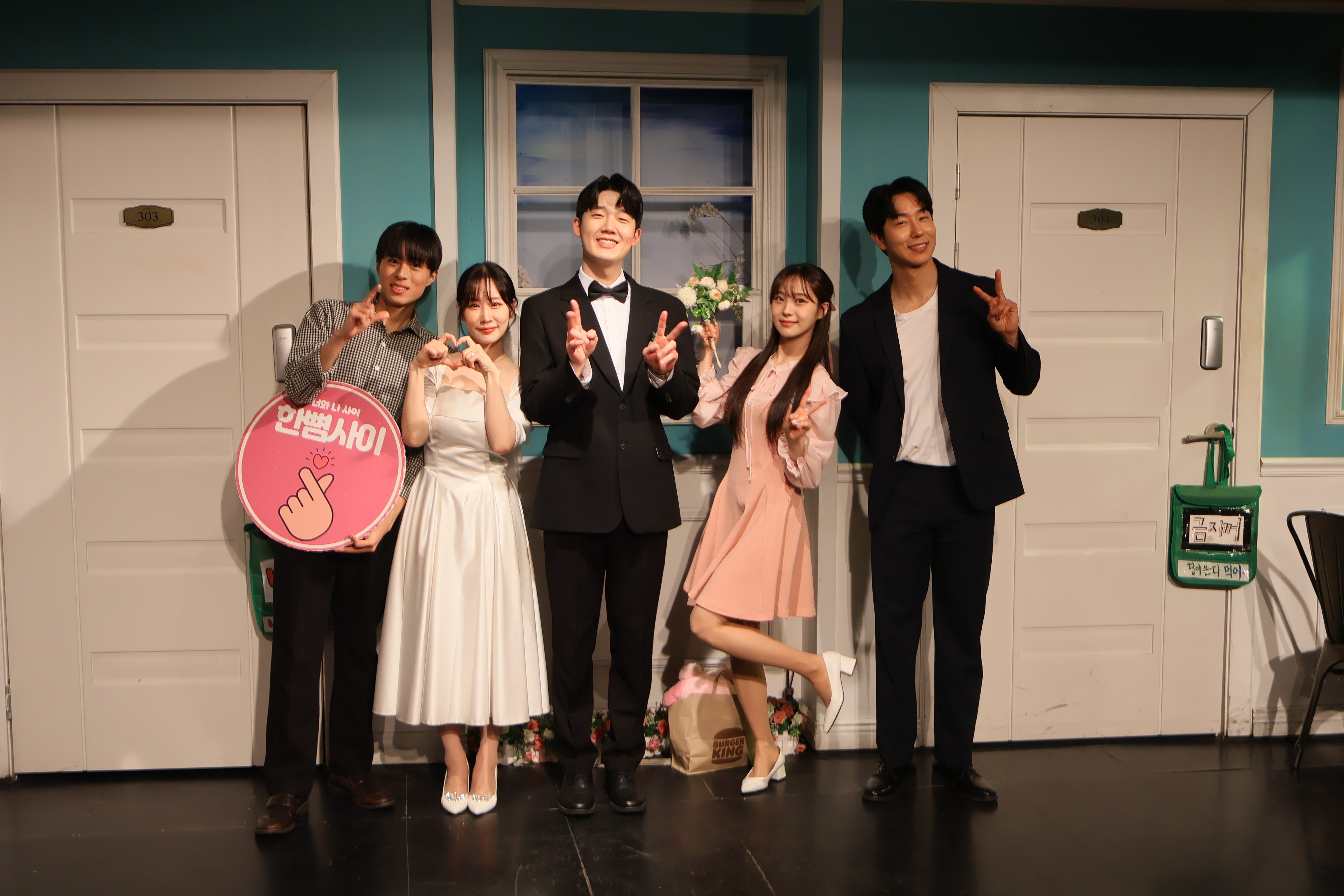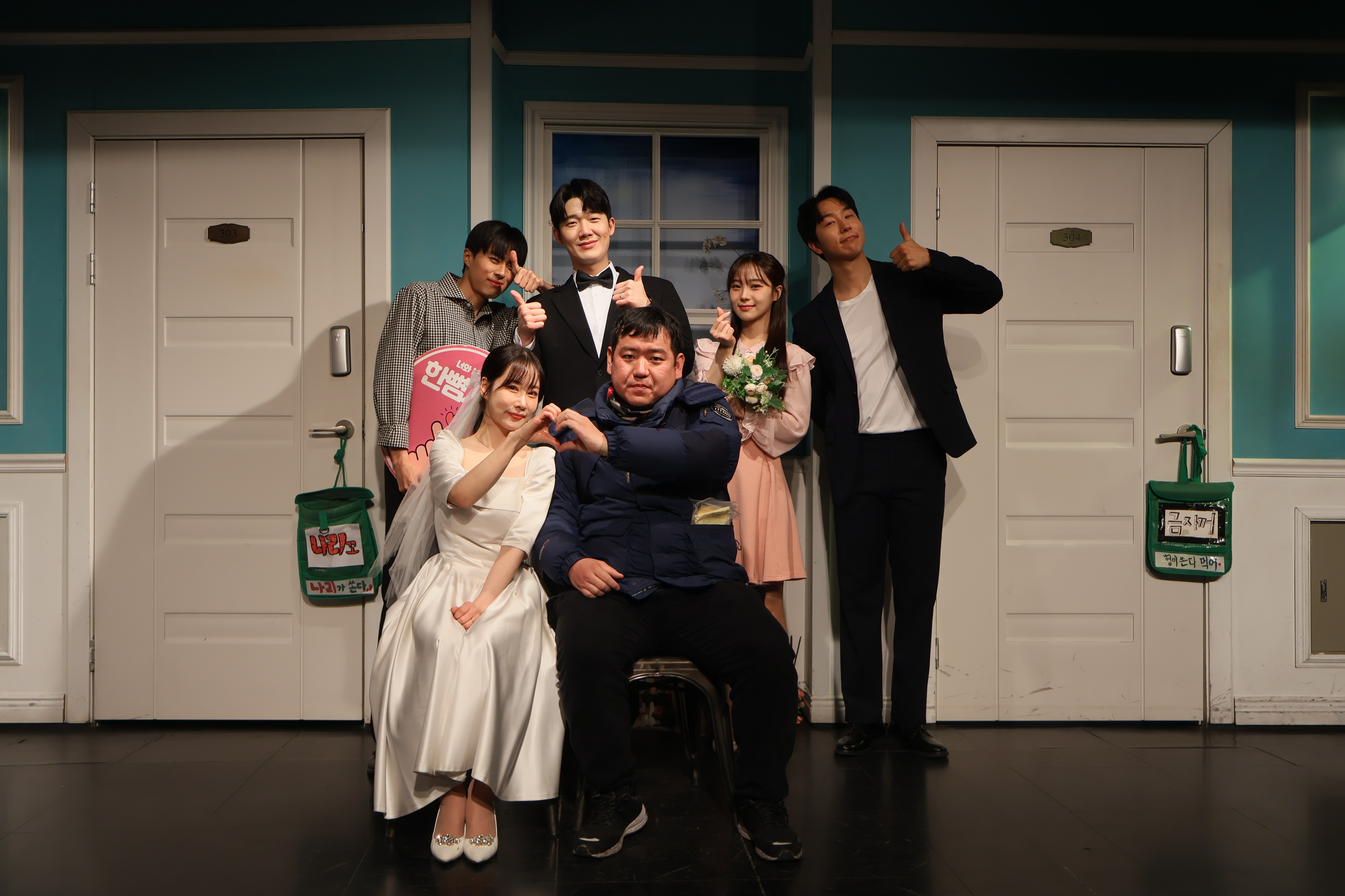배우들의 마무리 포즈 취하였습니다.