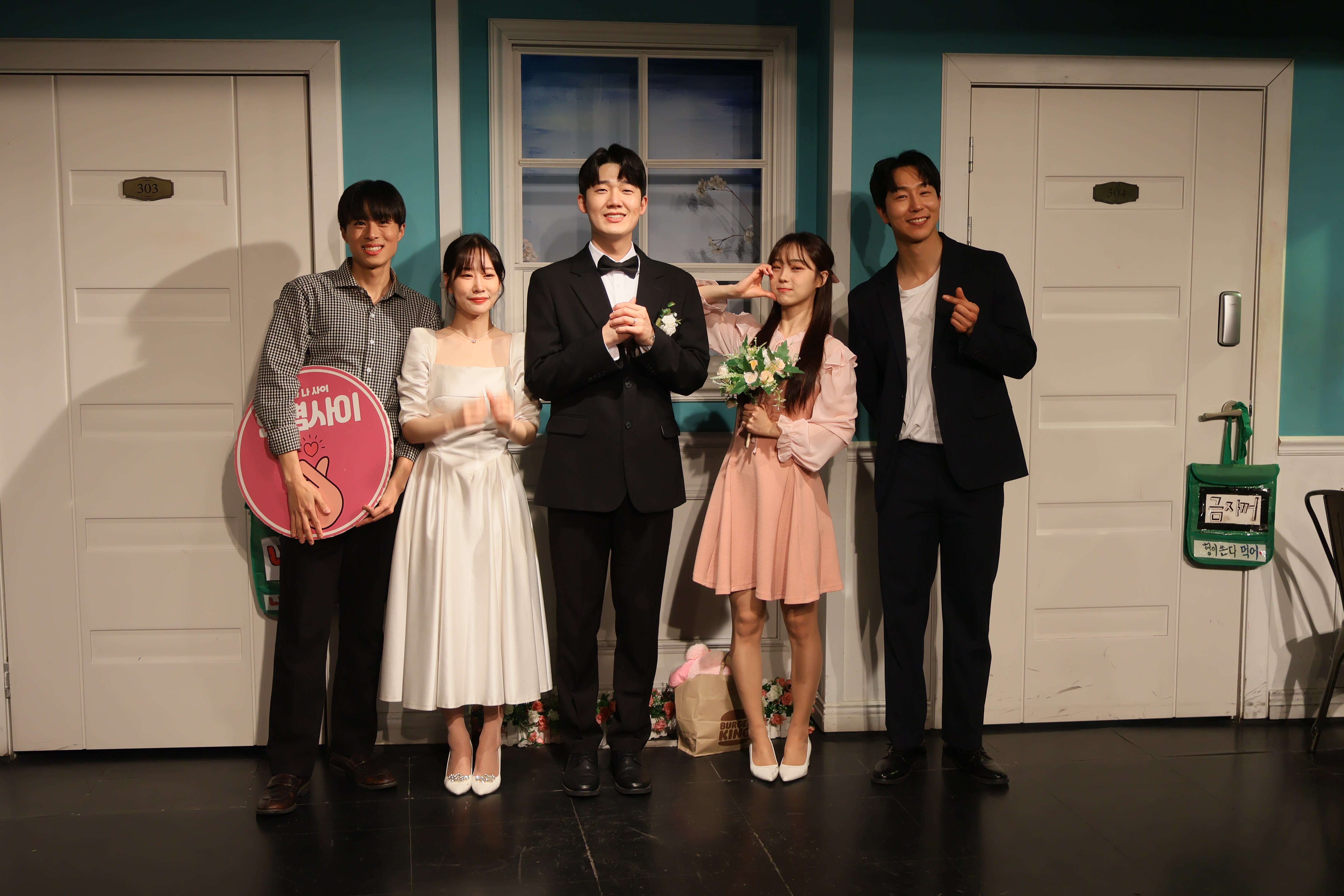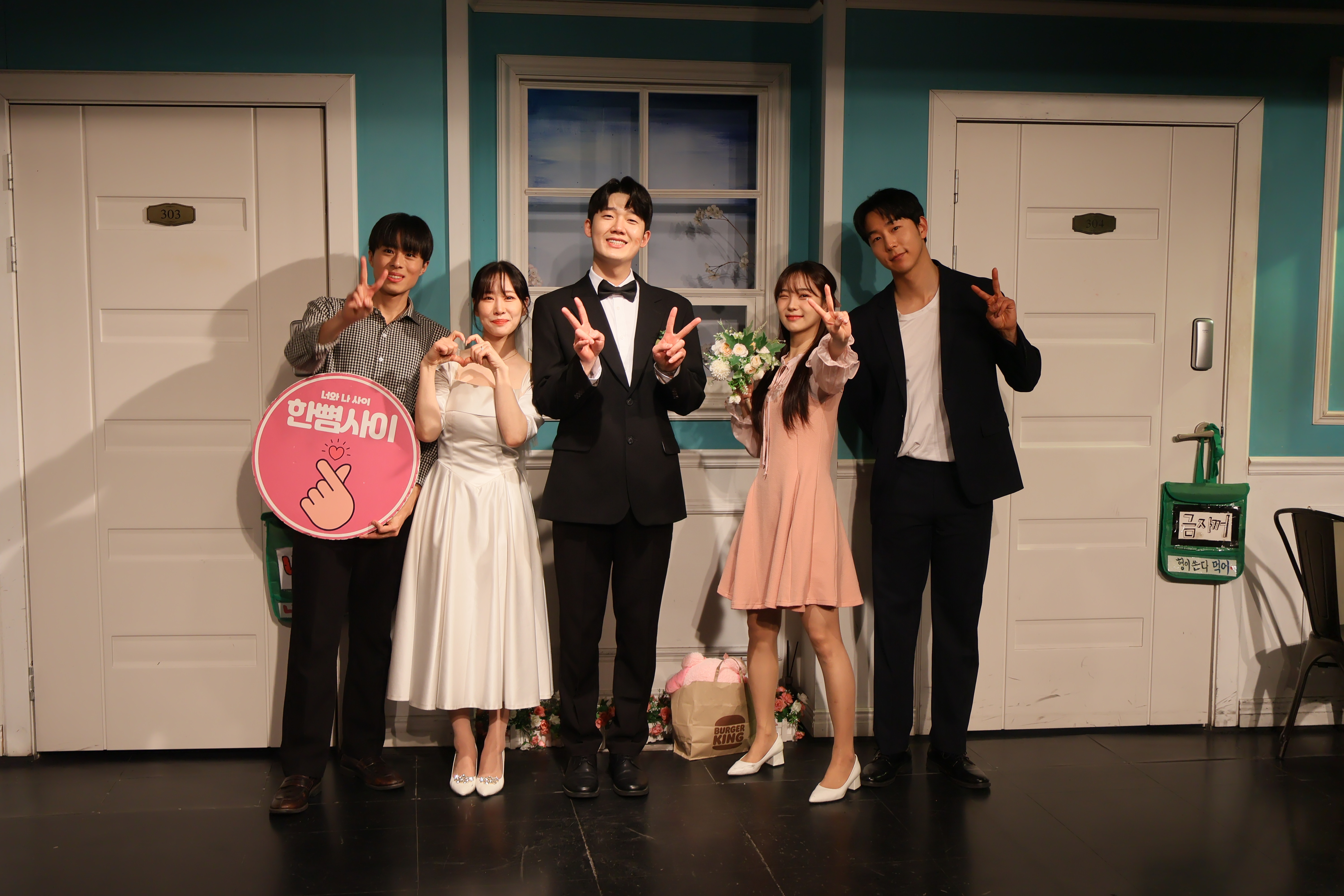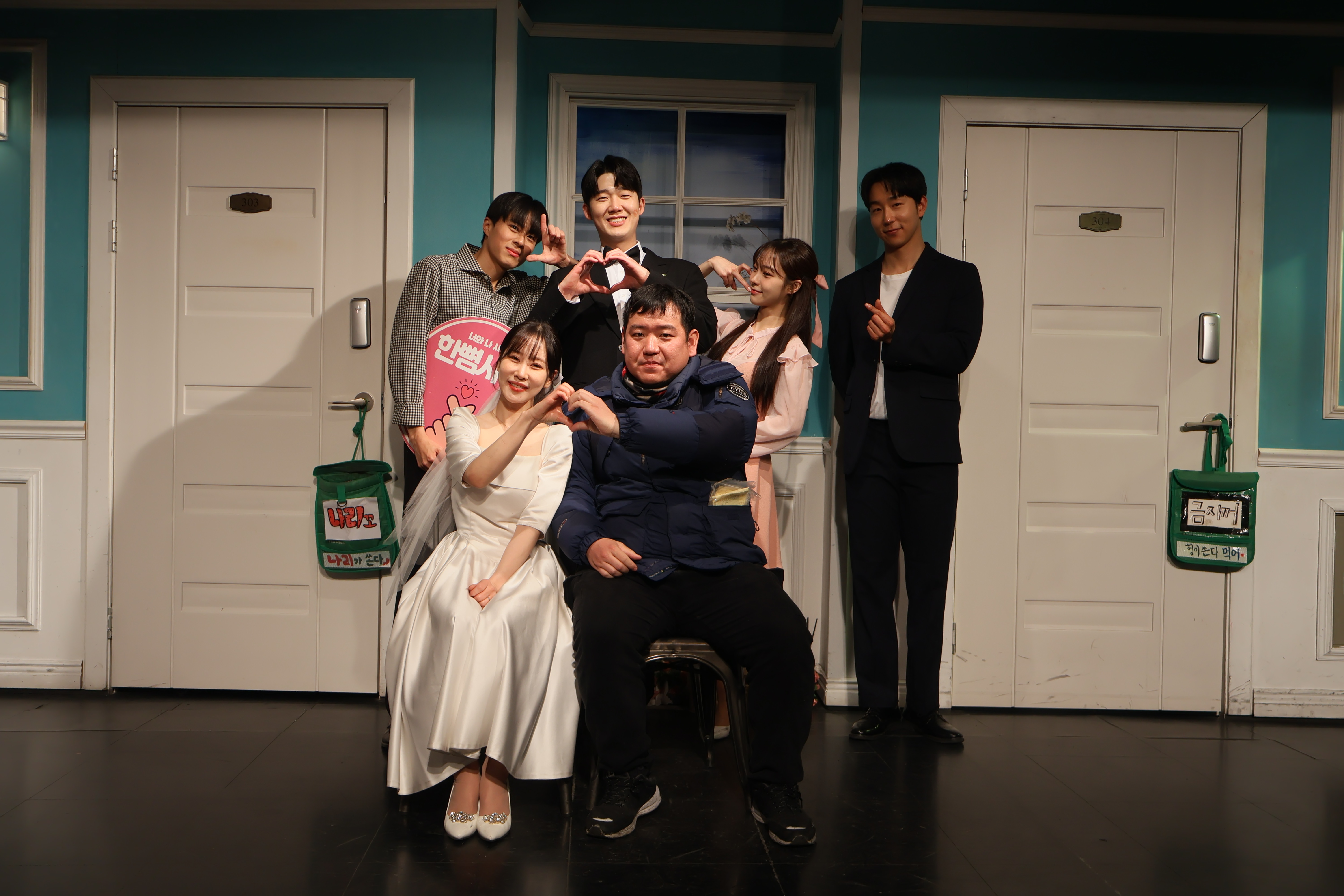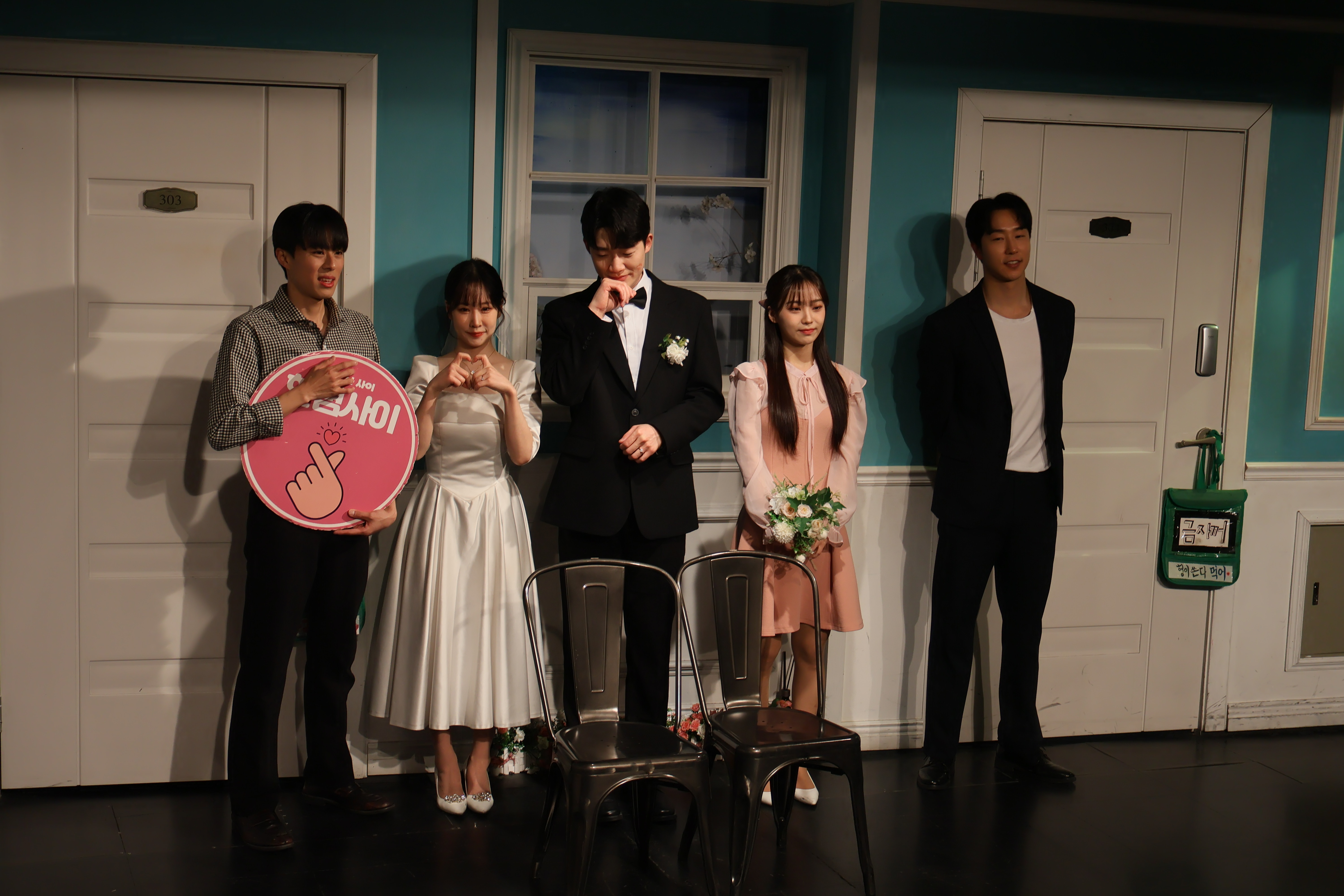 배우들의 마무리 포즈 취하였습니다.