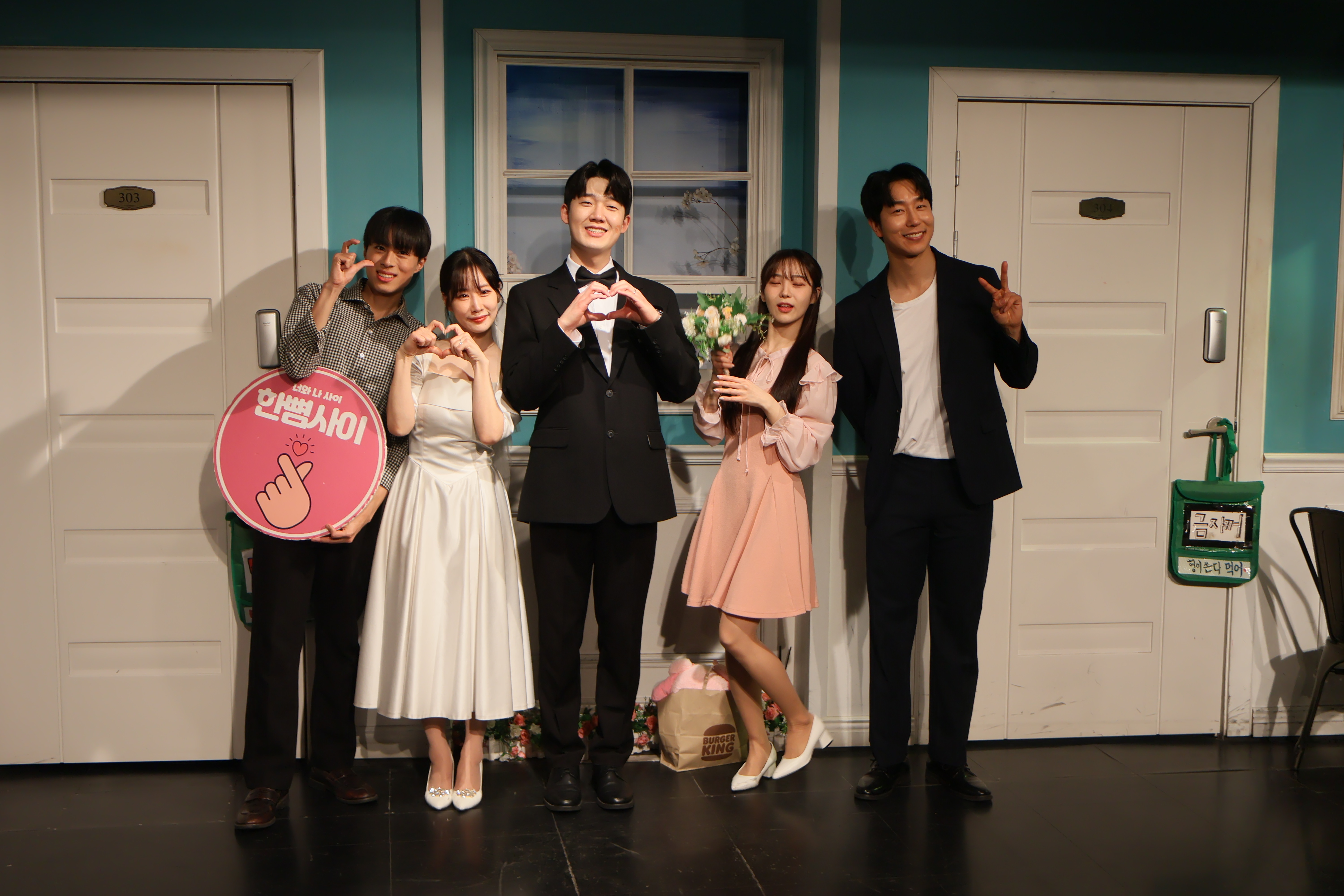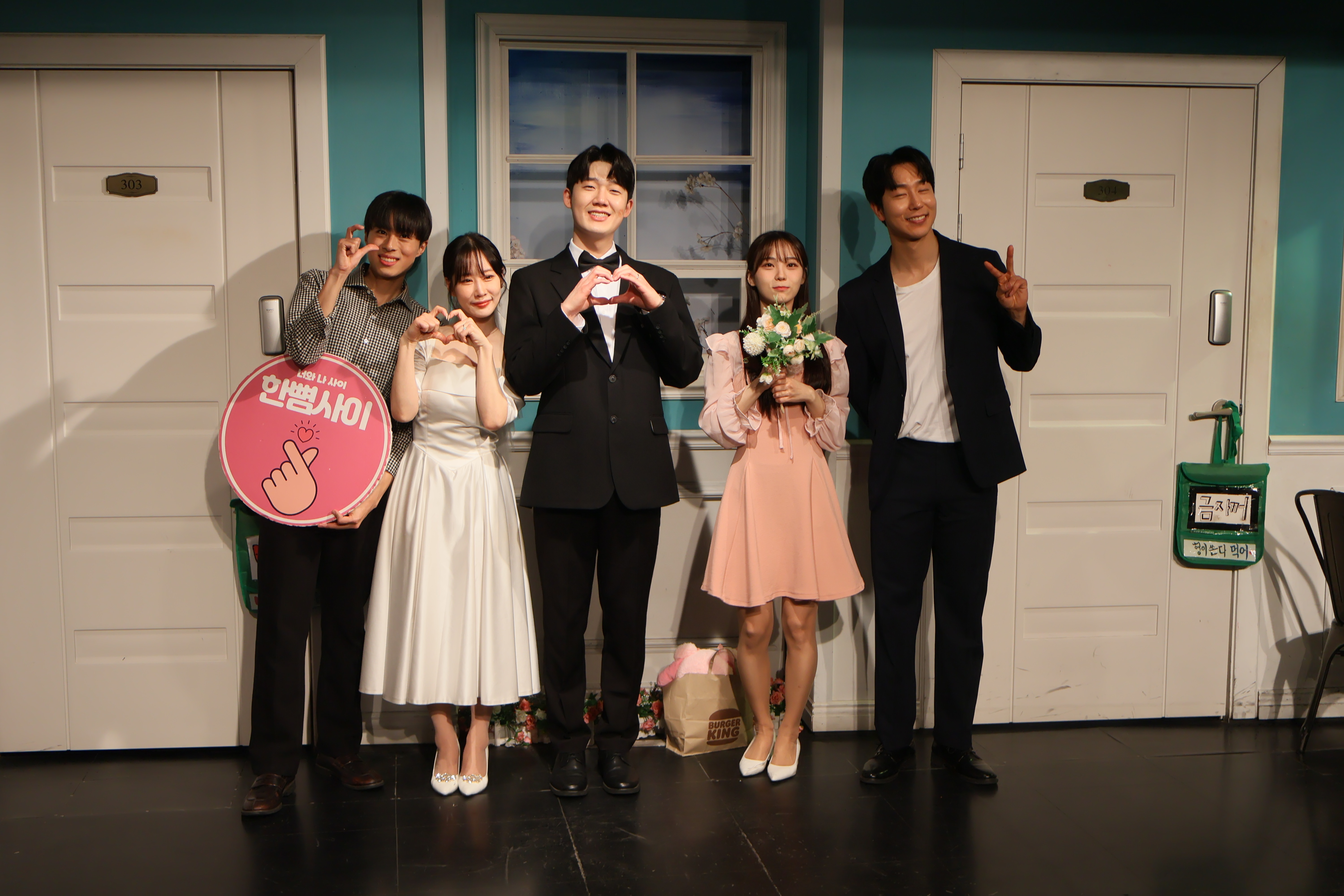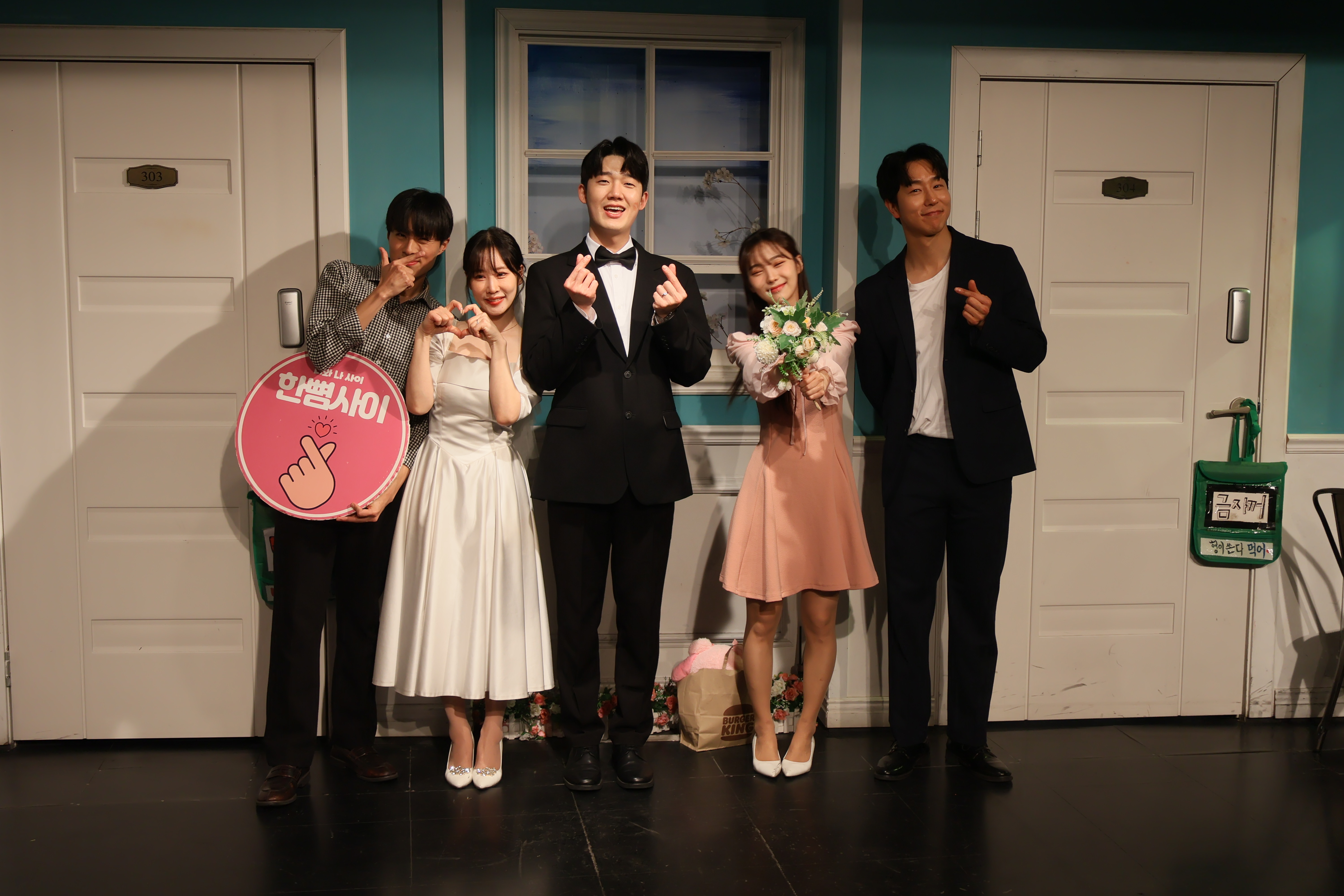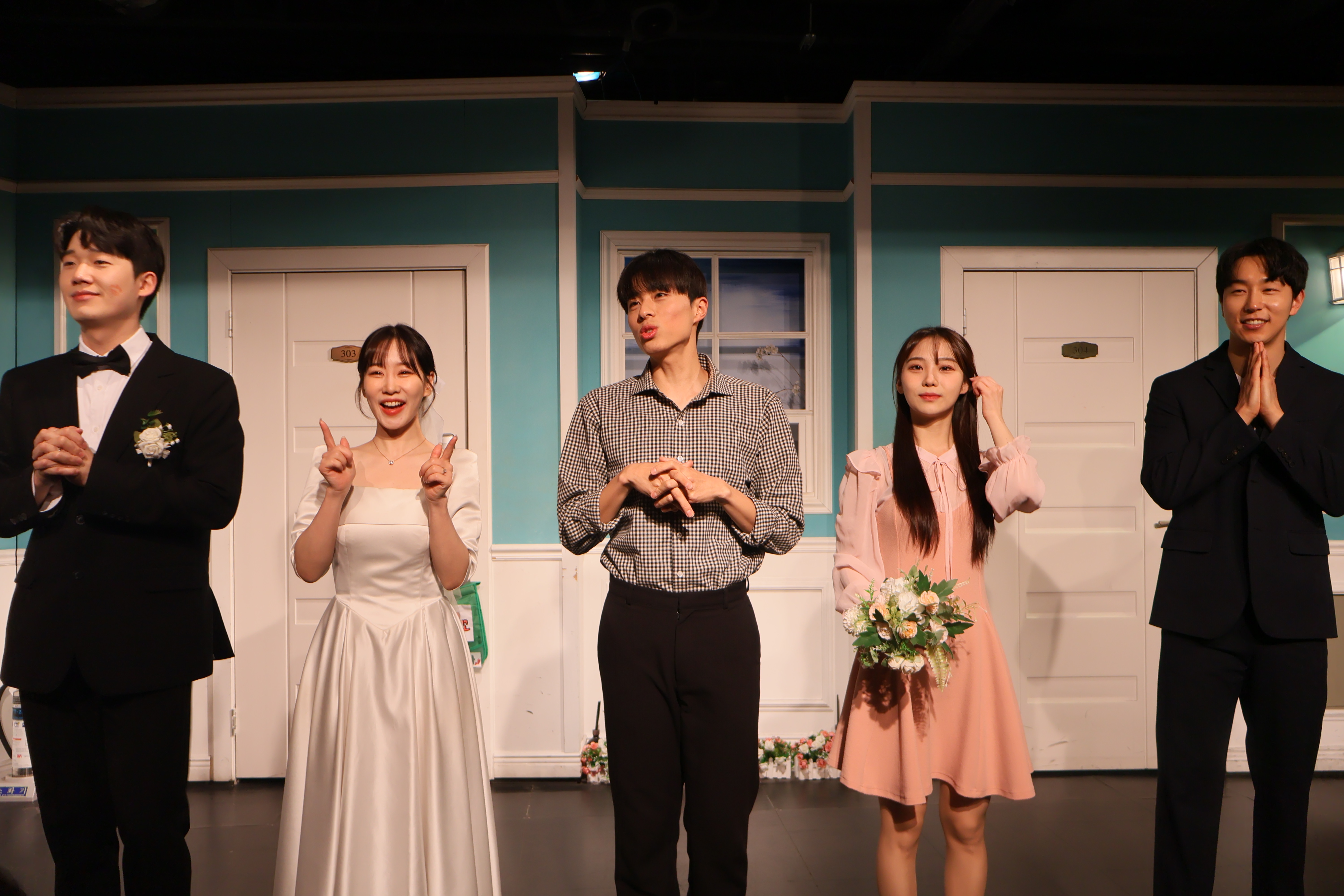 배우들의 마무리 포즈 취하였습니다.