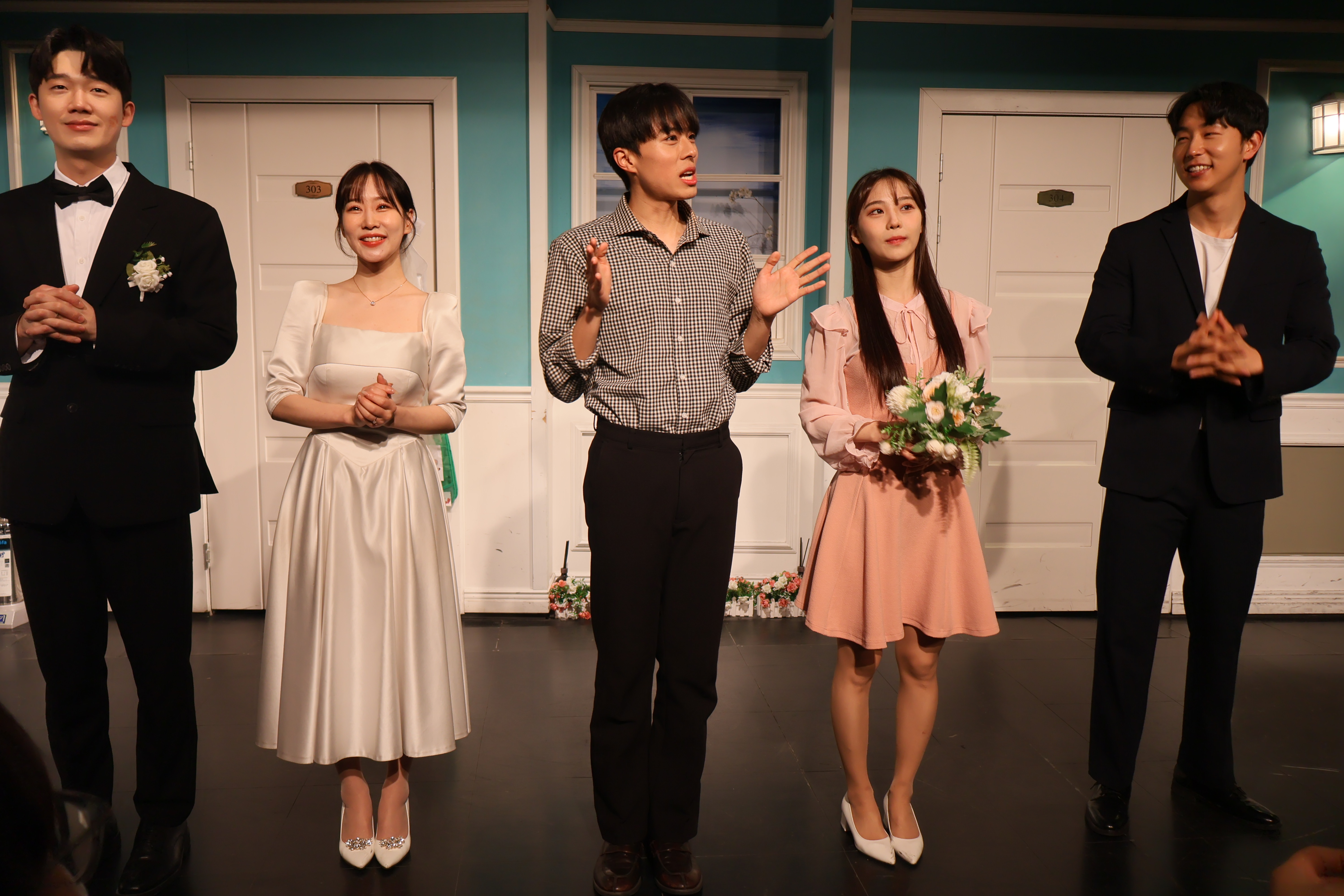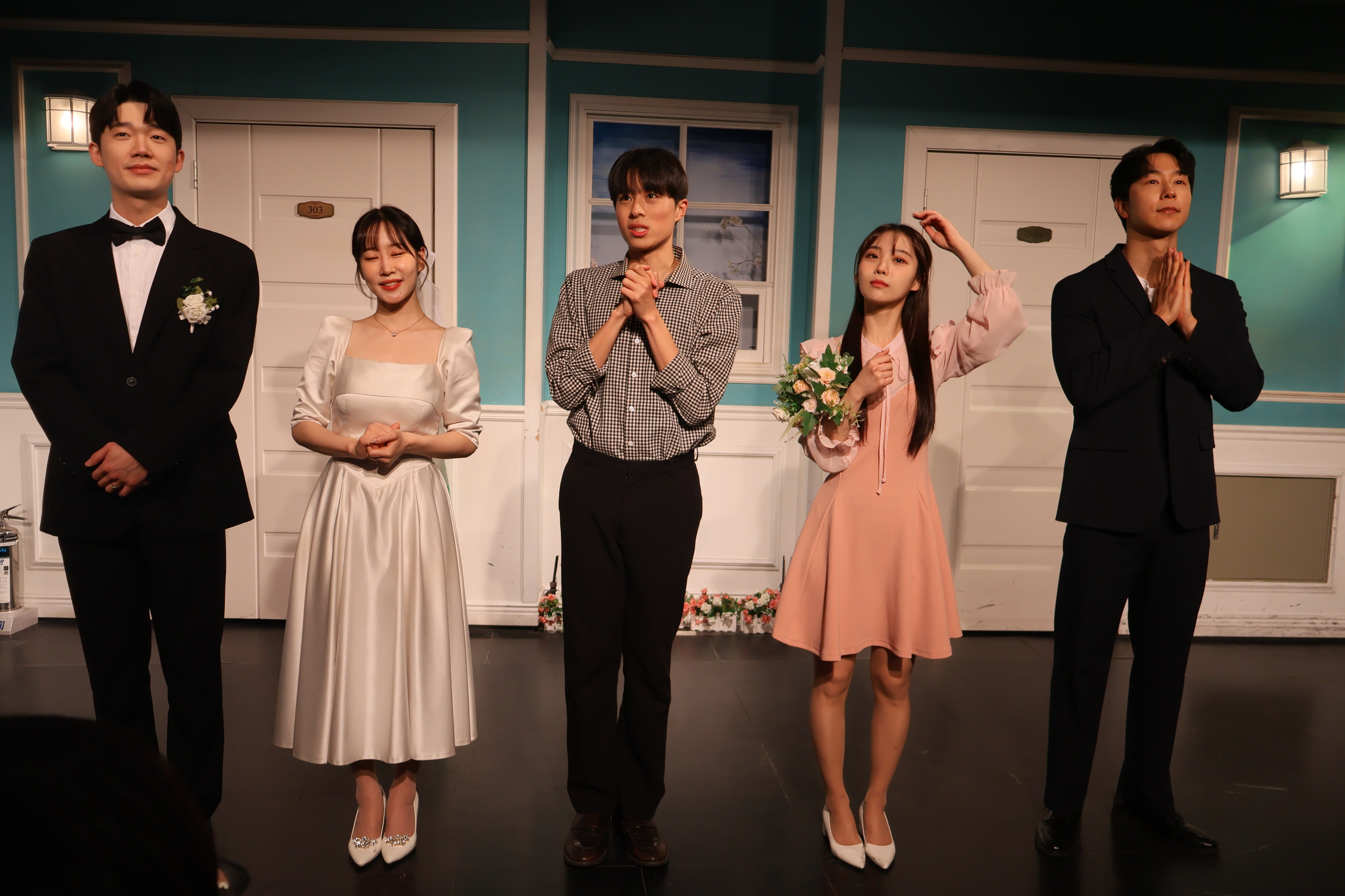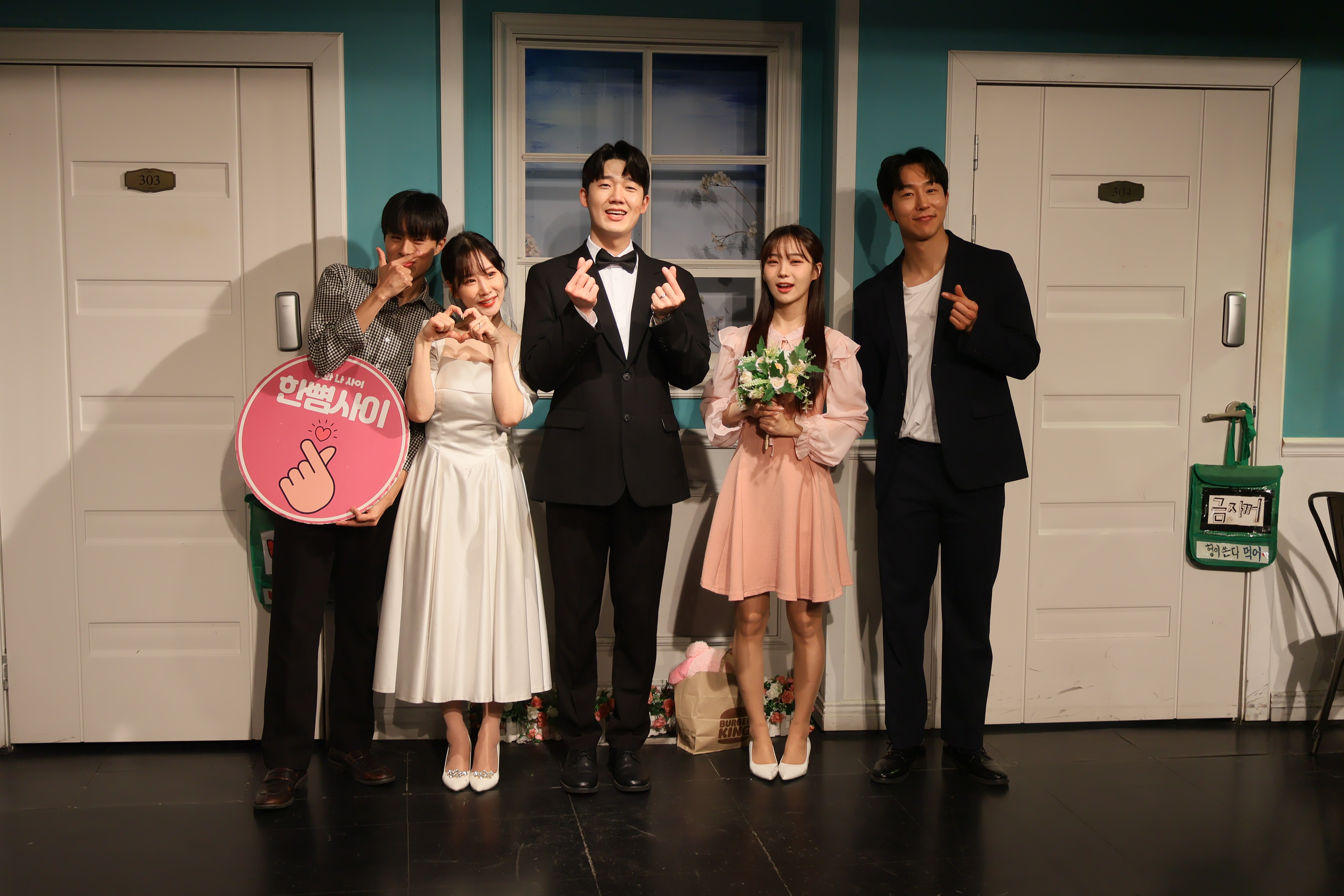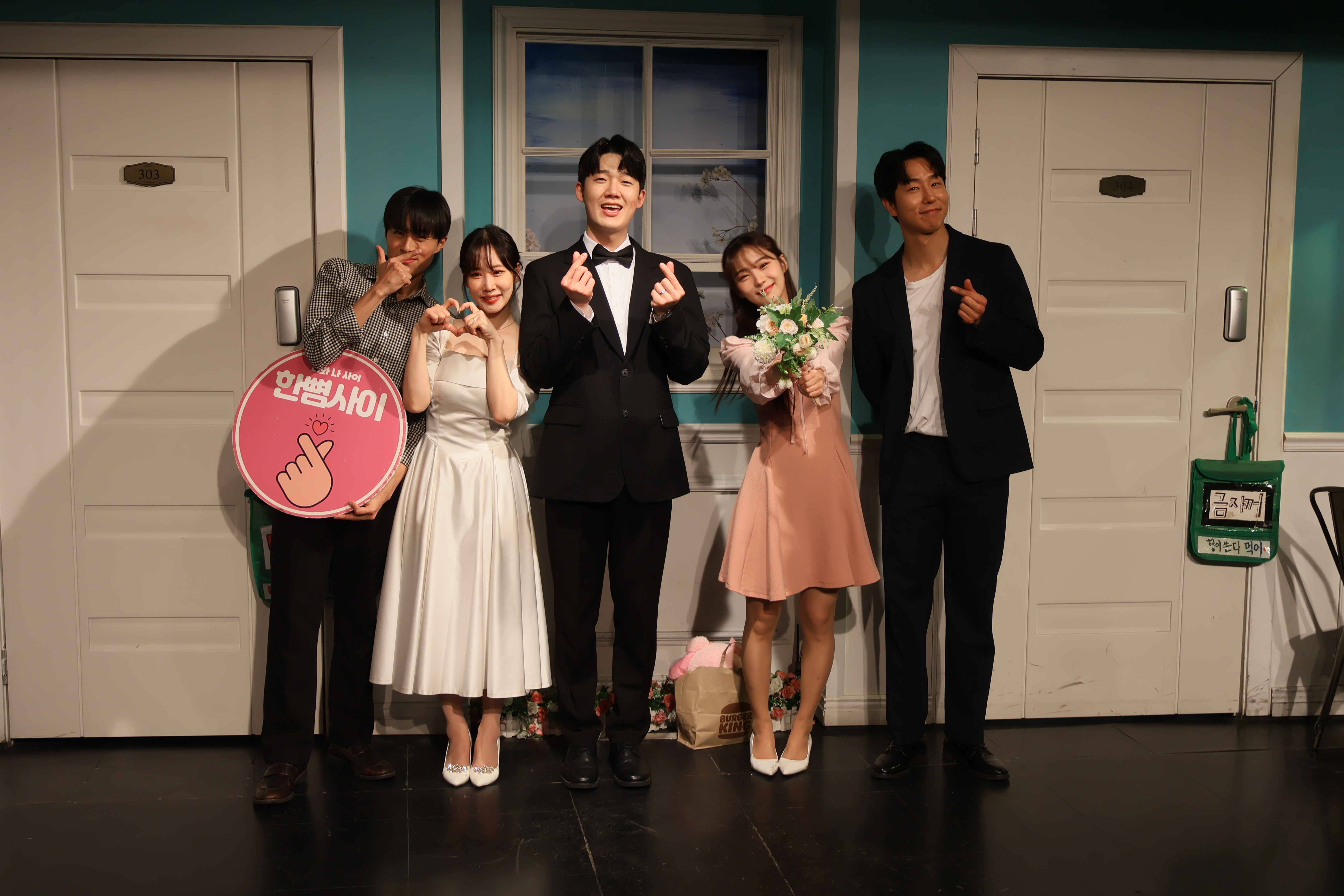 배우들의 마무리 포즈 취하였습니다.