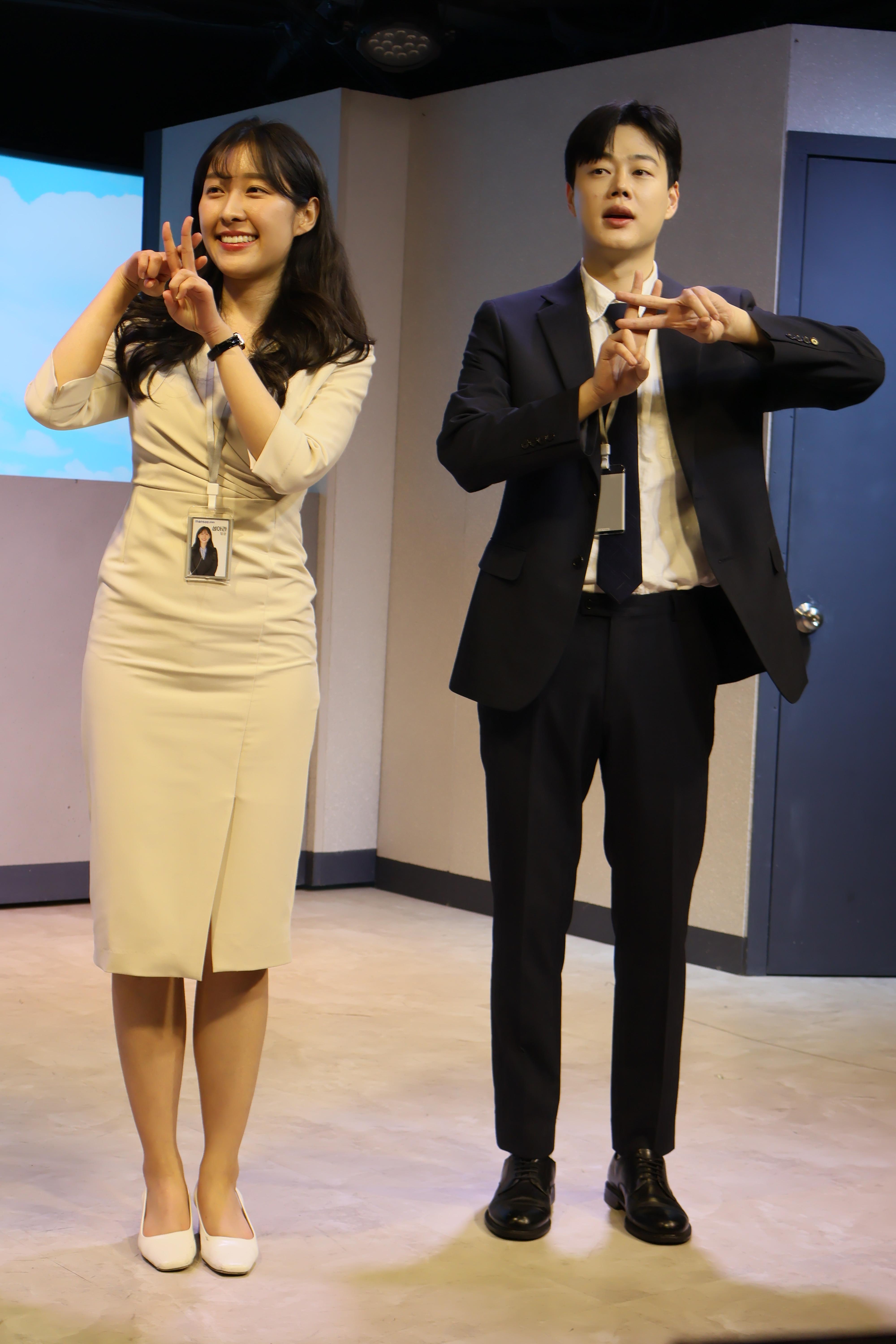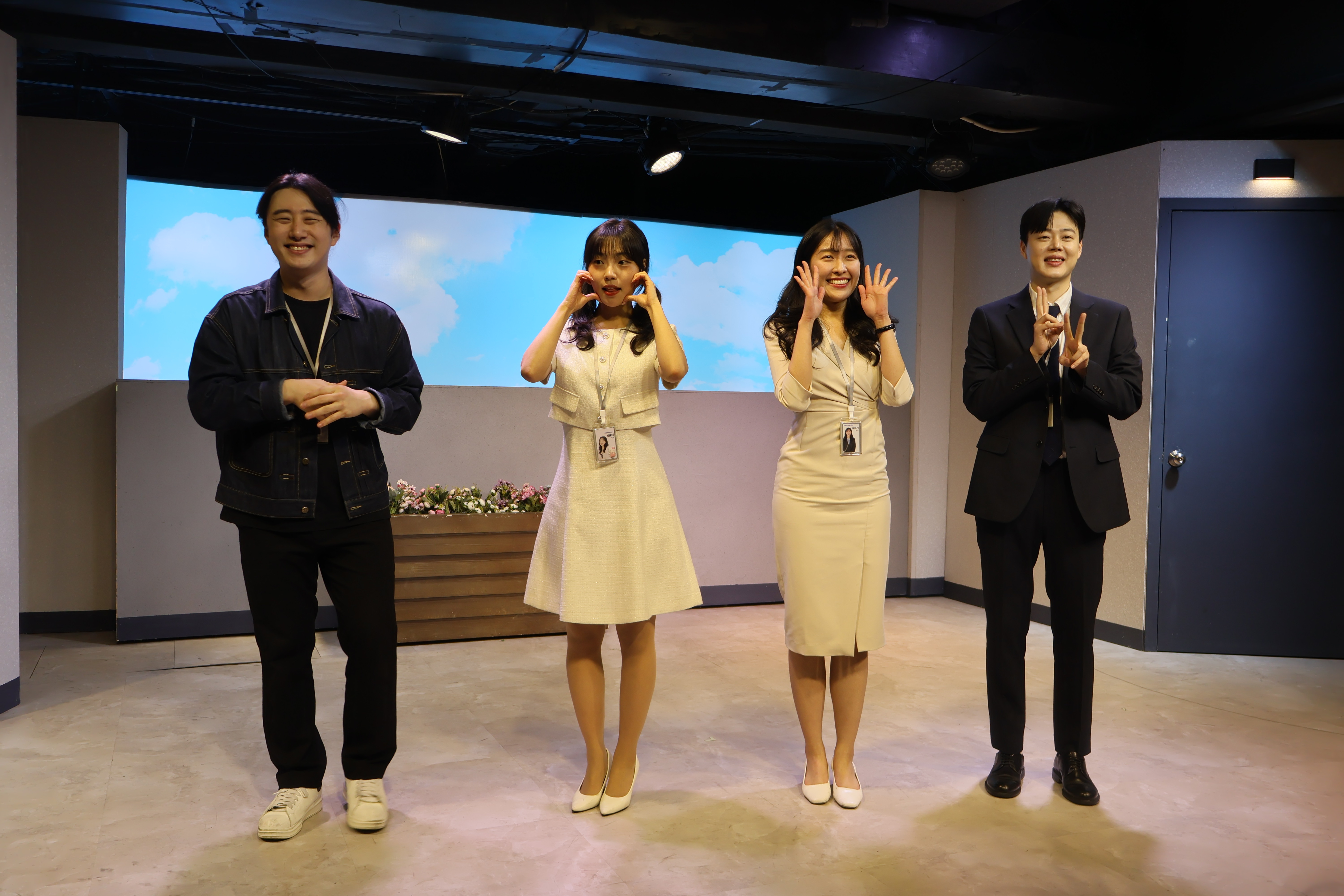 배우들 첫번째 포즈 취하였습니다.