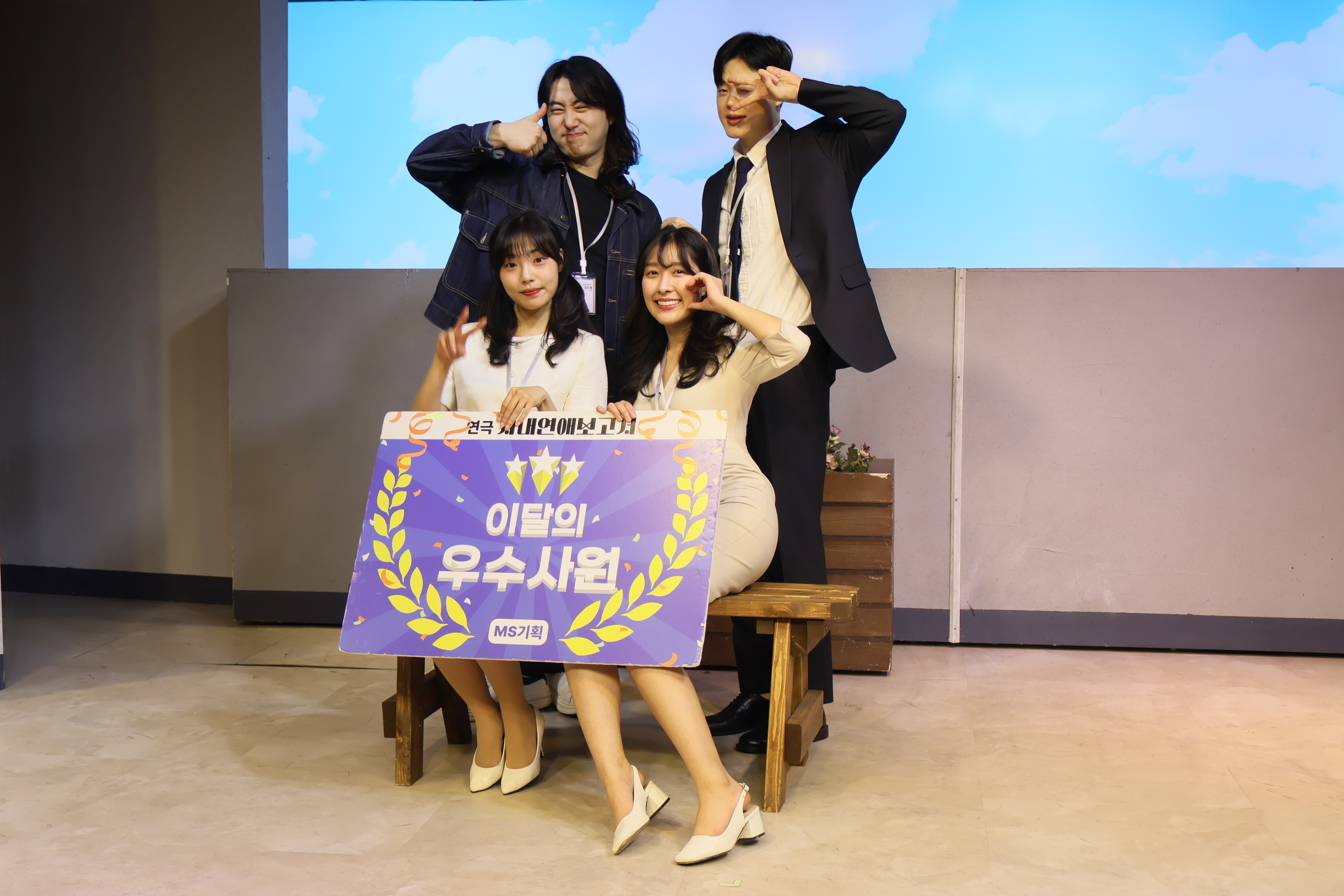 배우들의 마무리 포즈 취하였습니다.