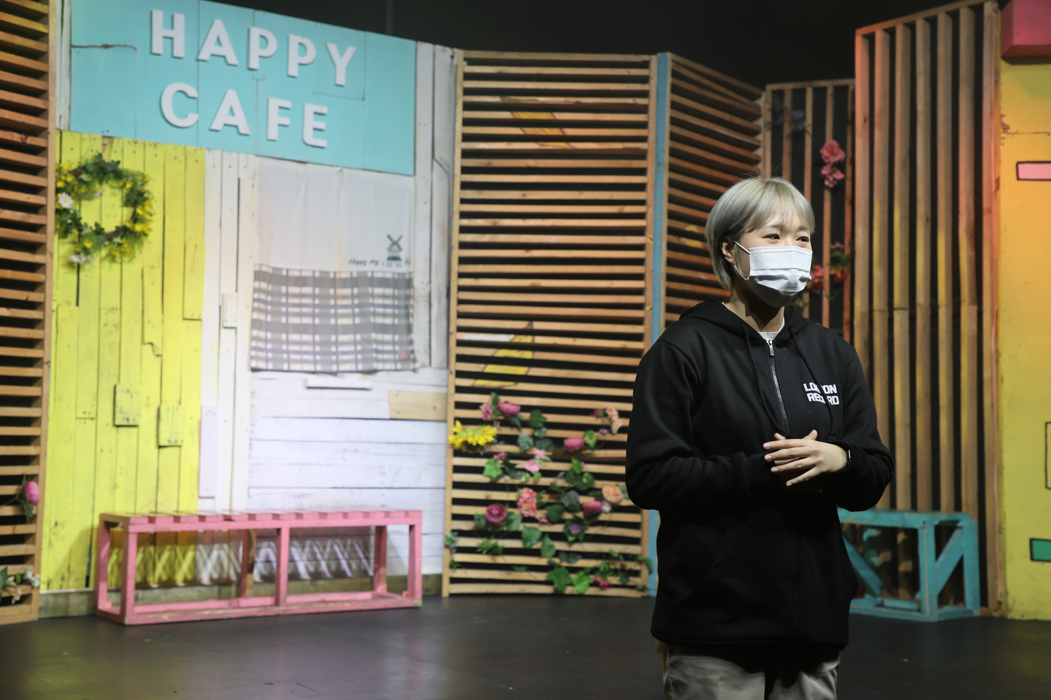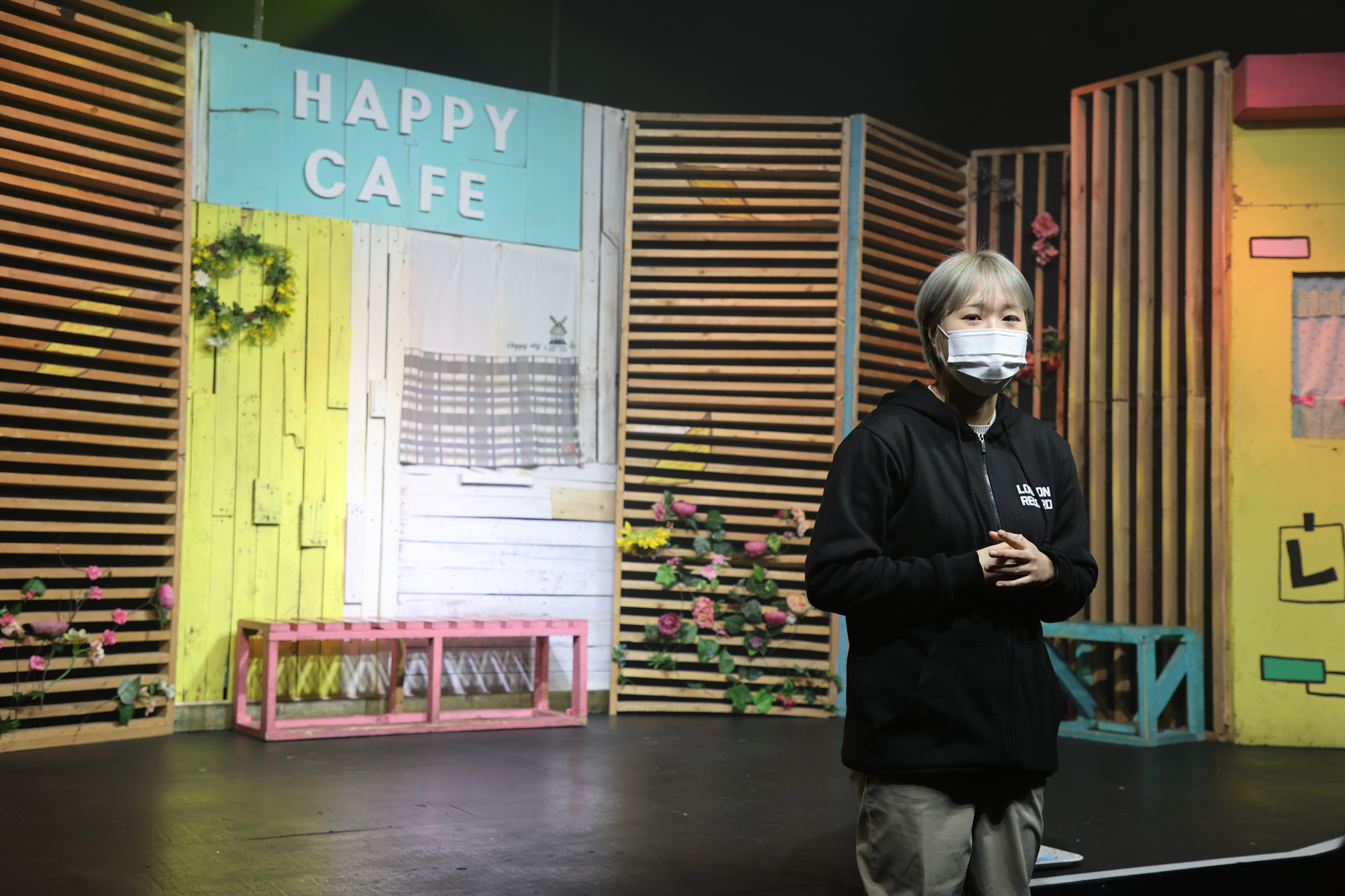 조연출님이 마스크를 쓰고 이야기를 하였습니다.