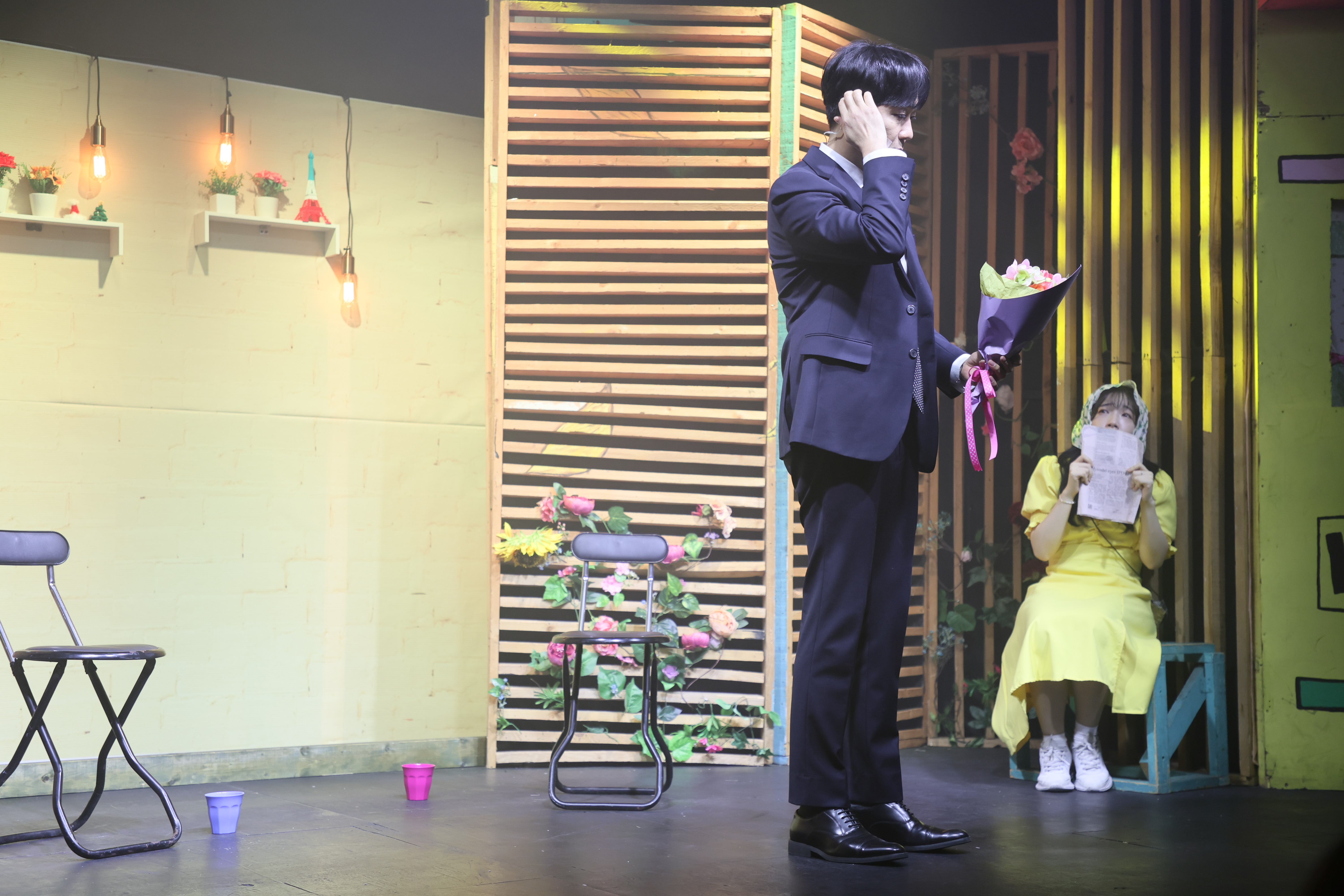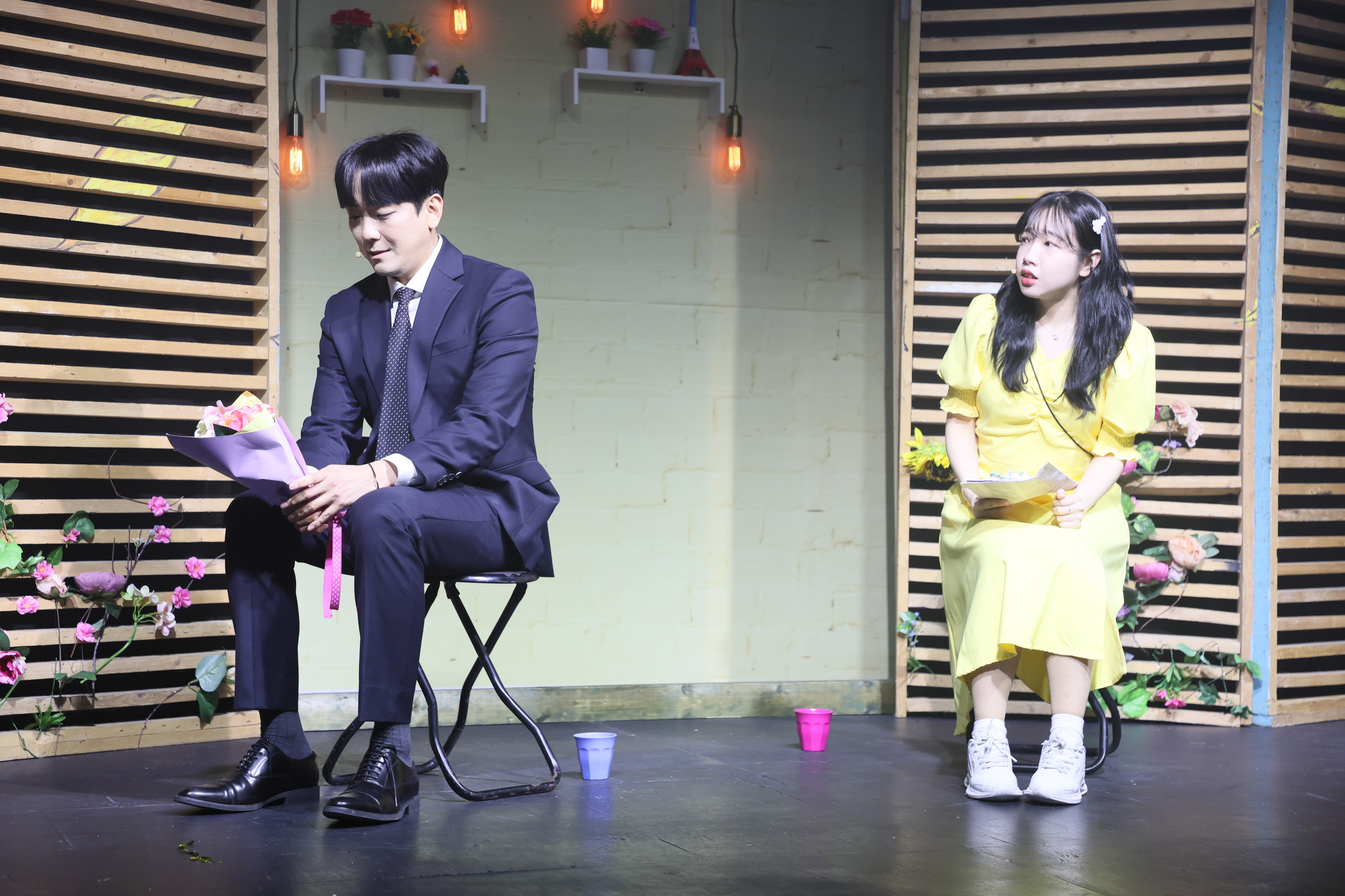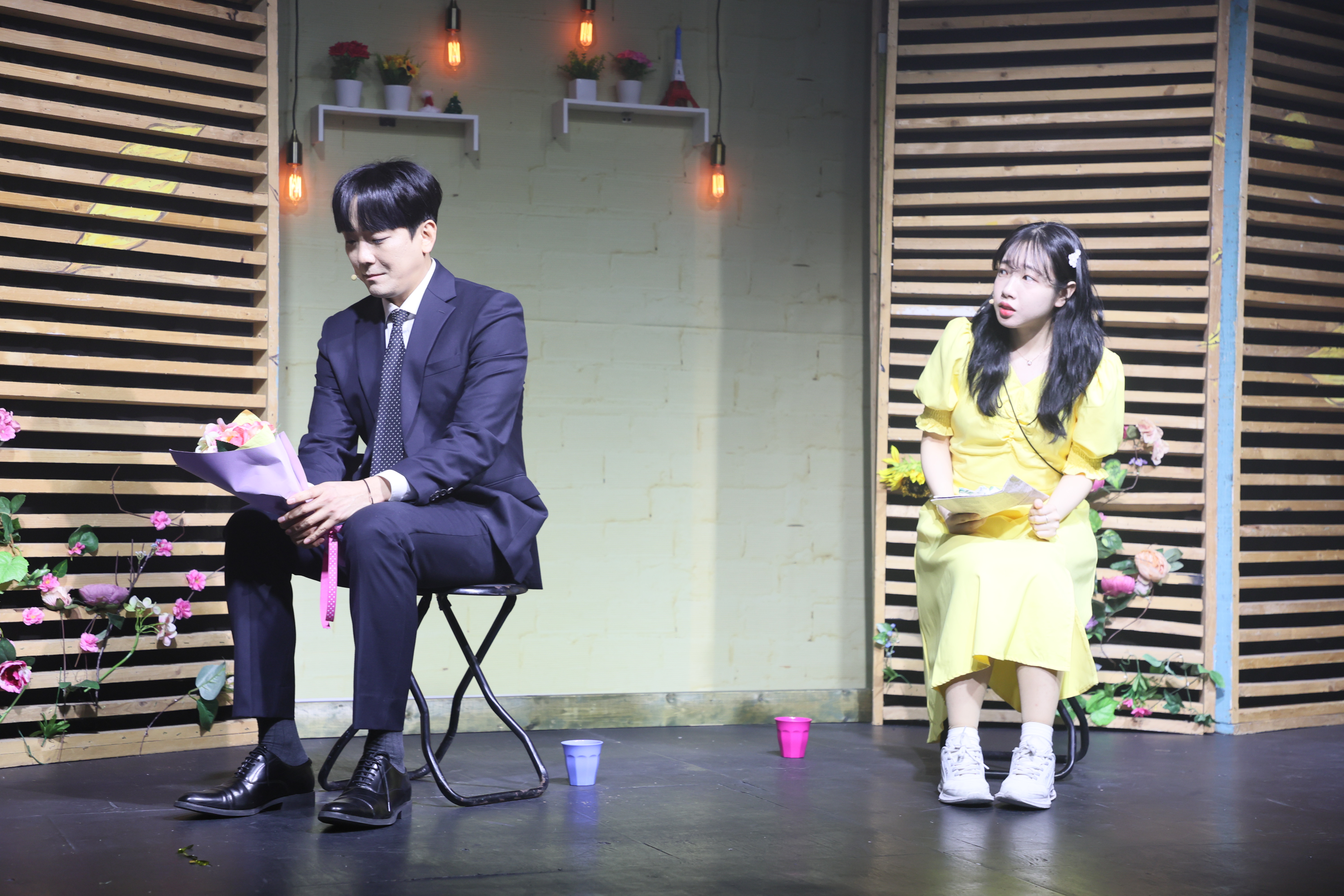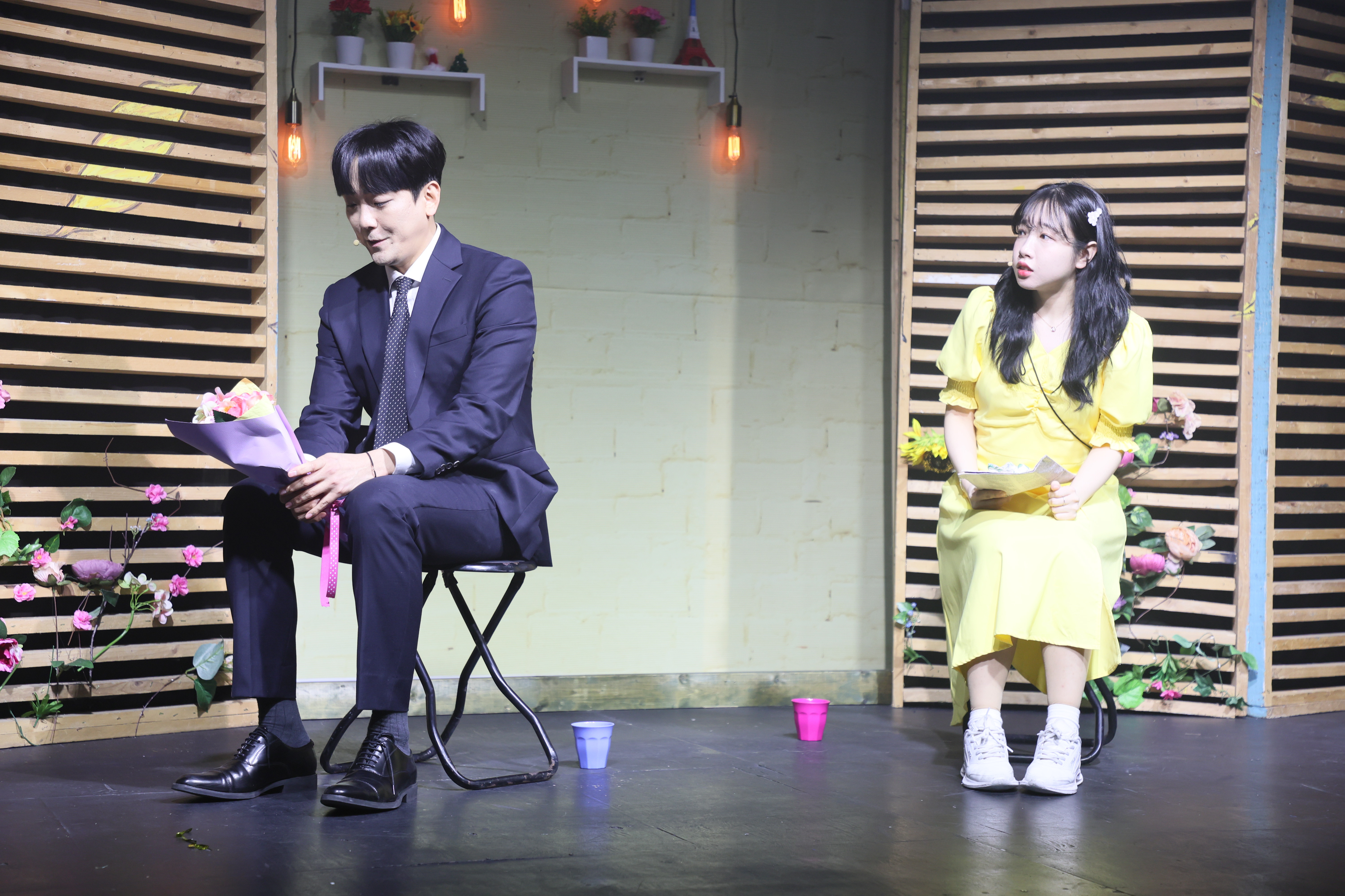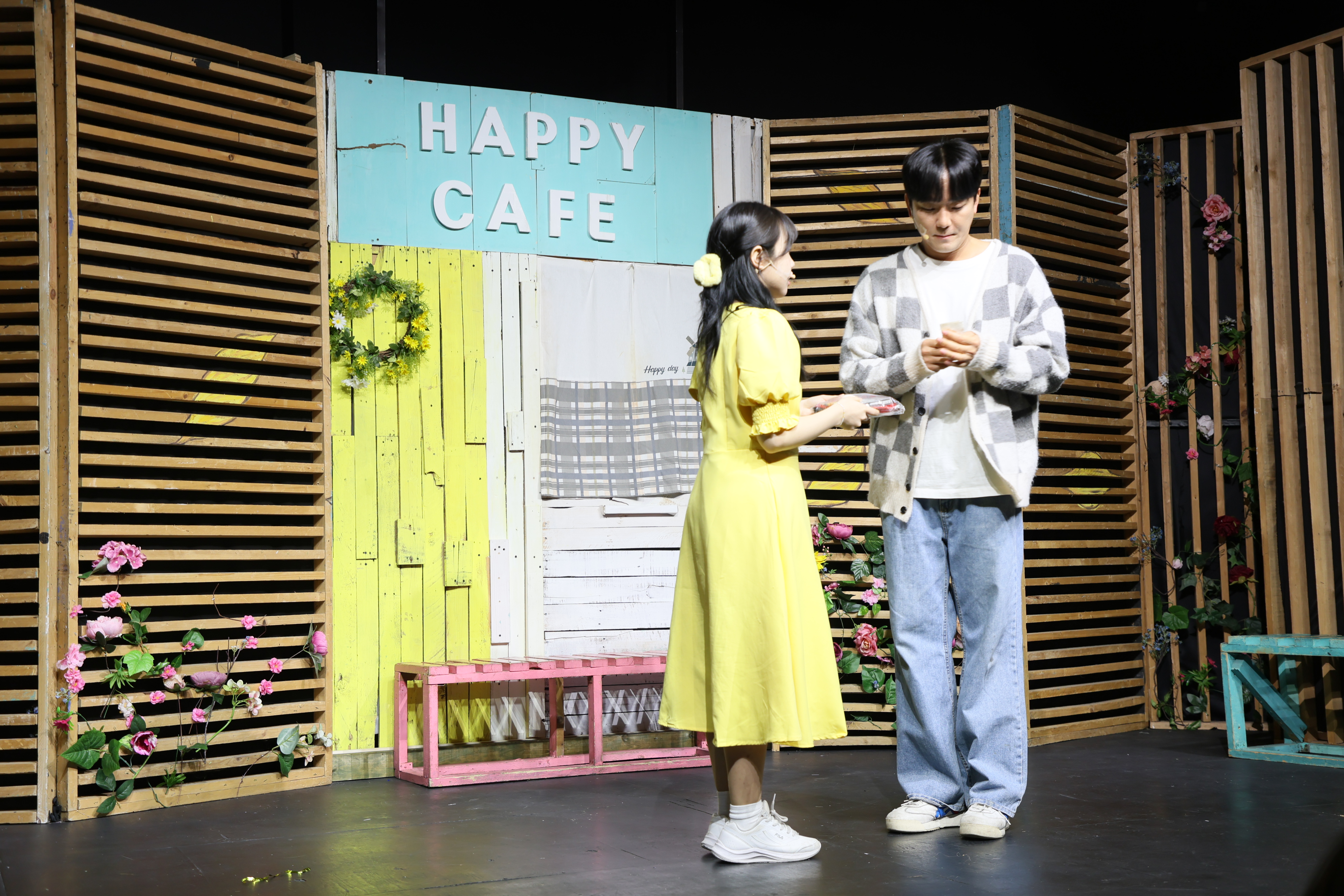 카페에 왔습니다. 둘이서 노래 불렀습니다.