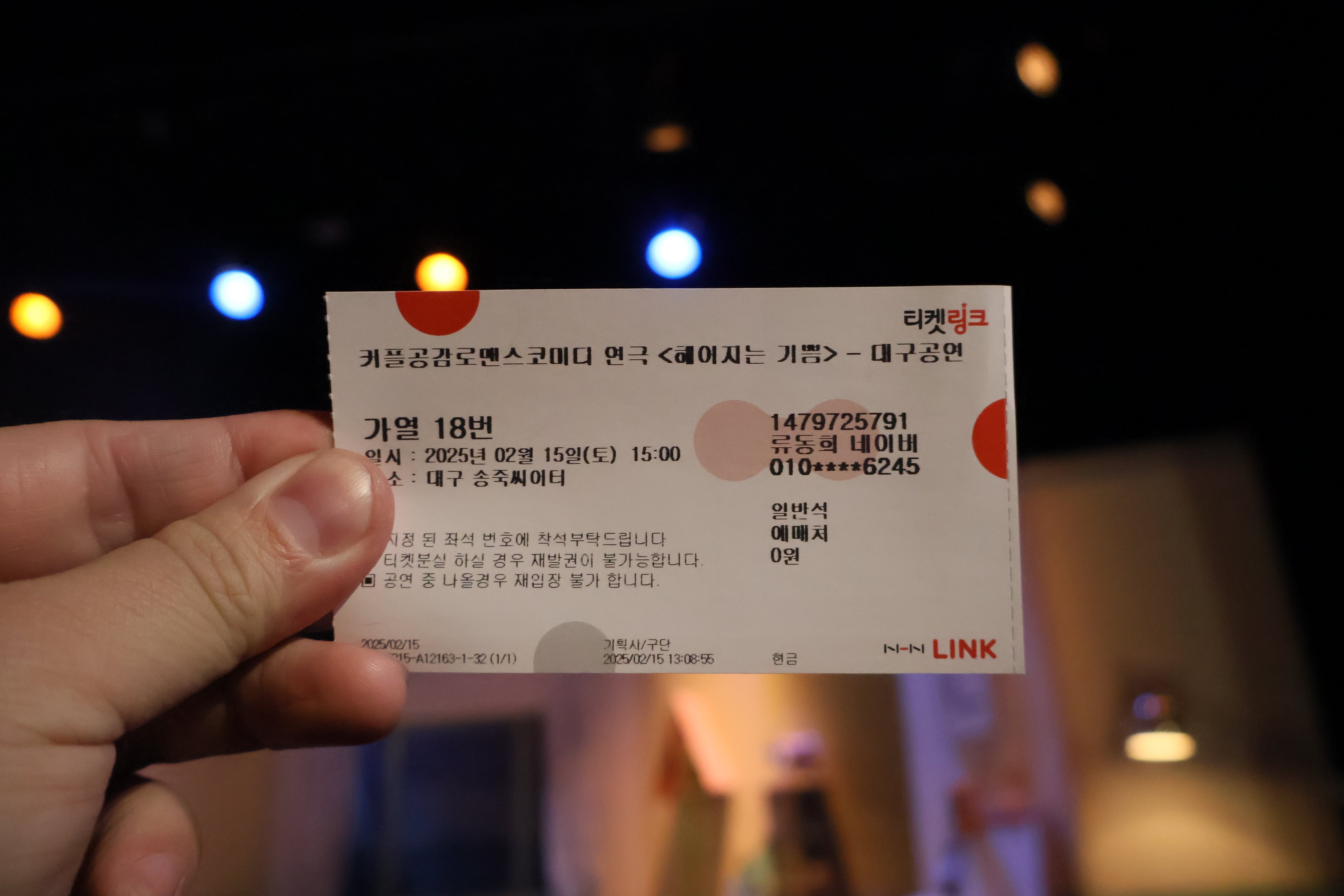 추첨해서 관람권을 드렸습니다.