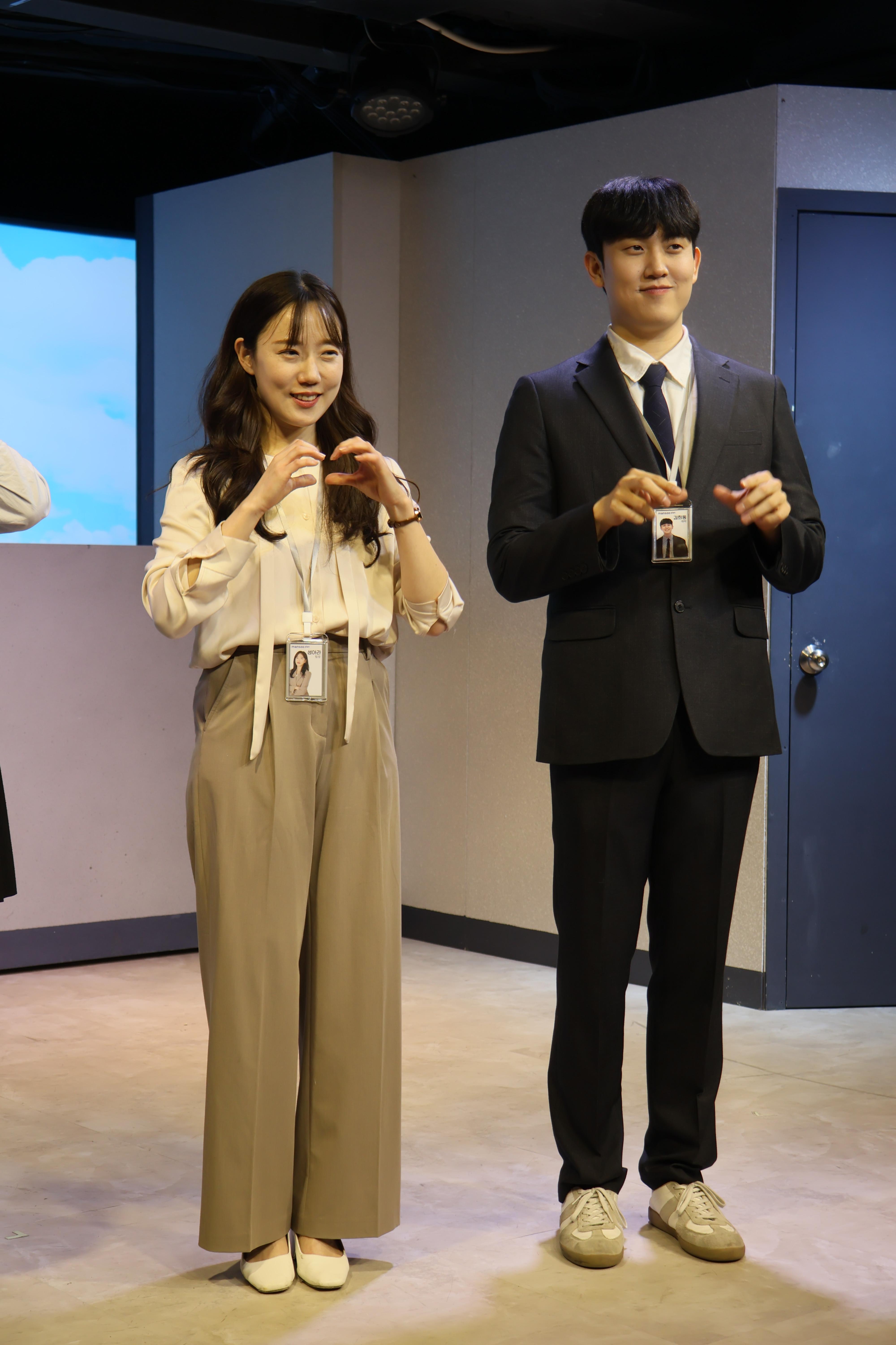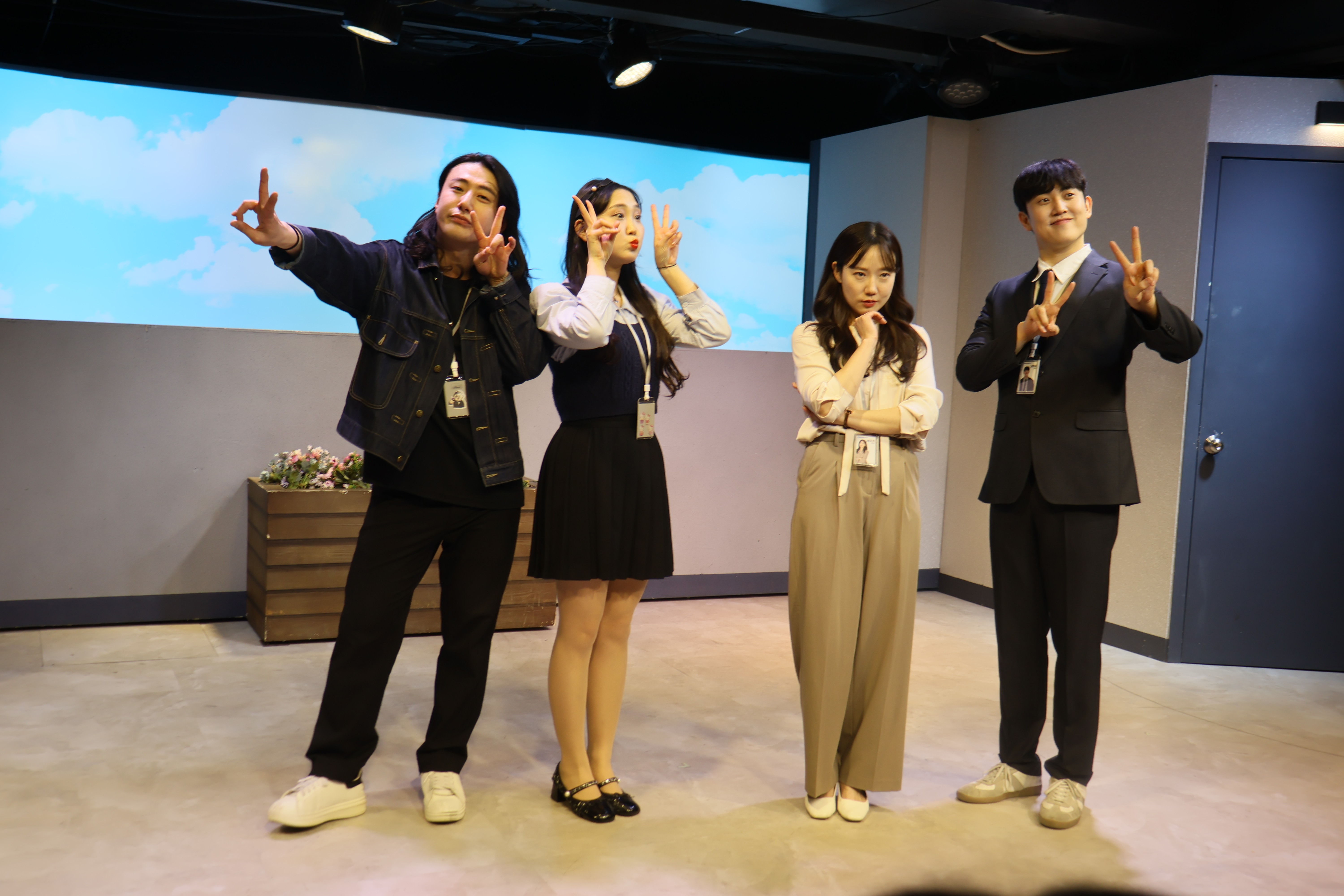 배우들의 마무리 포즈 취하였습니다.