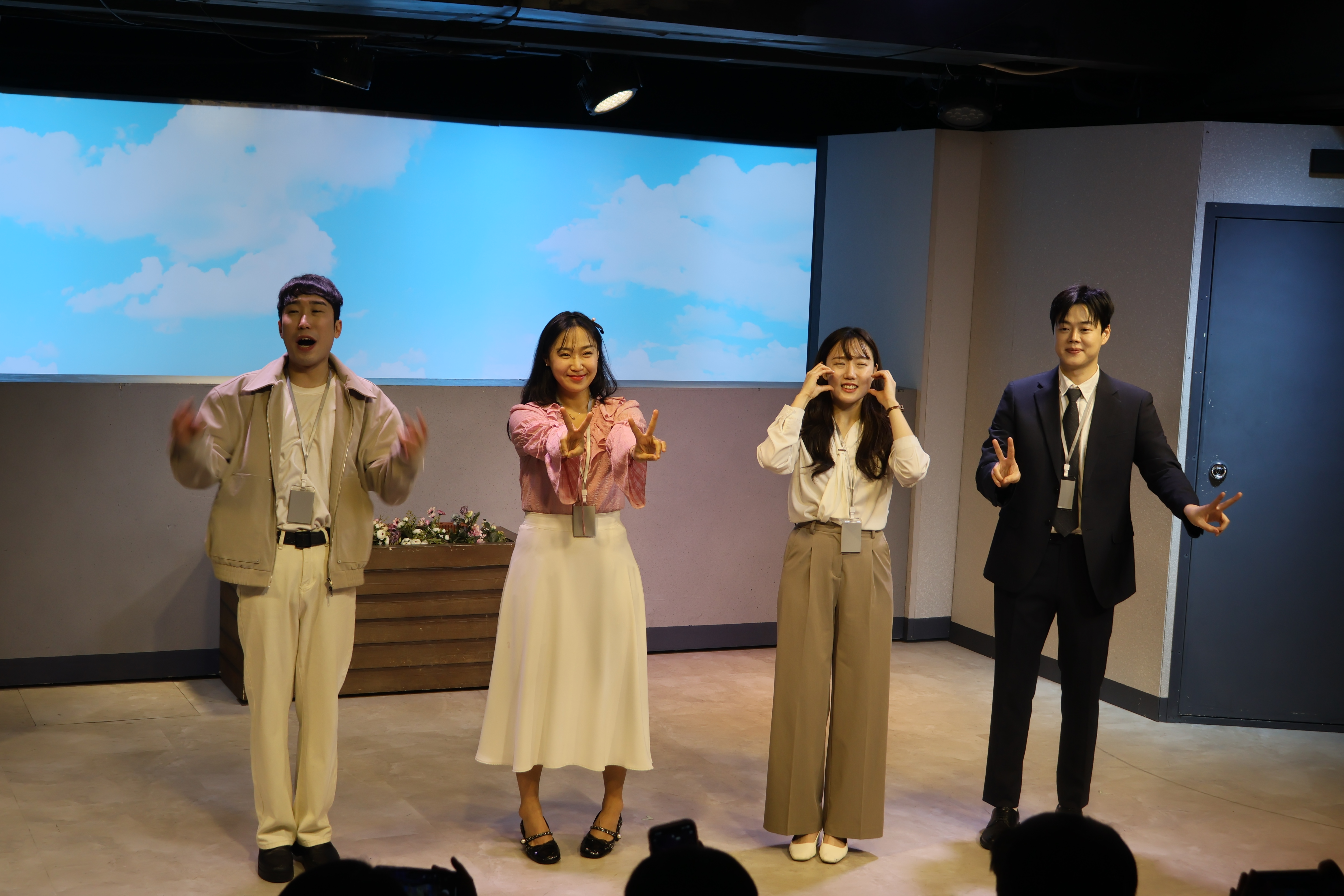 배우들의 마무리 포즈 취하였습니다.