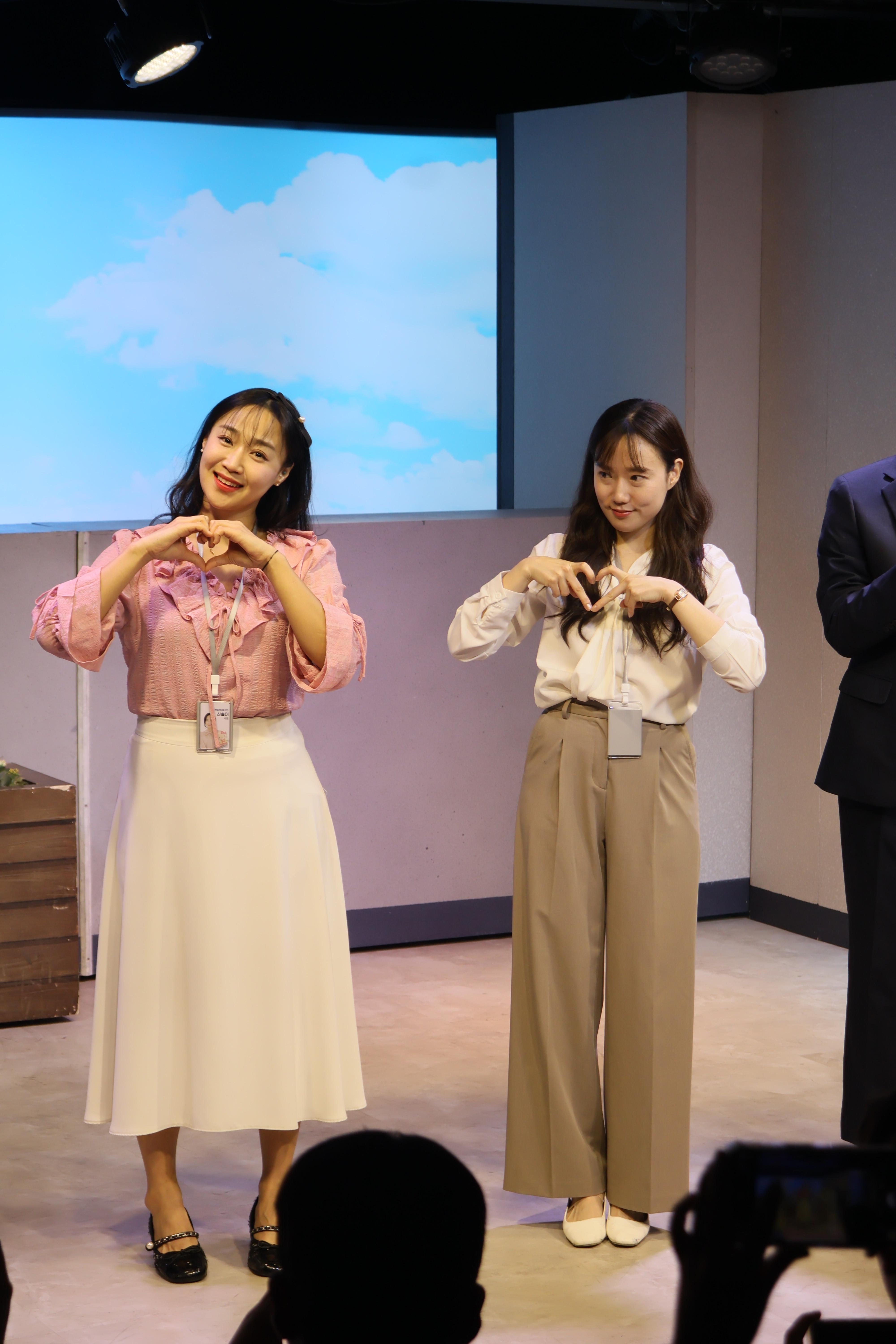 배우들 포즈를 취하였습니다.