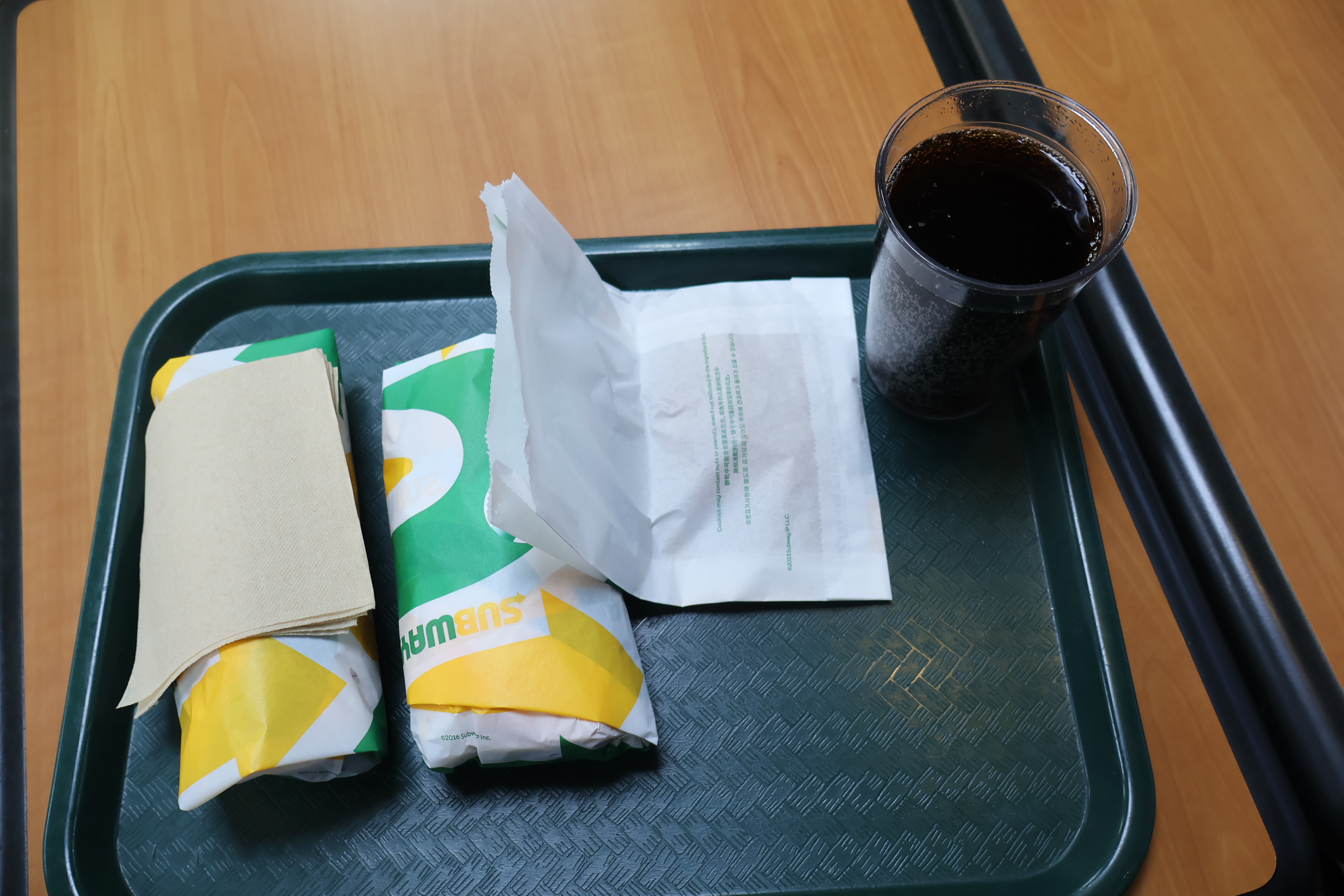 에그마요,애그샌드와 쿠키 그리고 탄산음료 해서 13,800원에 드셨습니다.