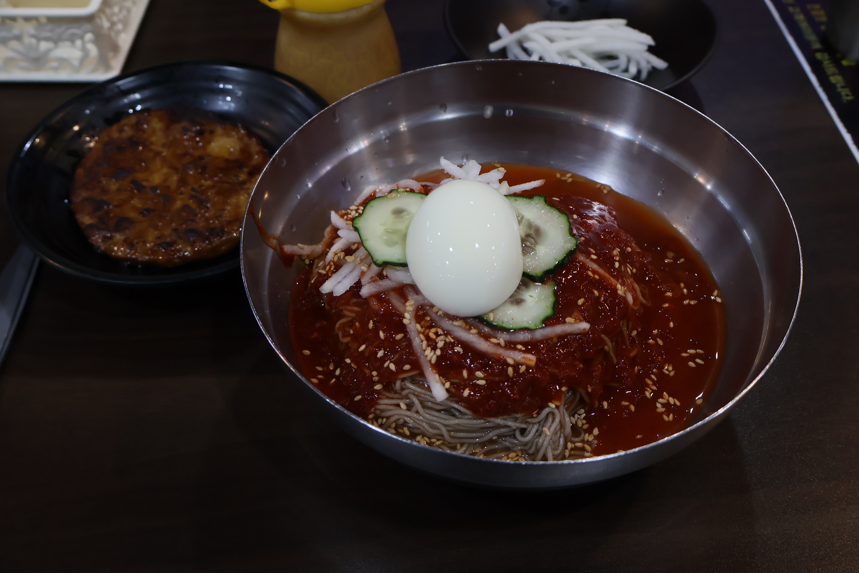 비빔냉면 곱배기와 떡갈비 1장이 기본으로 들어 갑니다. 맛있습니다. 1만1천원 짜리 입니다.