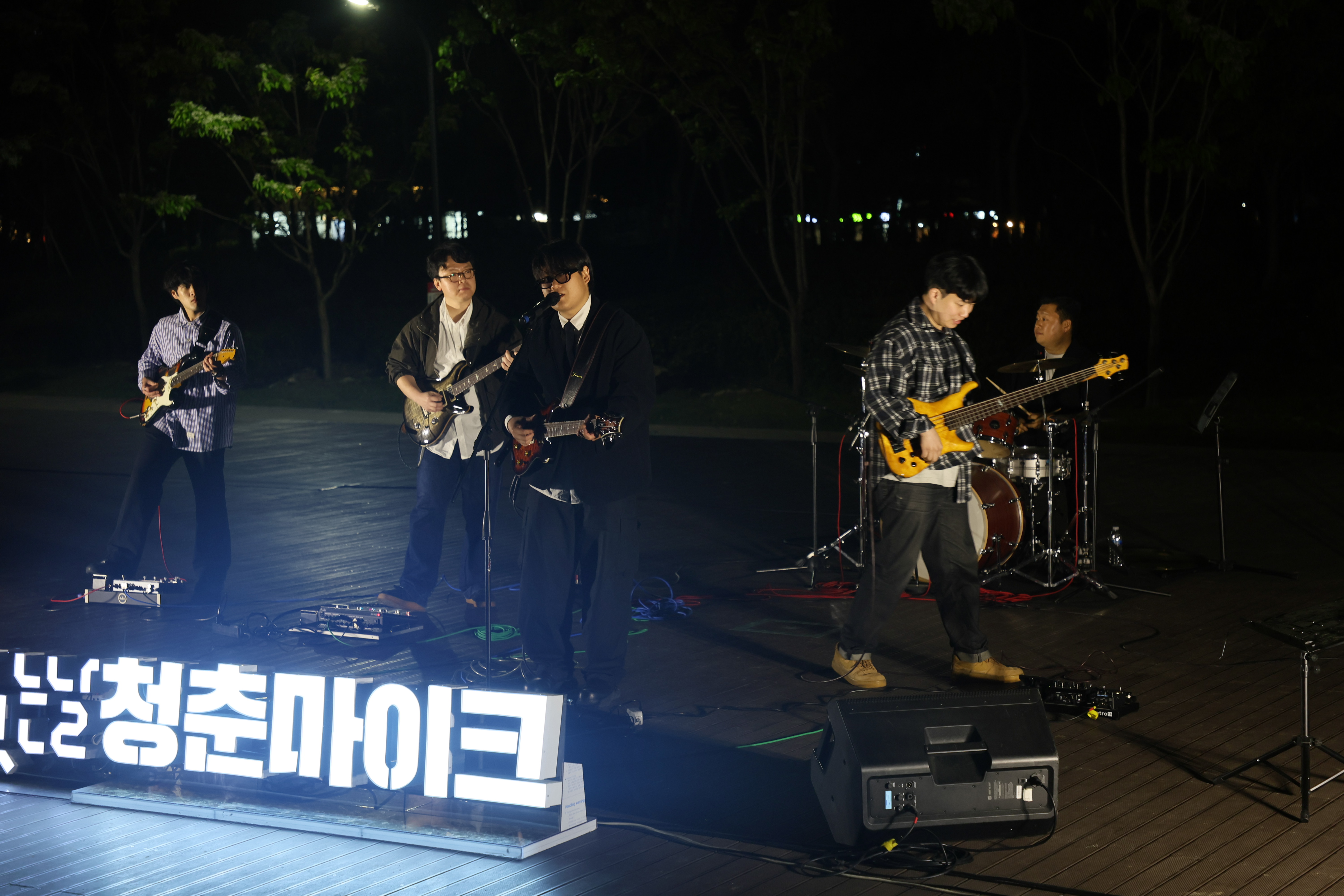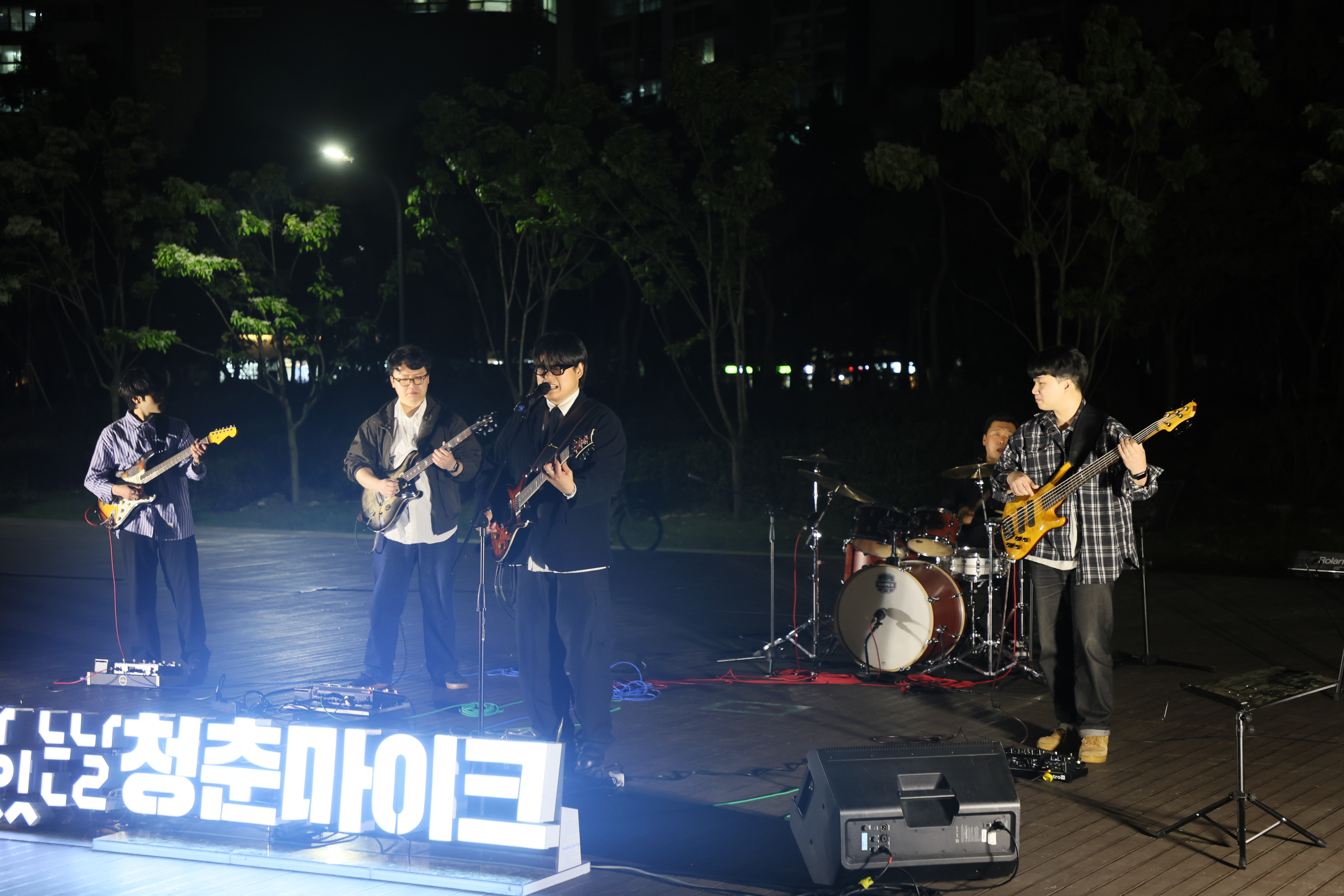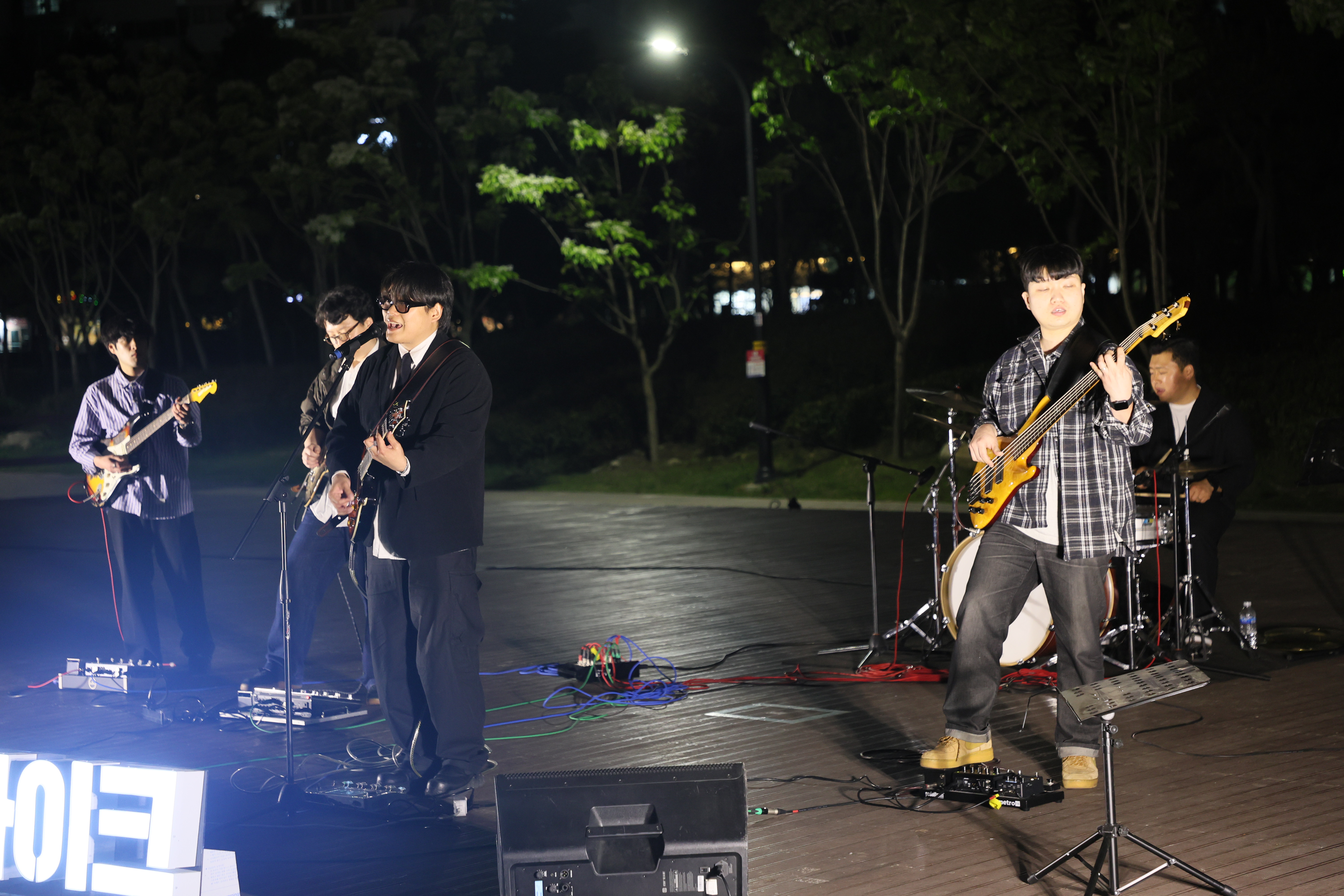 드럼치고, 베이스와 기타 4명 입니다. 심상명 밴드의 단독 출연하였습니다.