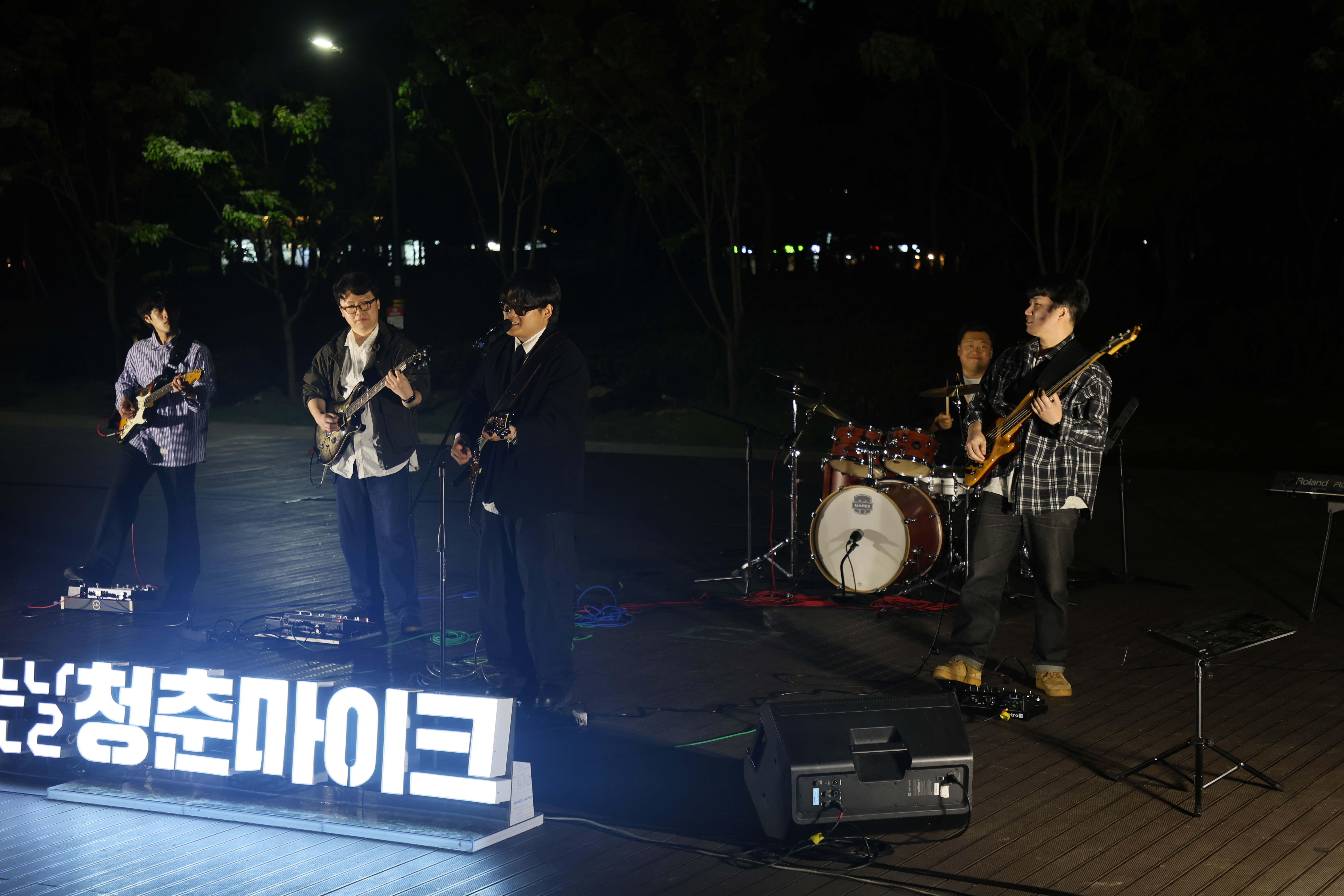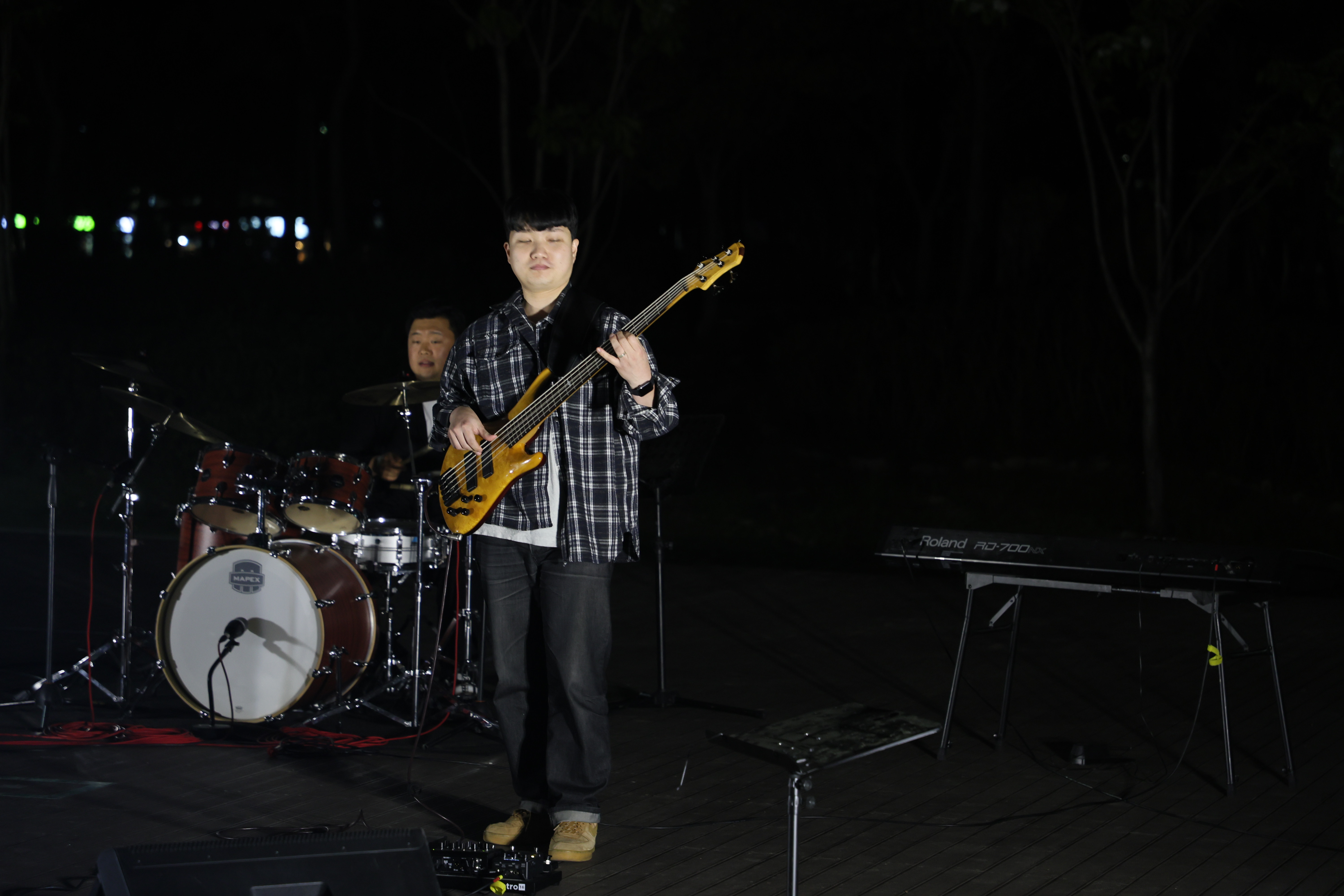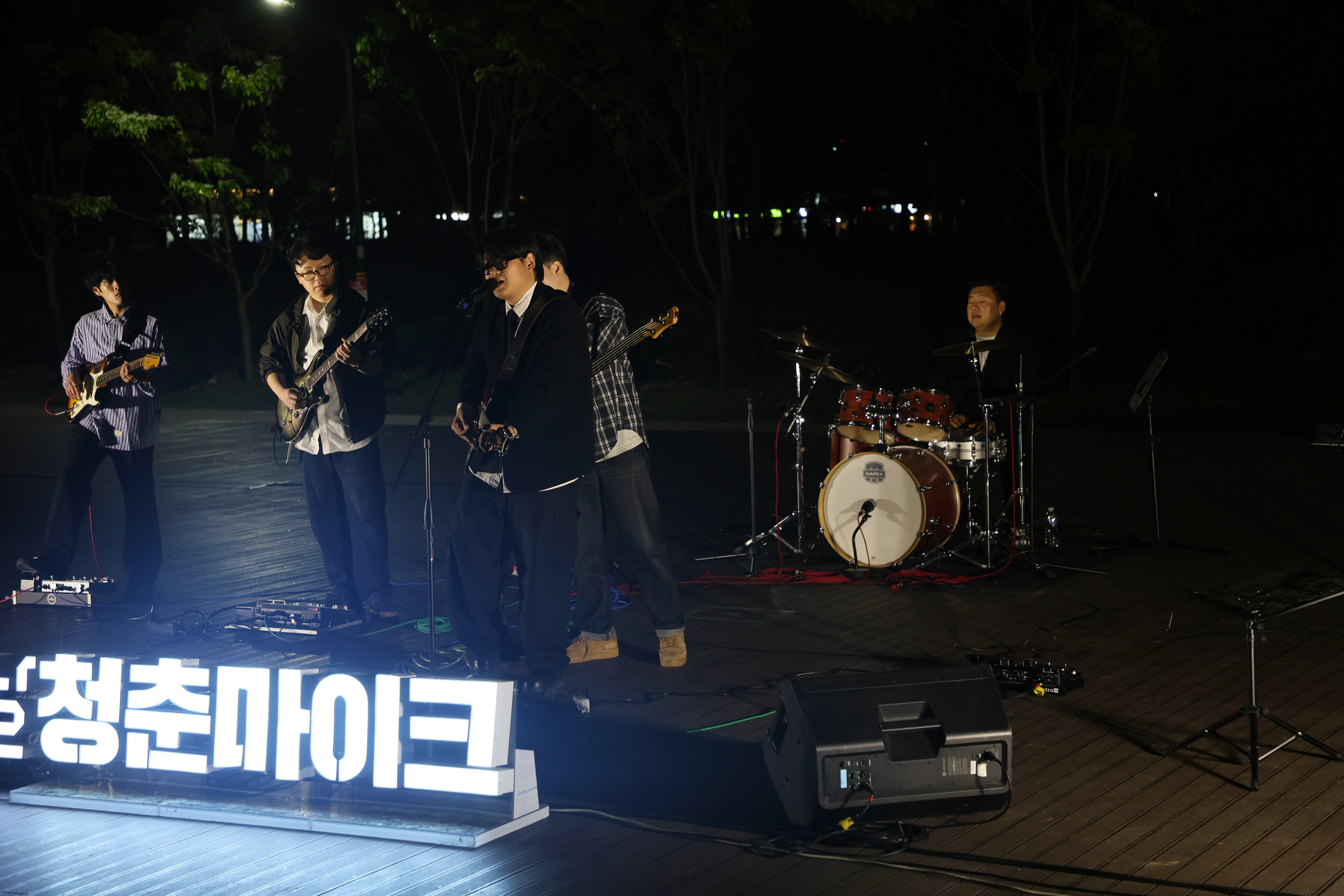드럼치고, 베이스와 기타 4명 입니다. 심상명 밴드의 단독 출연하였습니다.
