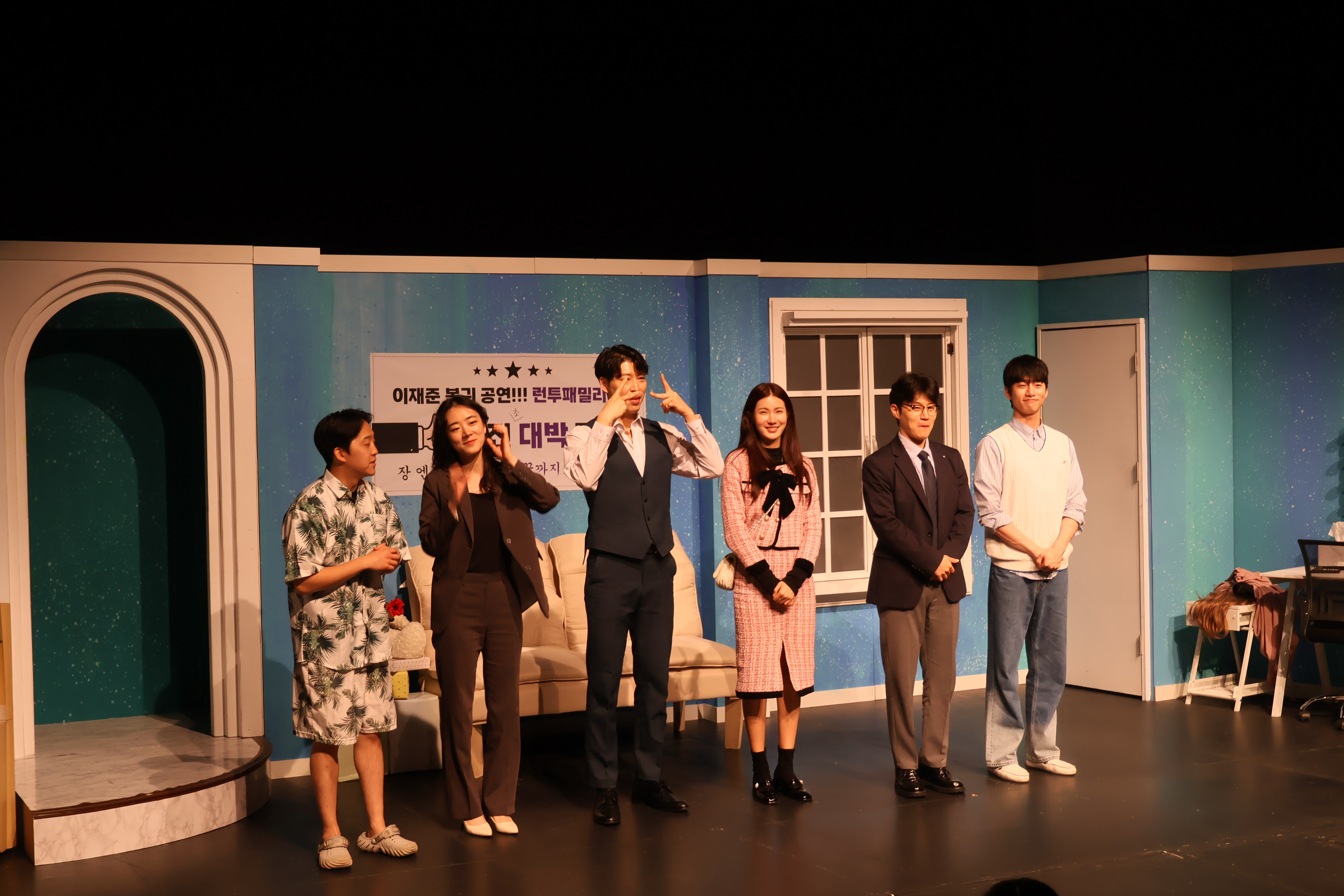 배우들 포즈 취하고, 무대인사와 커튼콜을 하였습니다.