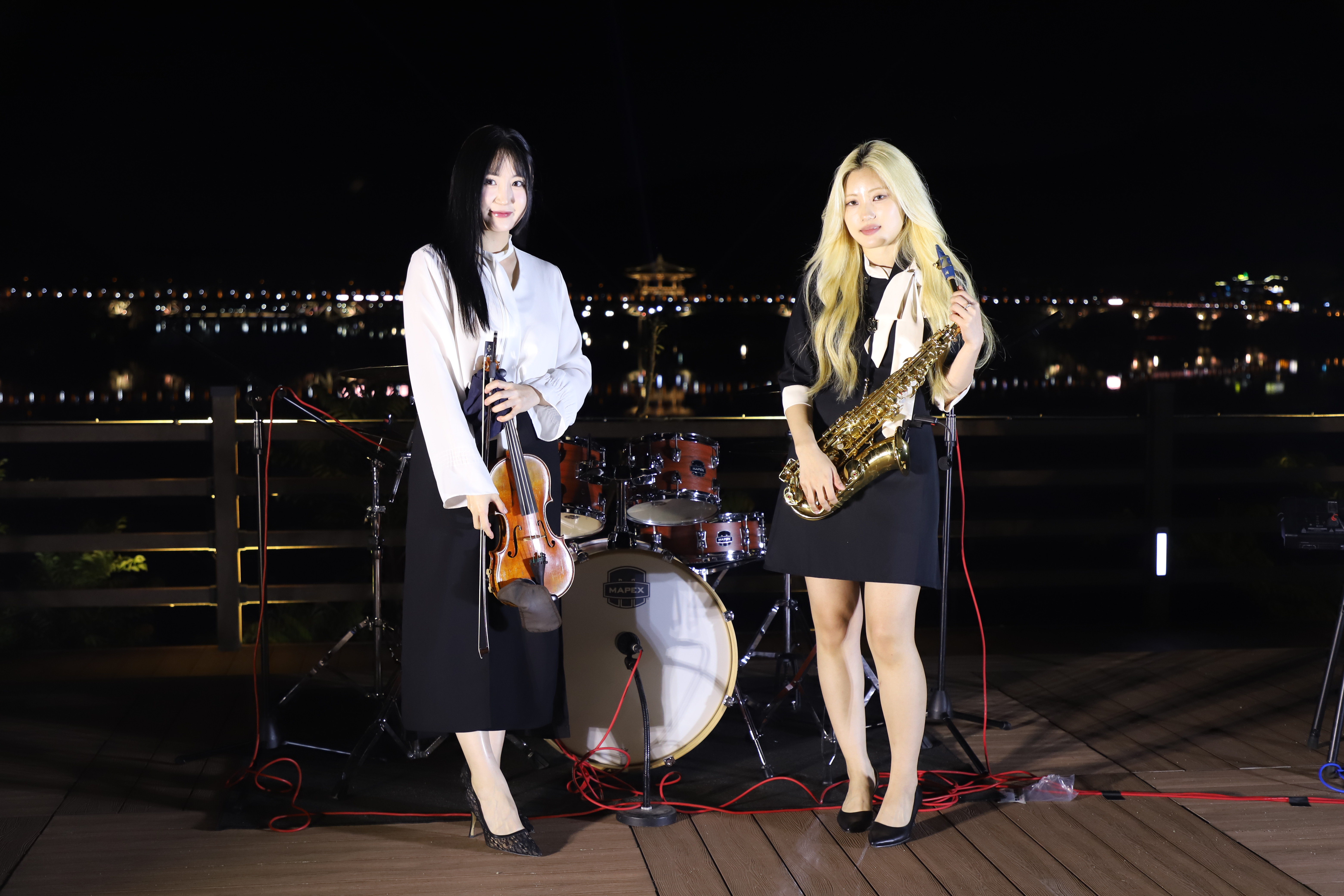 글로우플로우 방연주,오빛나 멤버의 안동 월영교를 바라보면서 자세를 취하였습니다.