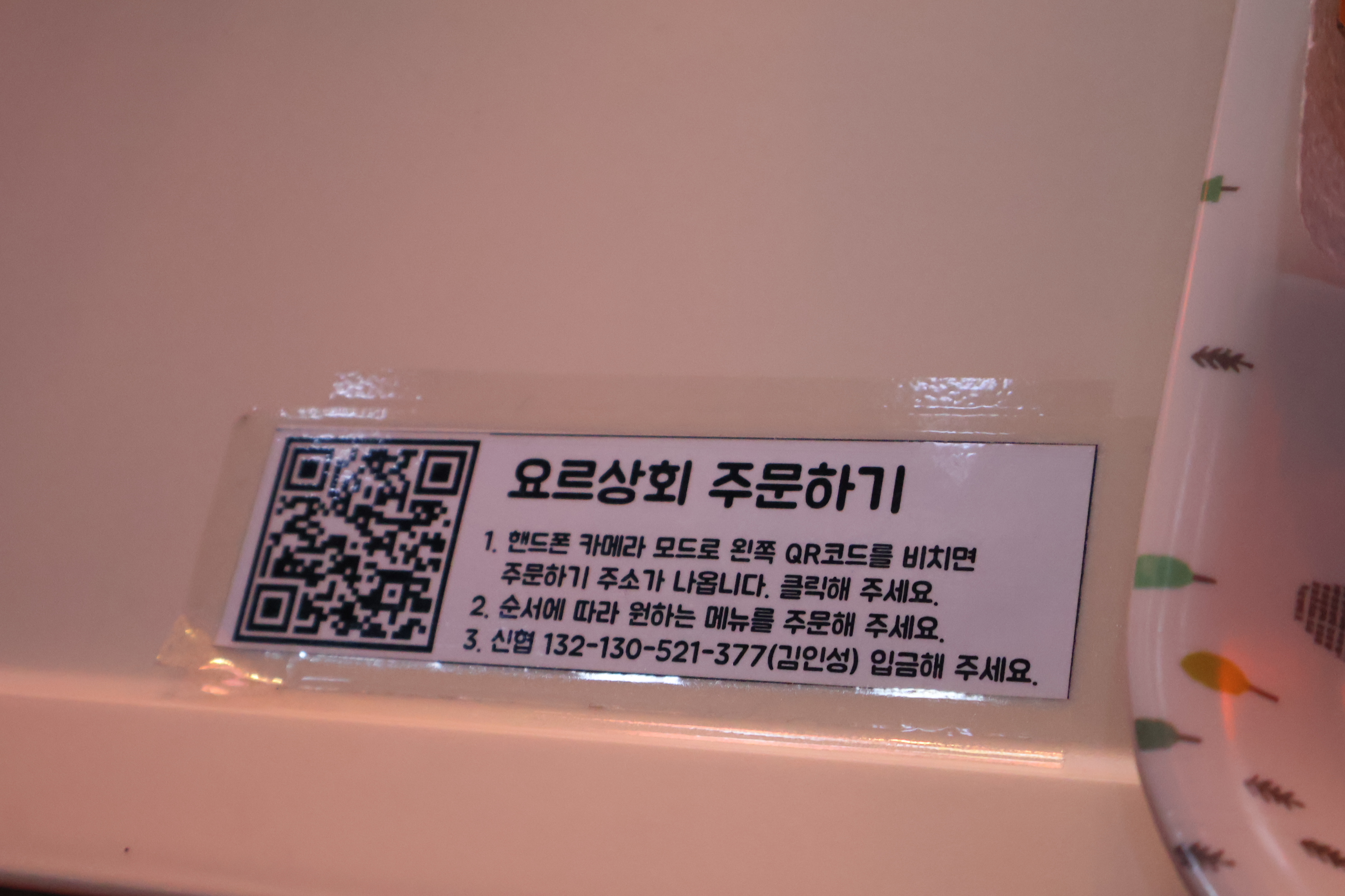 요르상회는 QR로 주문하고, 계좌이체를 하면 되겠습니다.