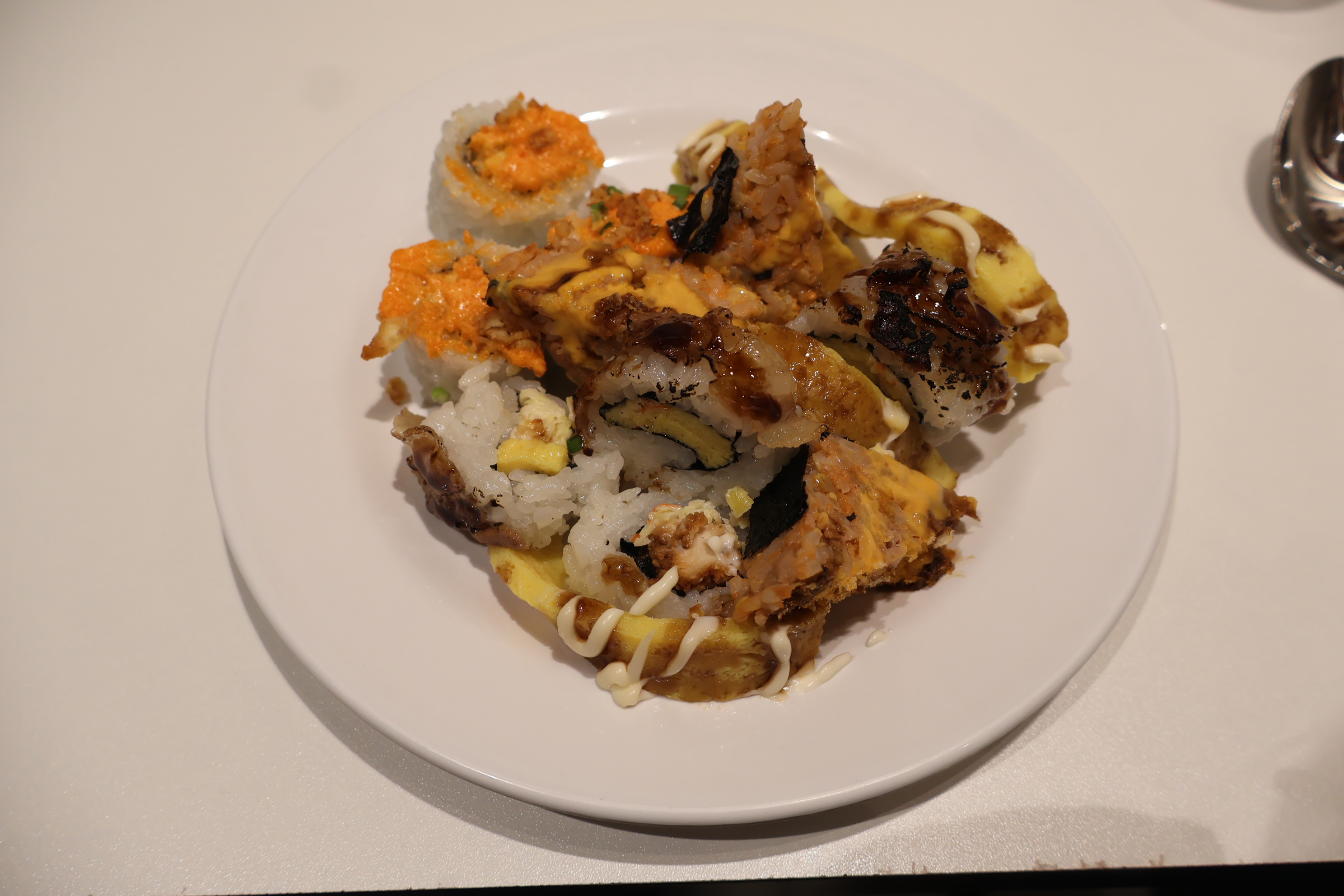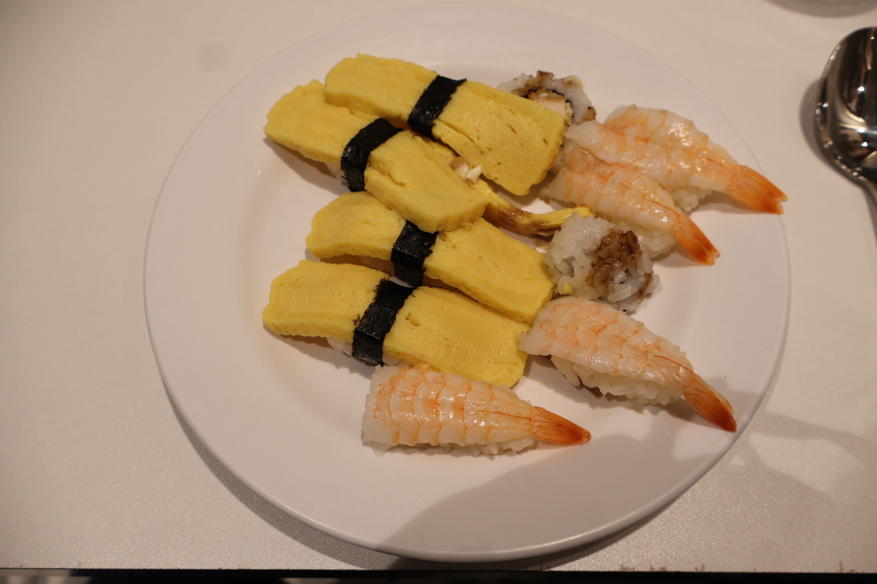 계란,새우초밥과 우삼겹롤 입니다.