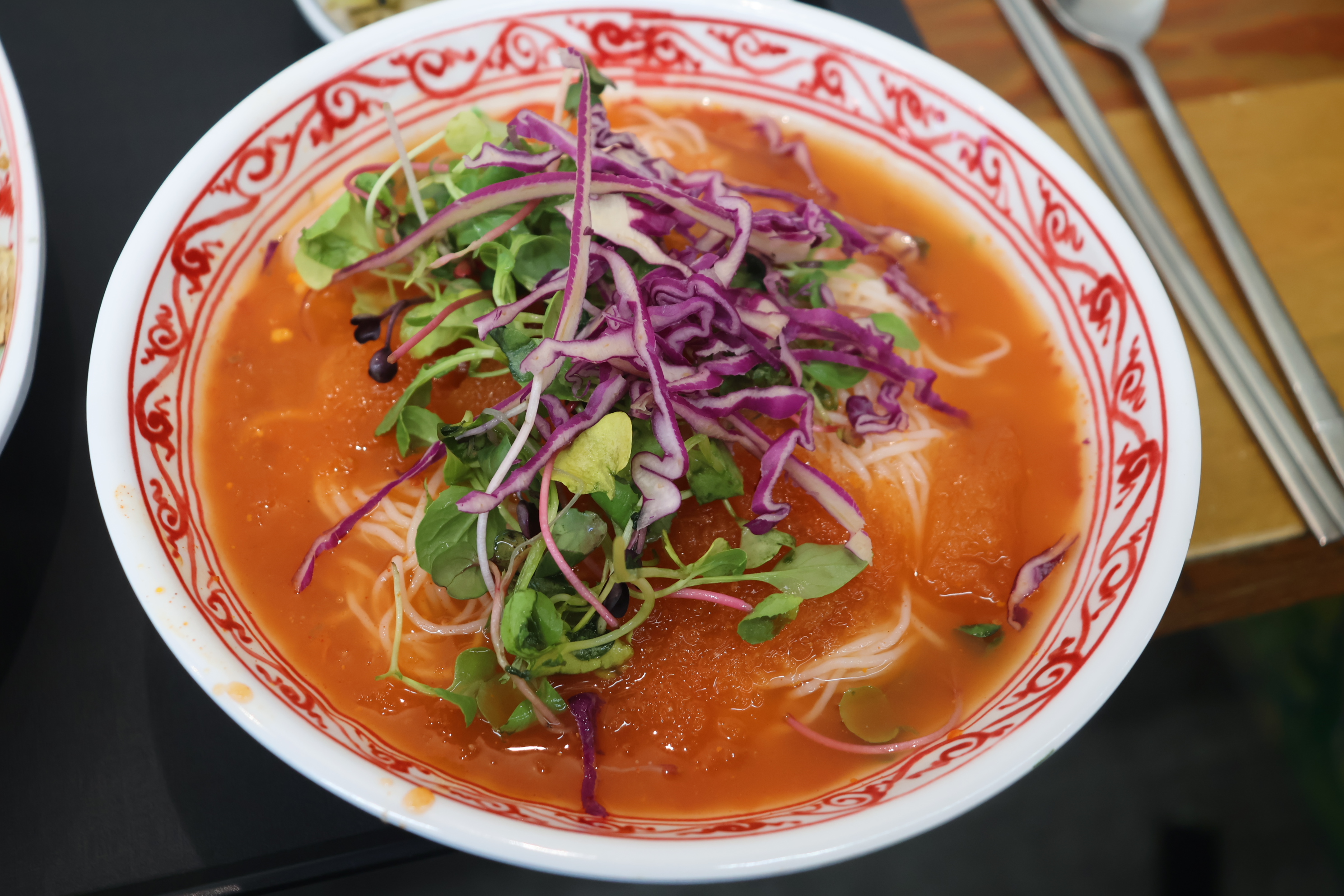 냉쌀국수는 쌀국수와 세잎클로버,적채가 들어가 있어서 8천9백원에 드셨습니다.