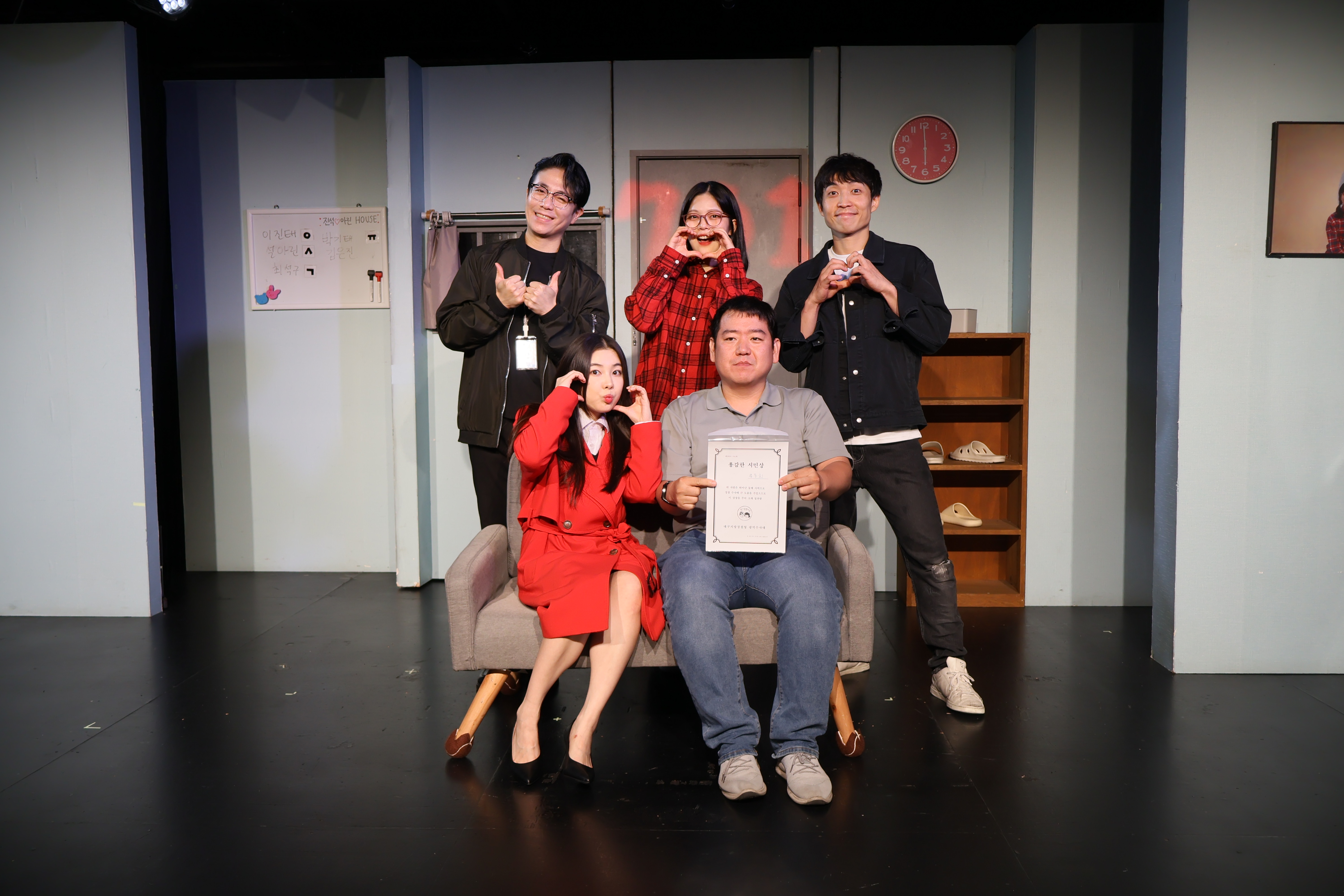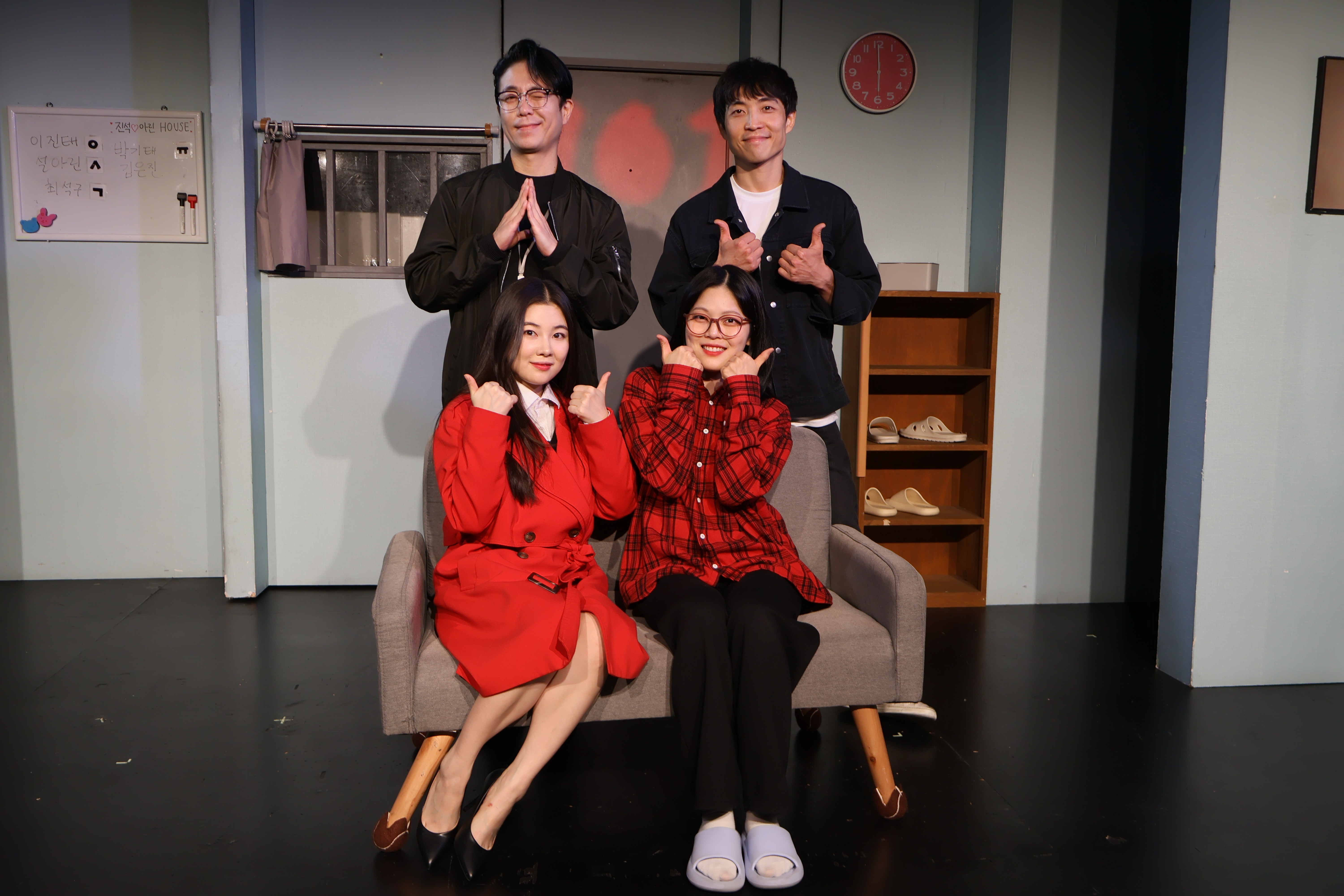 배우들의 마무리 포즈 취하였습니다.