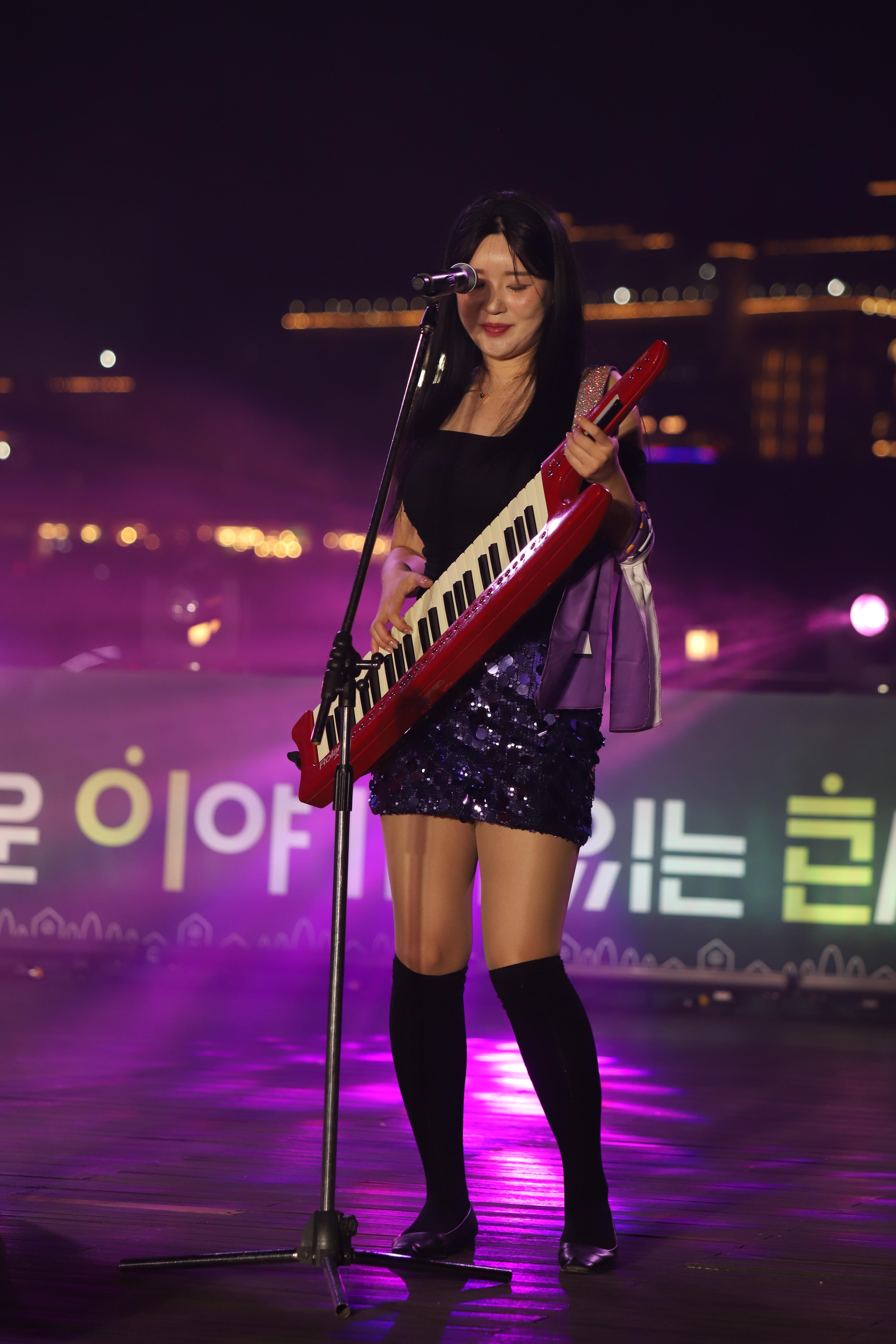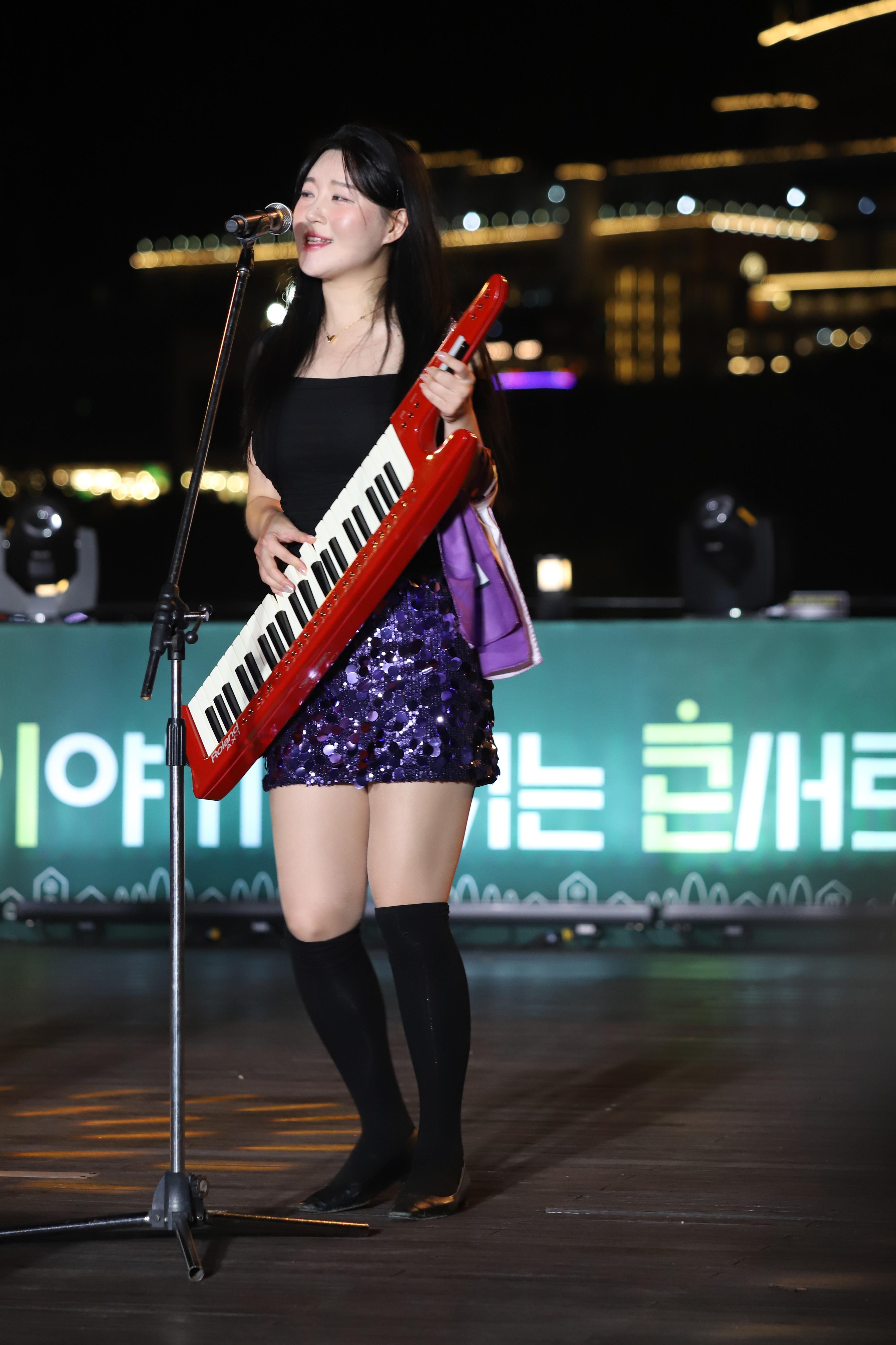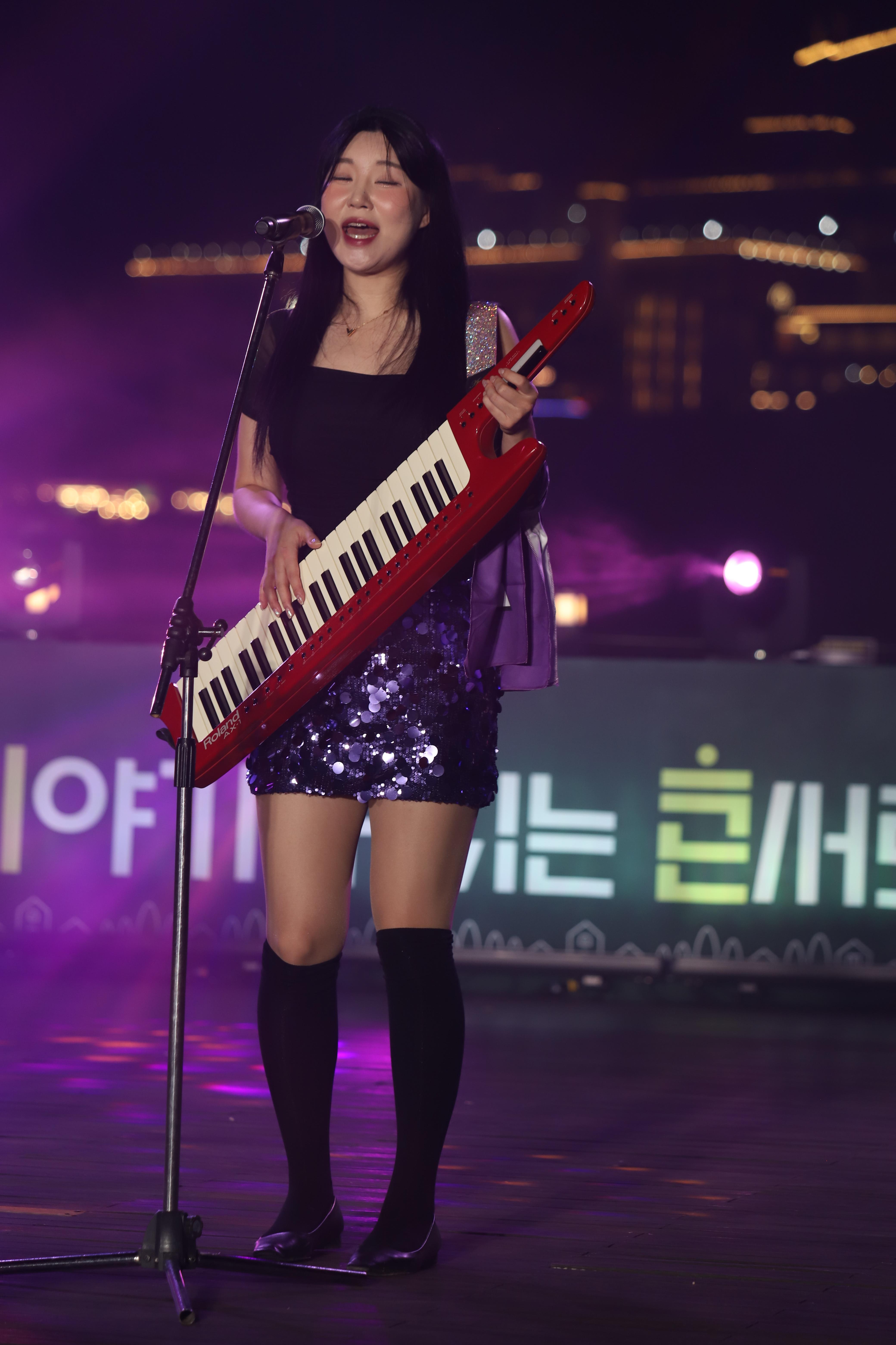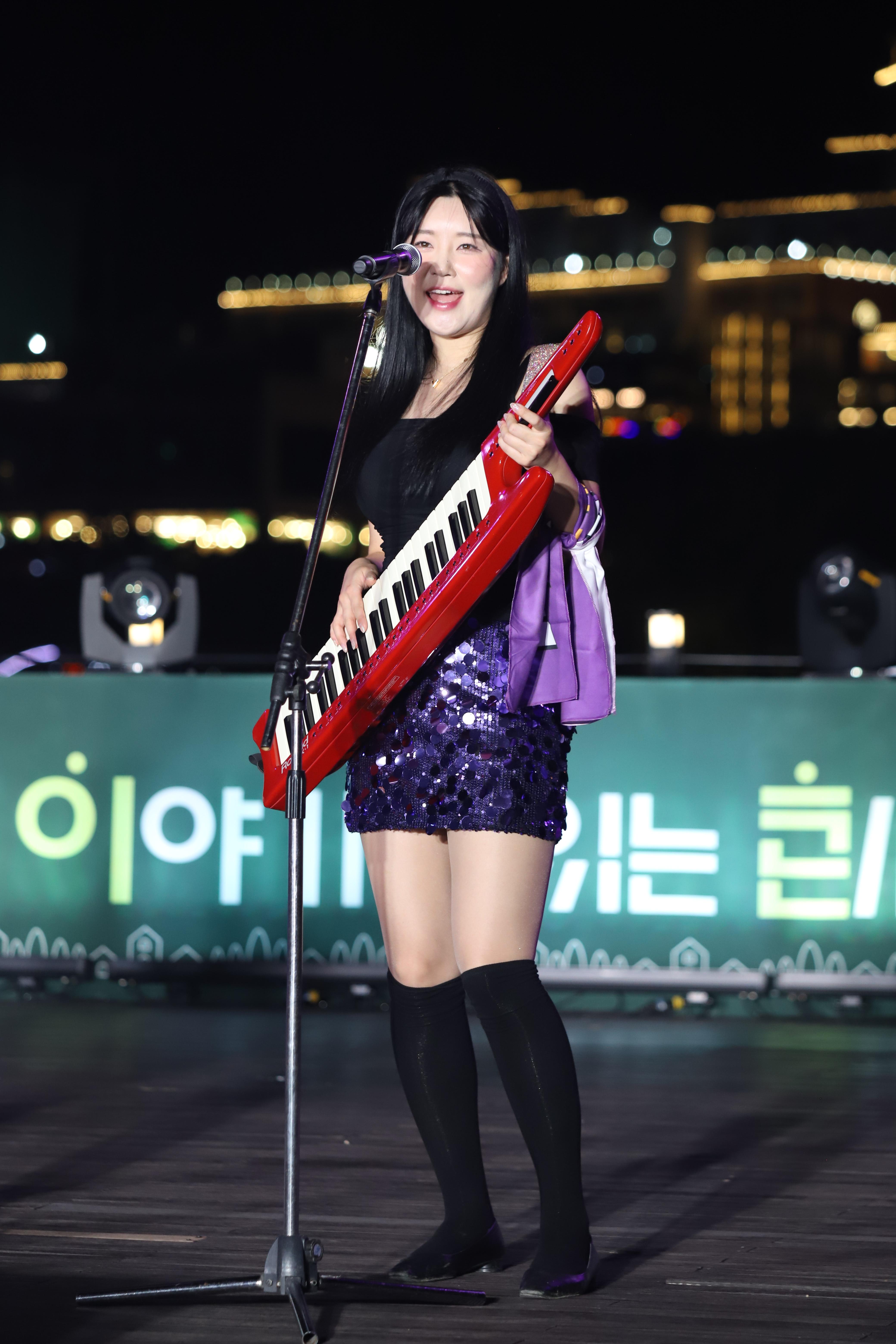 김나현씨는 건반을 치고, 노래를 부릅니다.