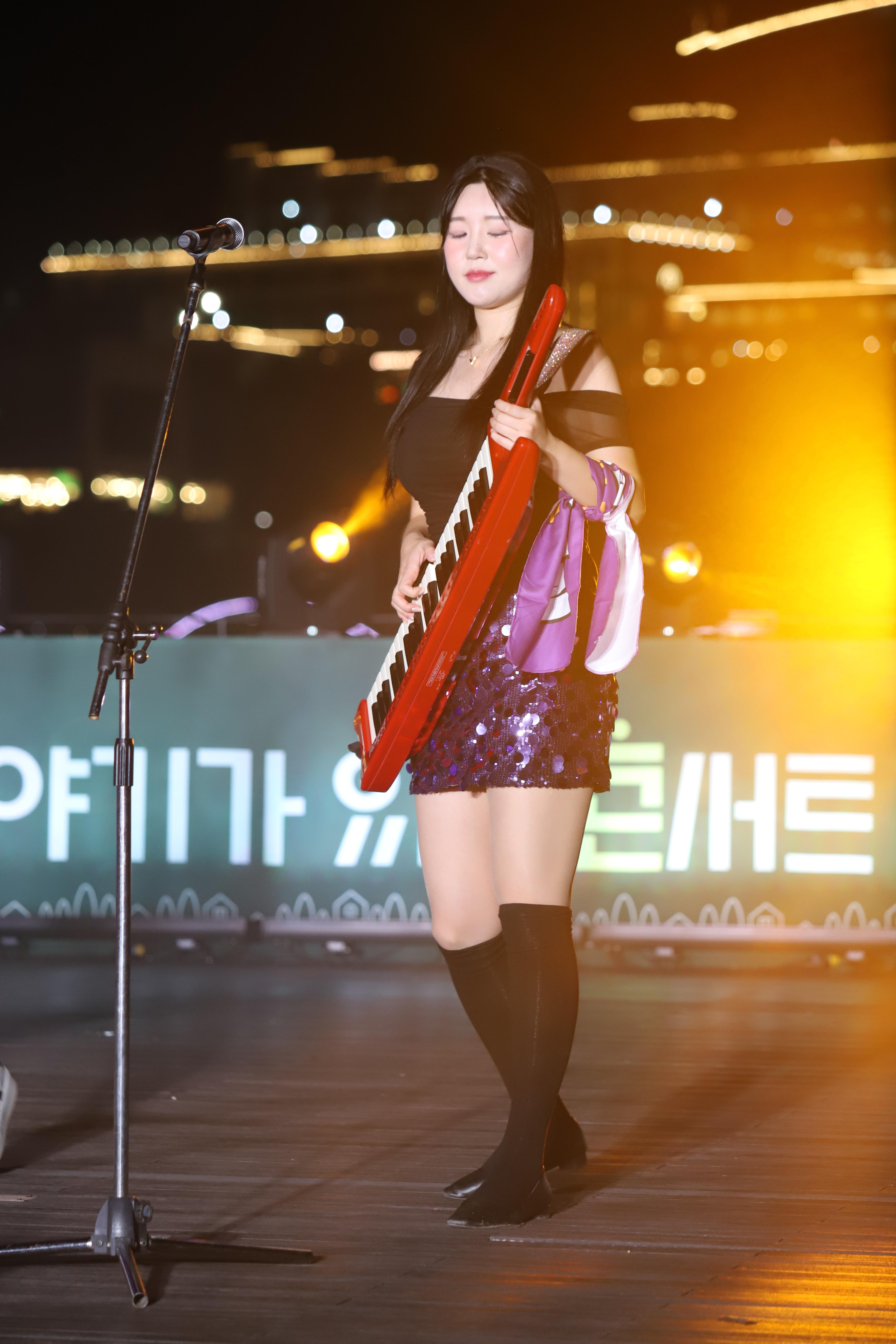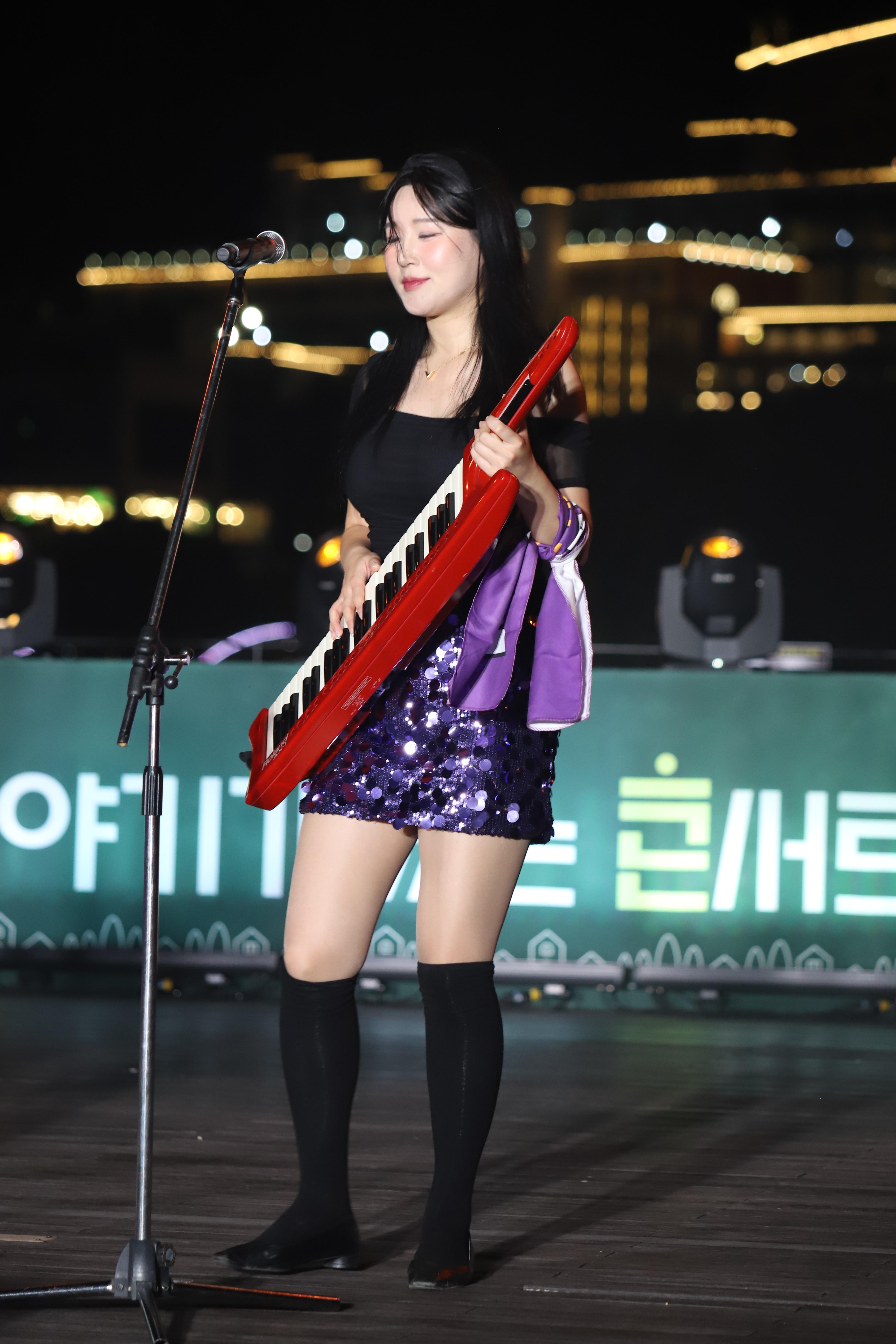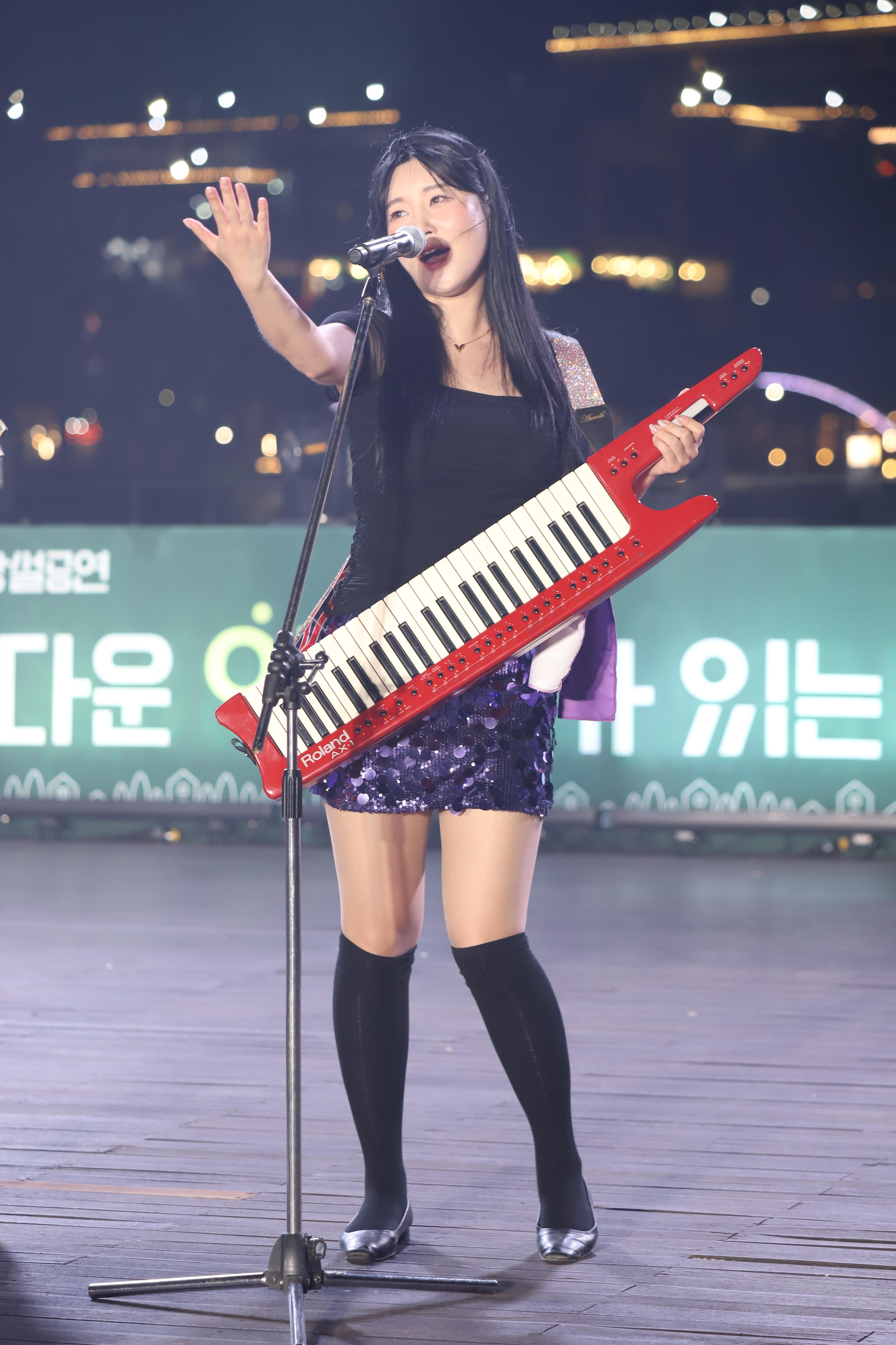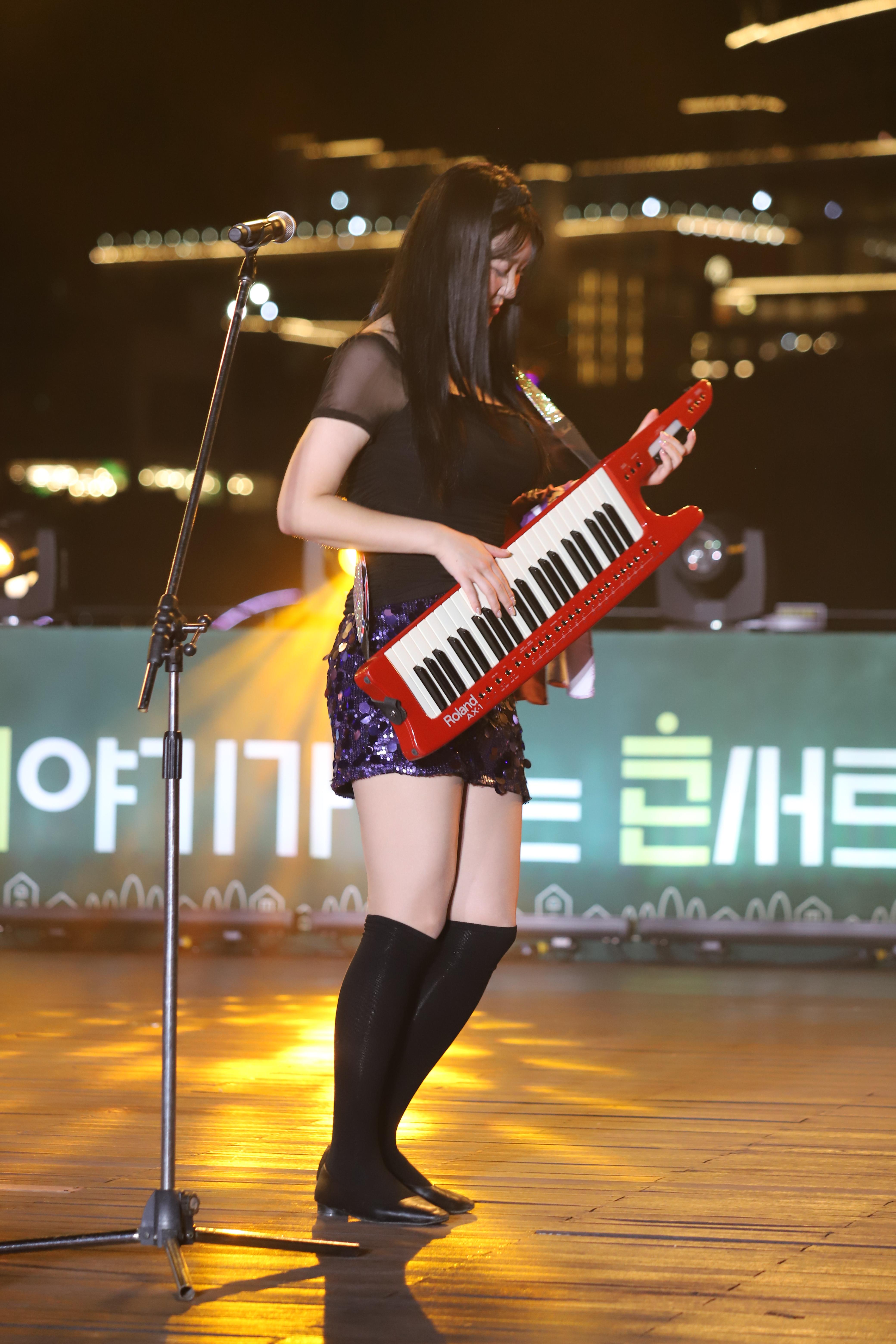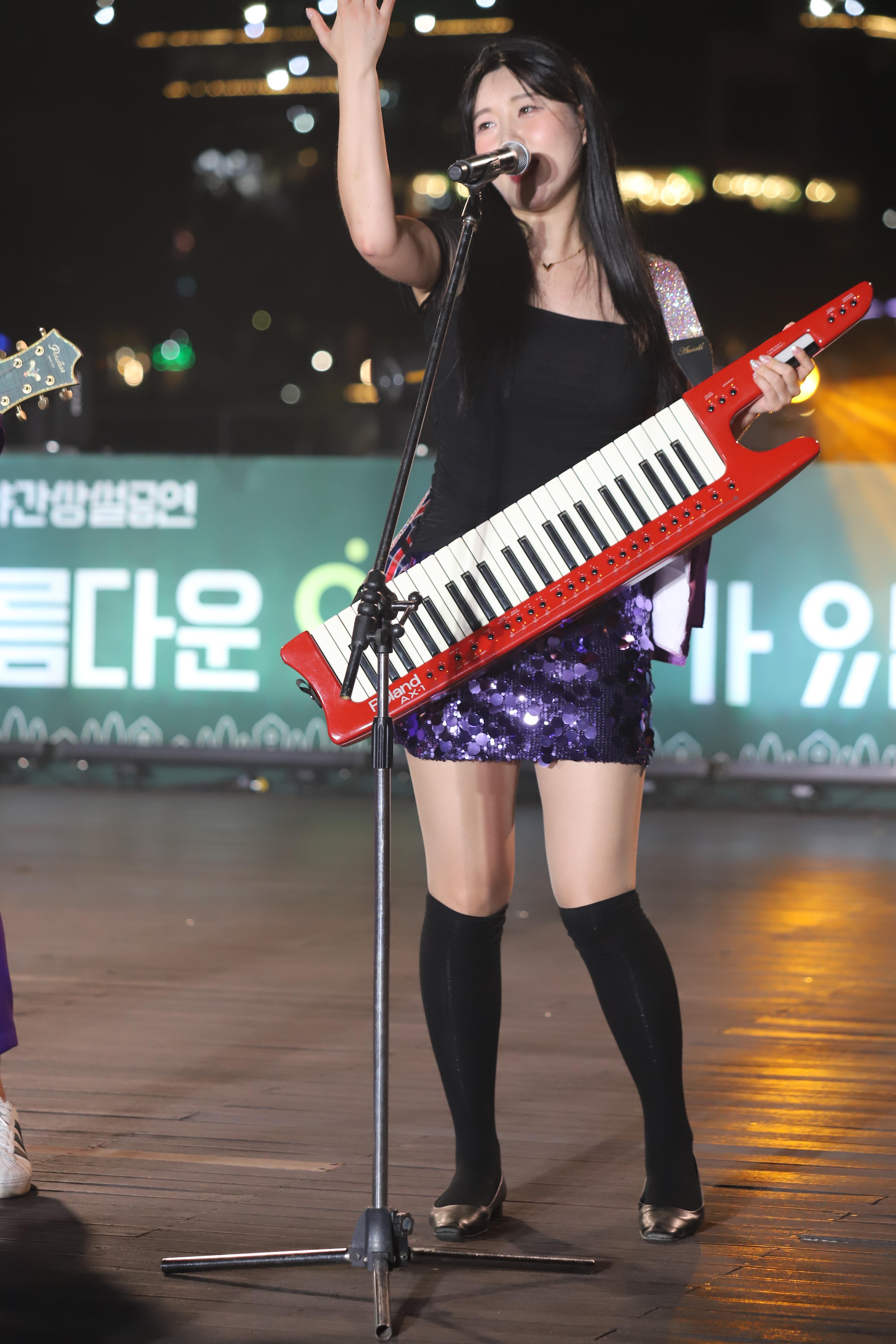 김나현씨는 건반을 치고, 노래를 부릅니다.