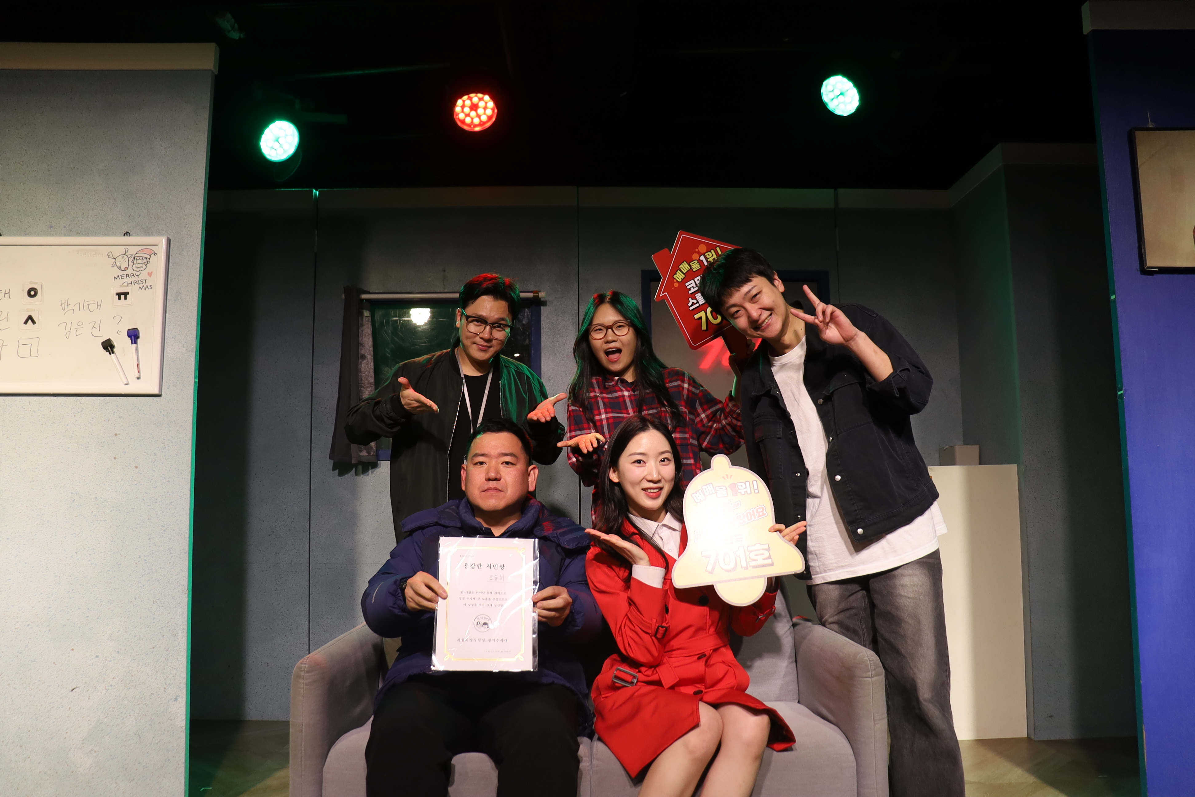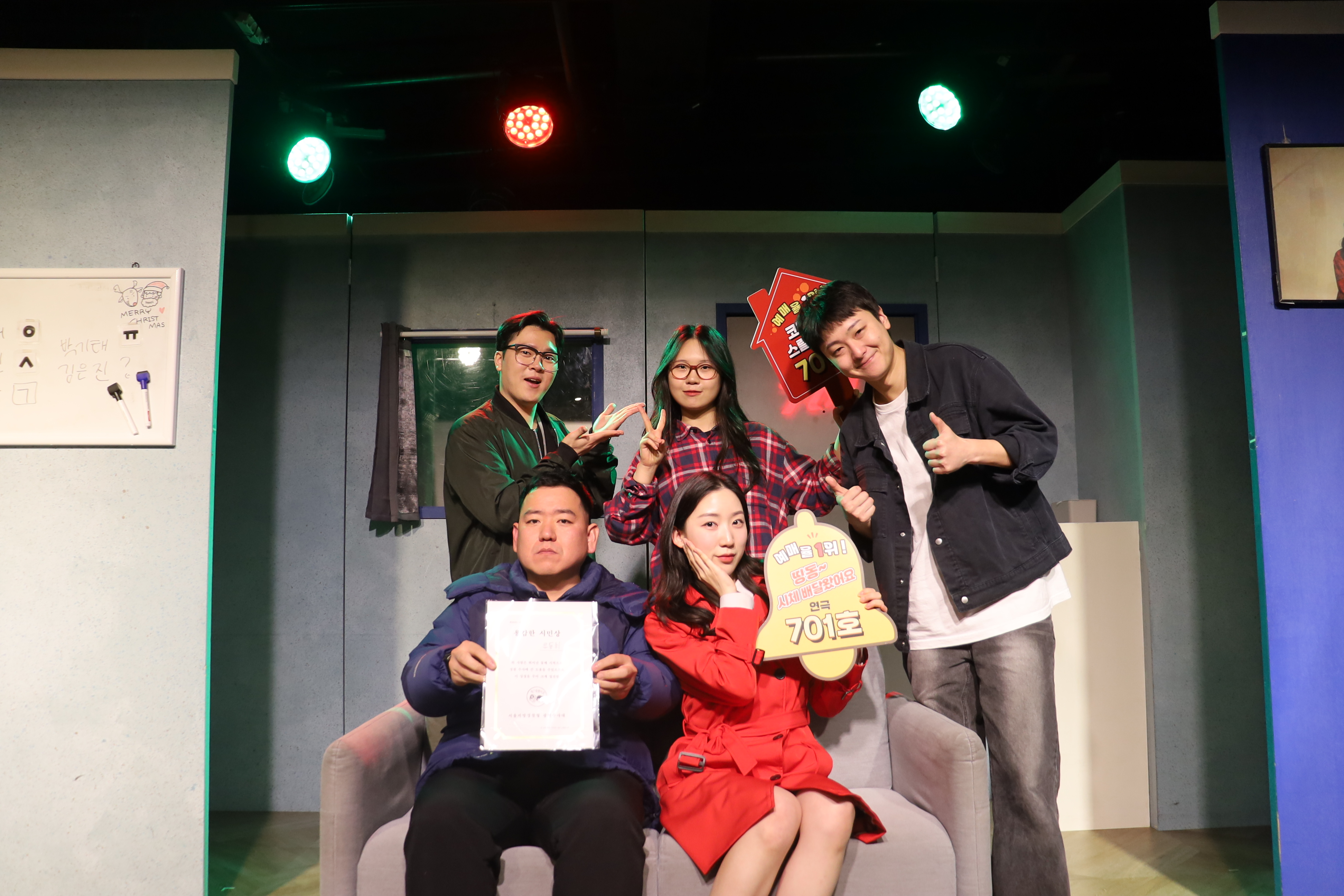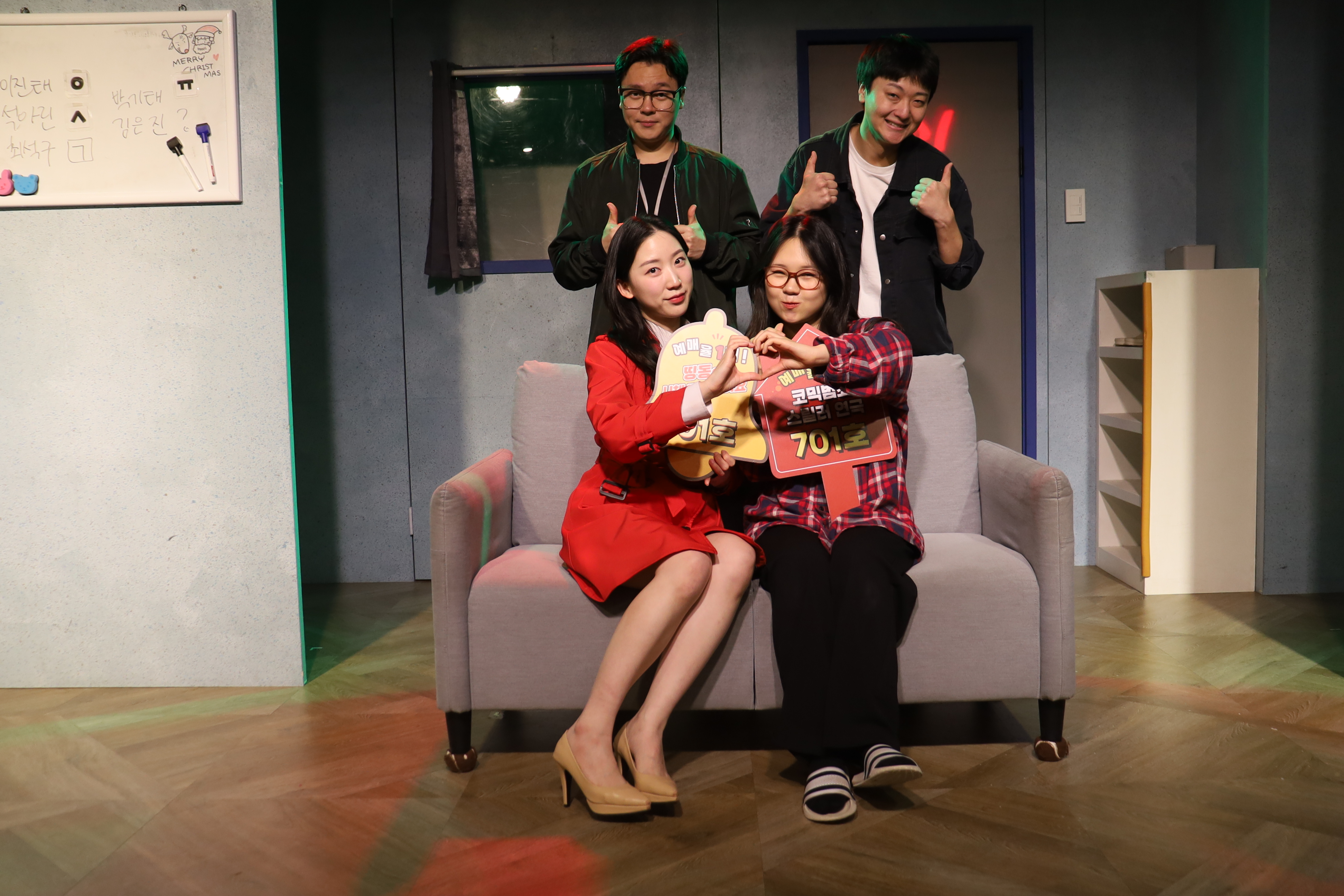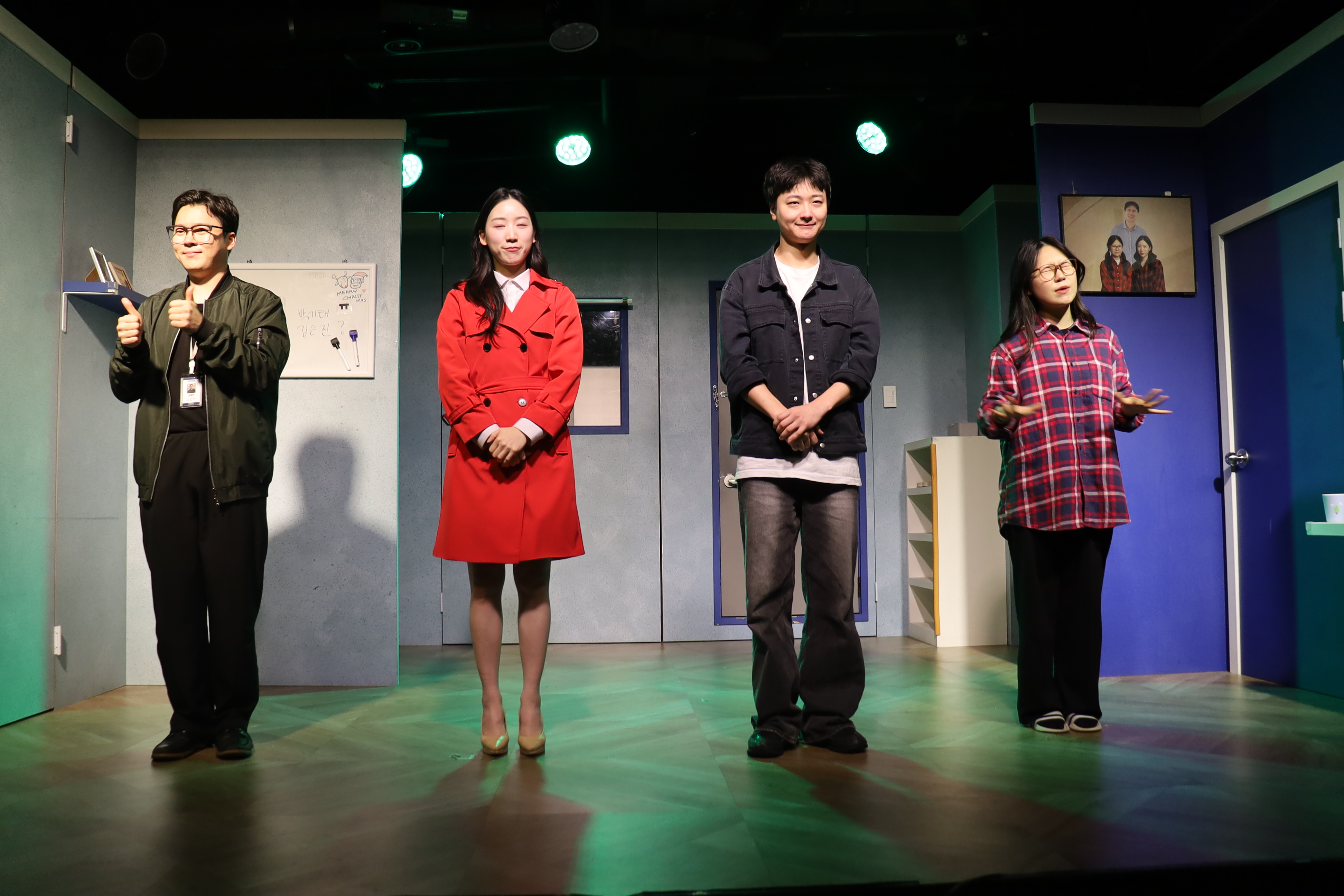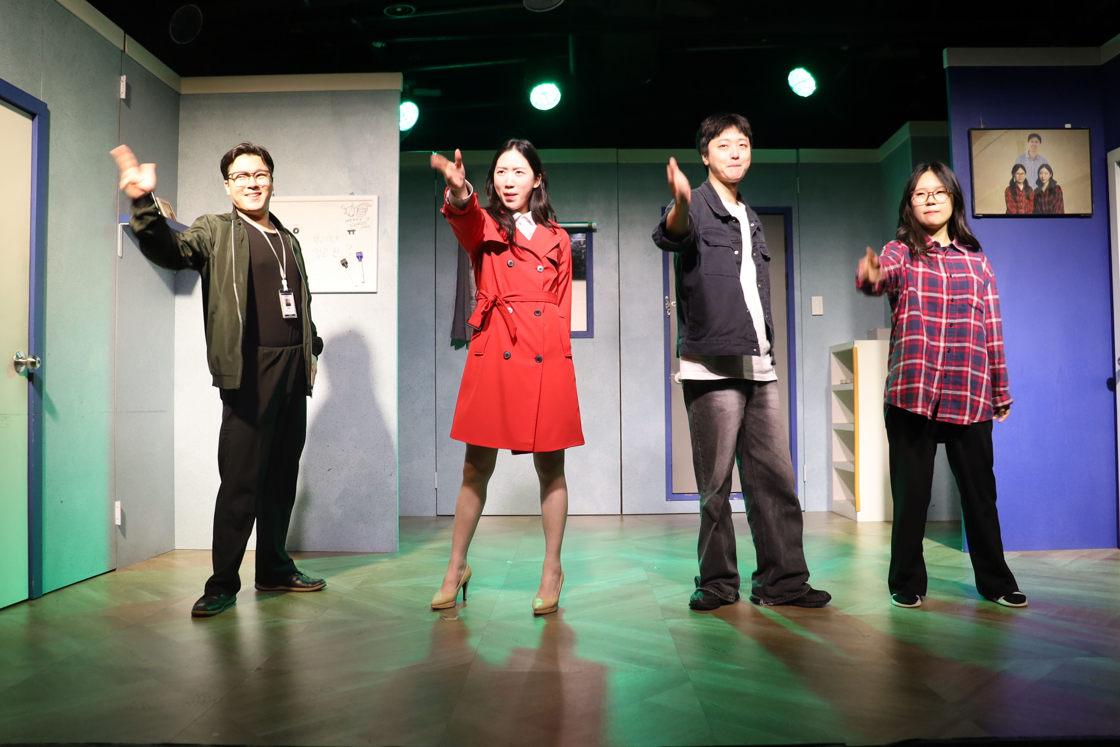 배우들의 마무리 포즈 취하였습니다.