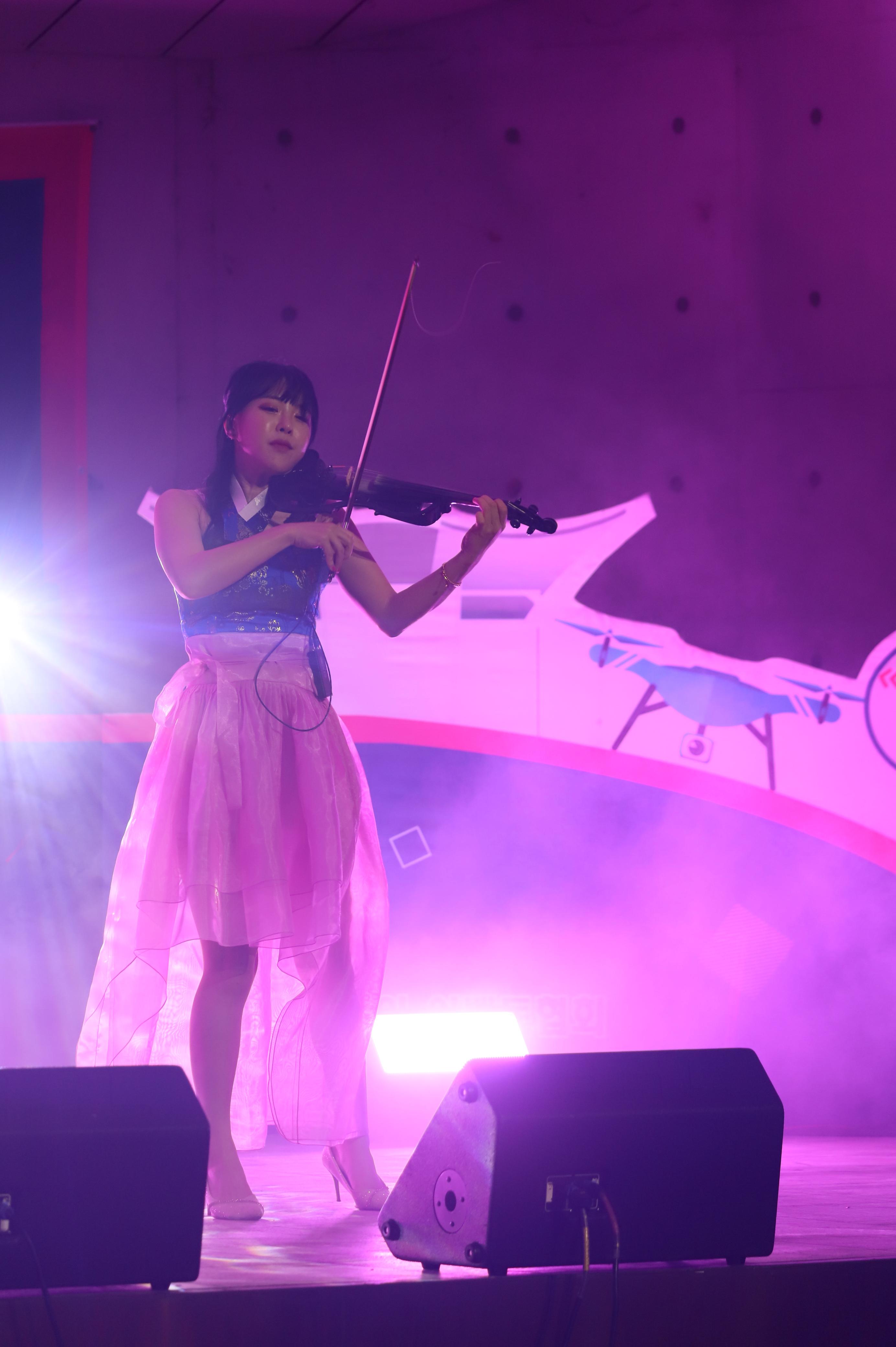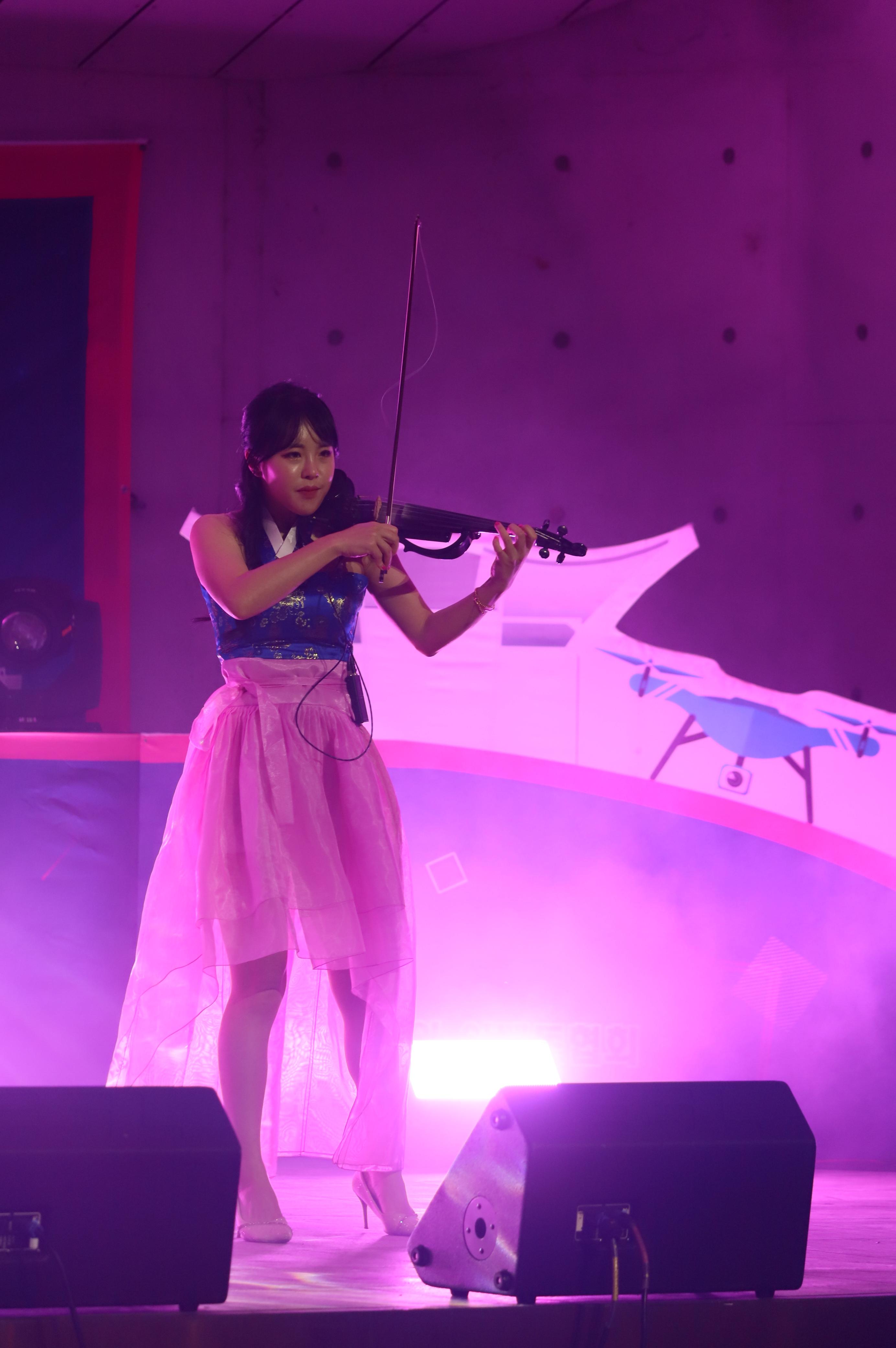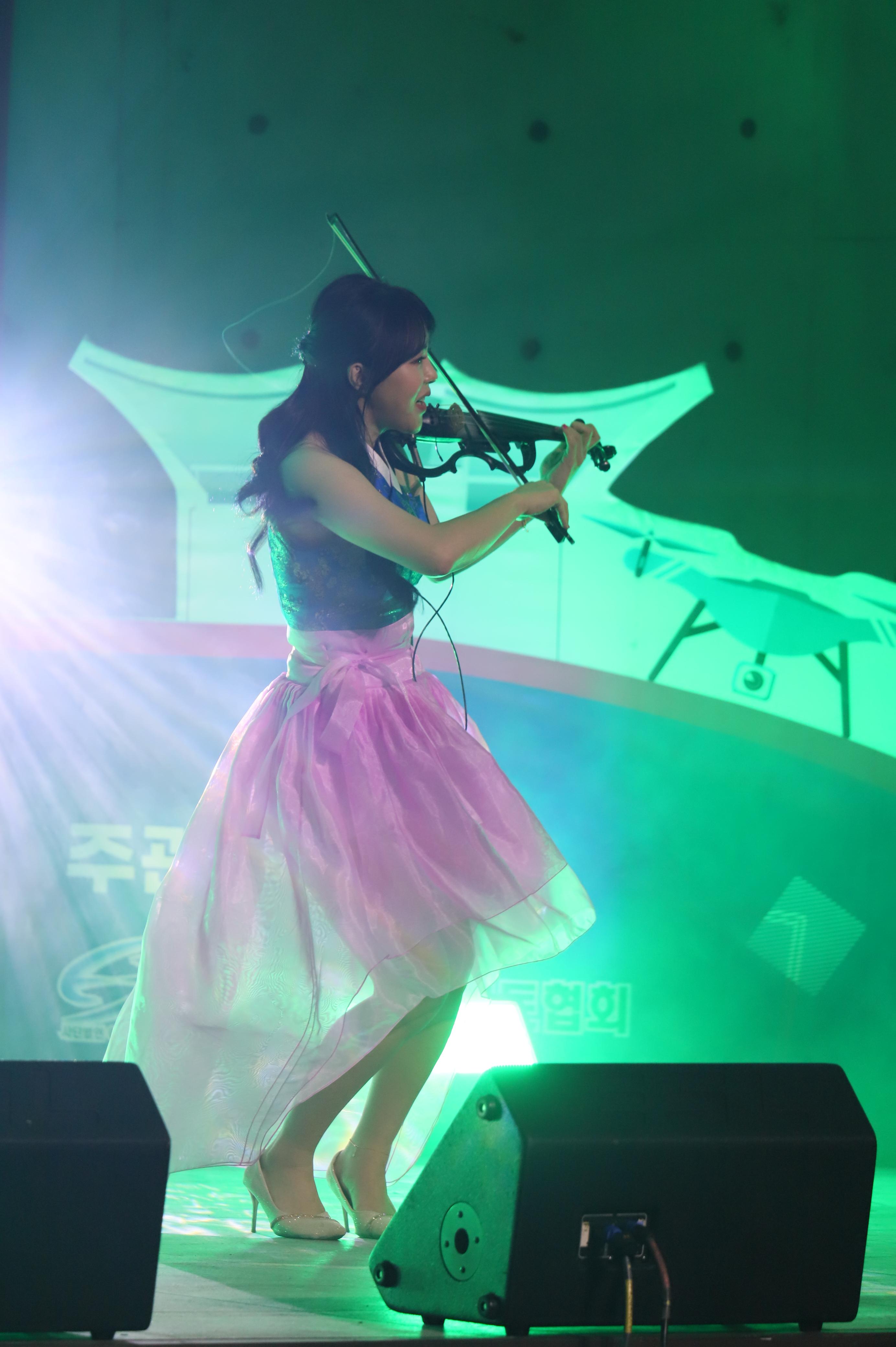 전자첼로 연주를 하는 모습 입니다.
