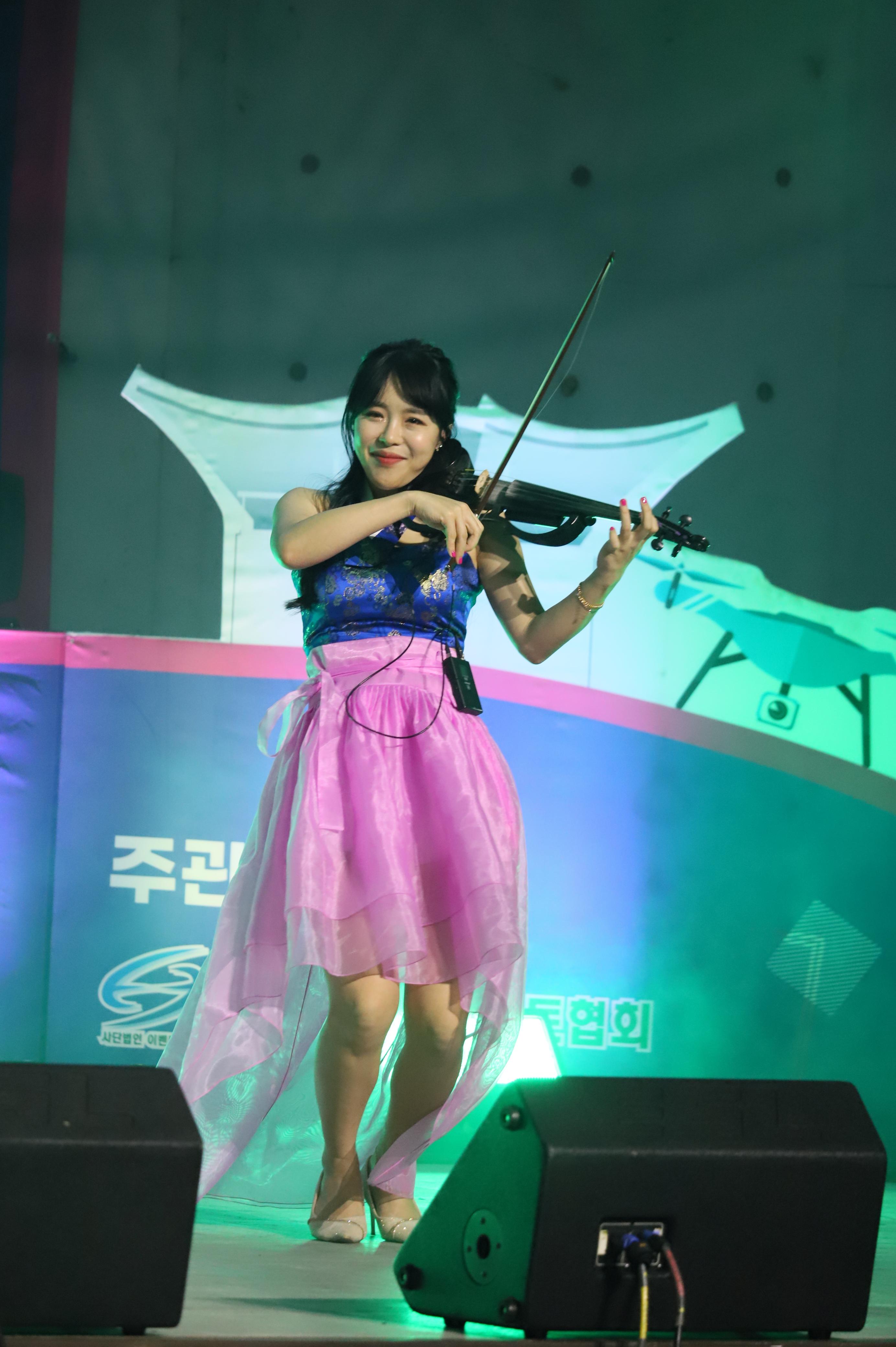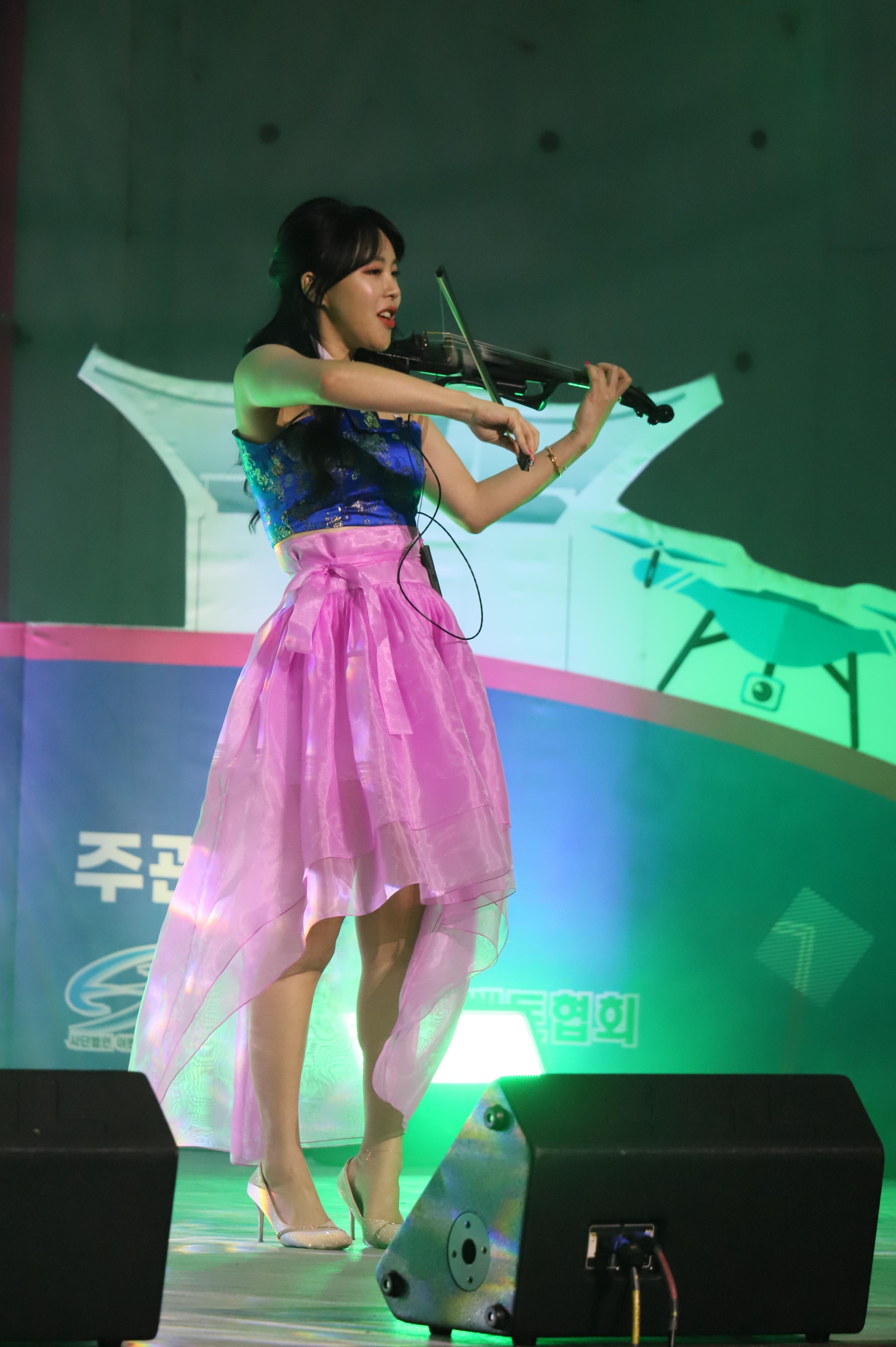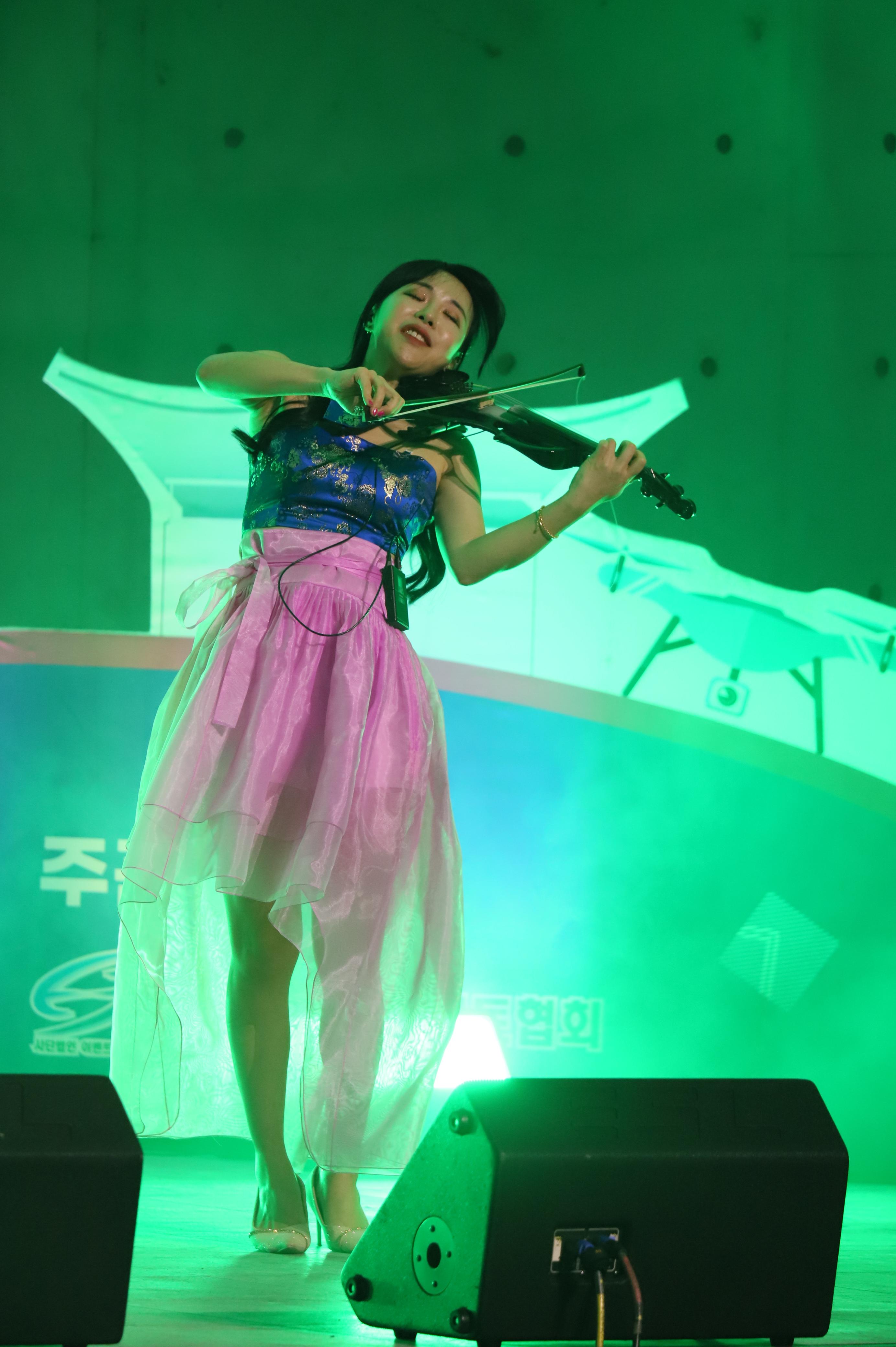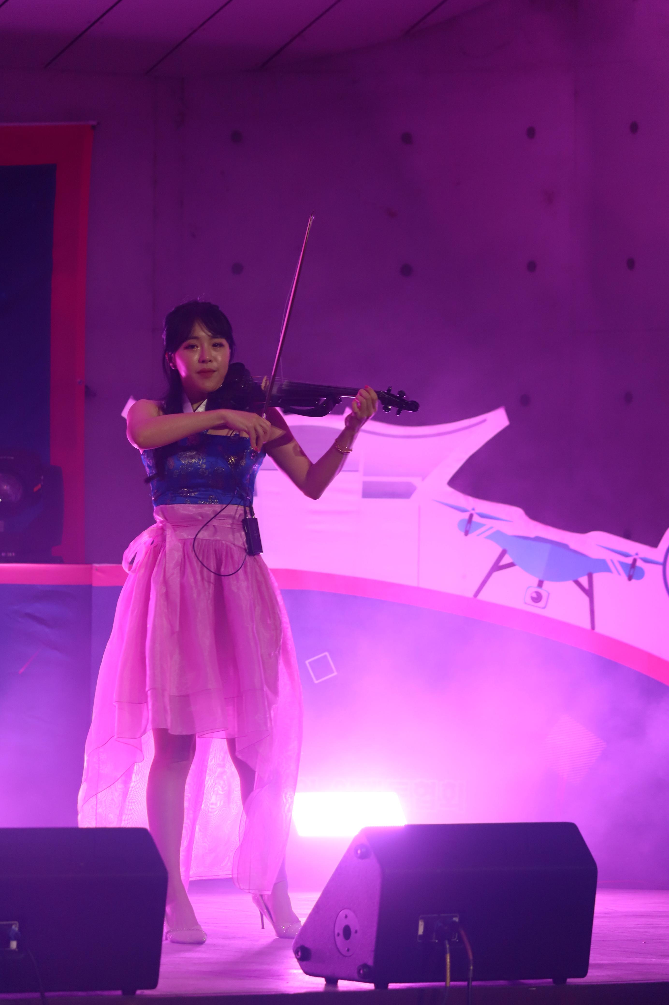 전자첼로 연주를 하는 모습 입니다.