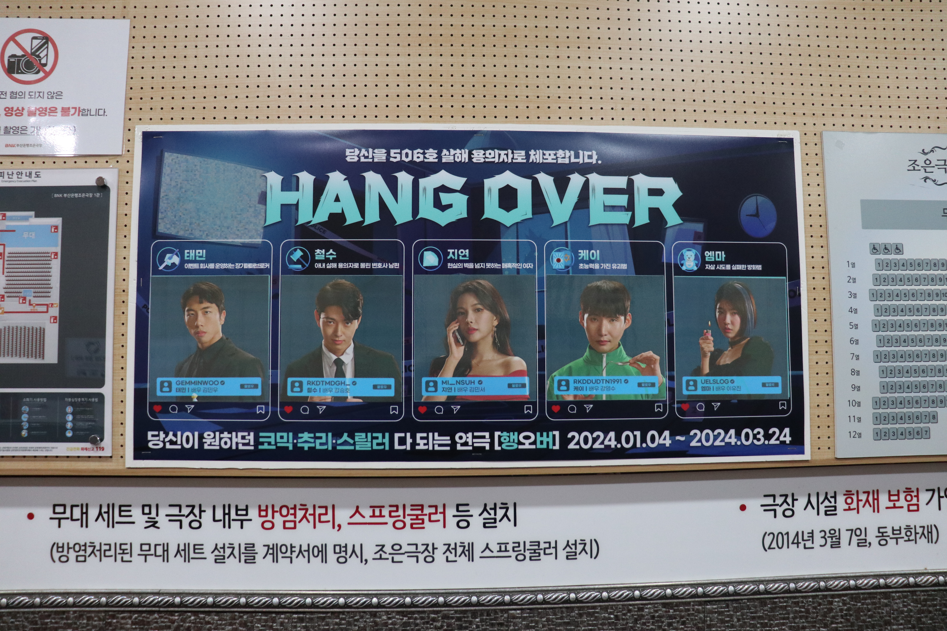 행오버 기존 배우는 김민서,김민우,이유진씨 이며, 기존에 강철수역,엠마역,유지연역으로 하셨던분은 현재 장태민역으로 하신 김민우 배우님, 엠마역으로 하신 이유진 배우님, 유지연역으로 하셨던 김민서 배우님이 출연 하였습니다.