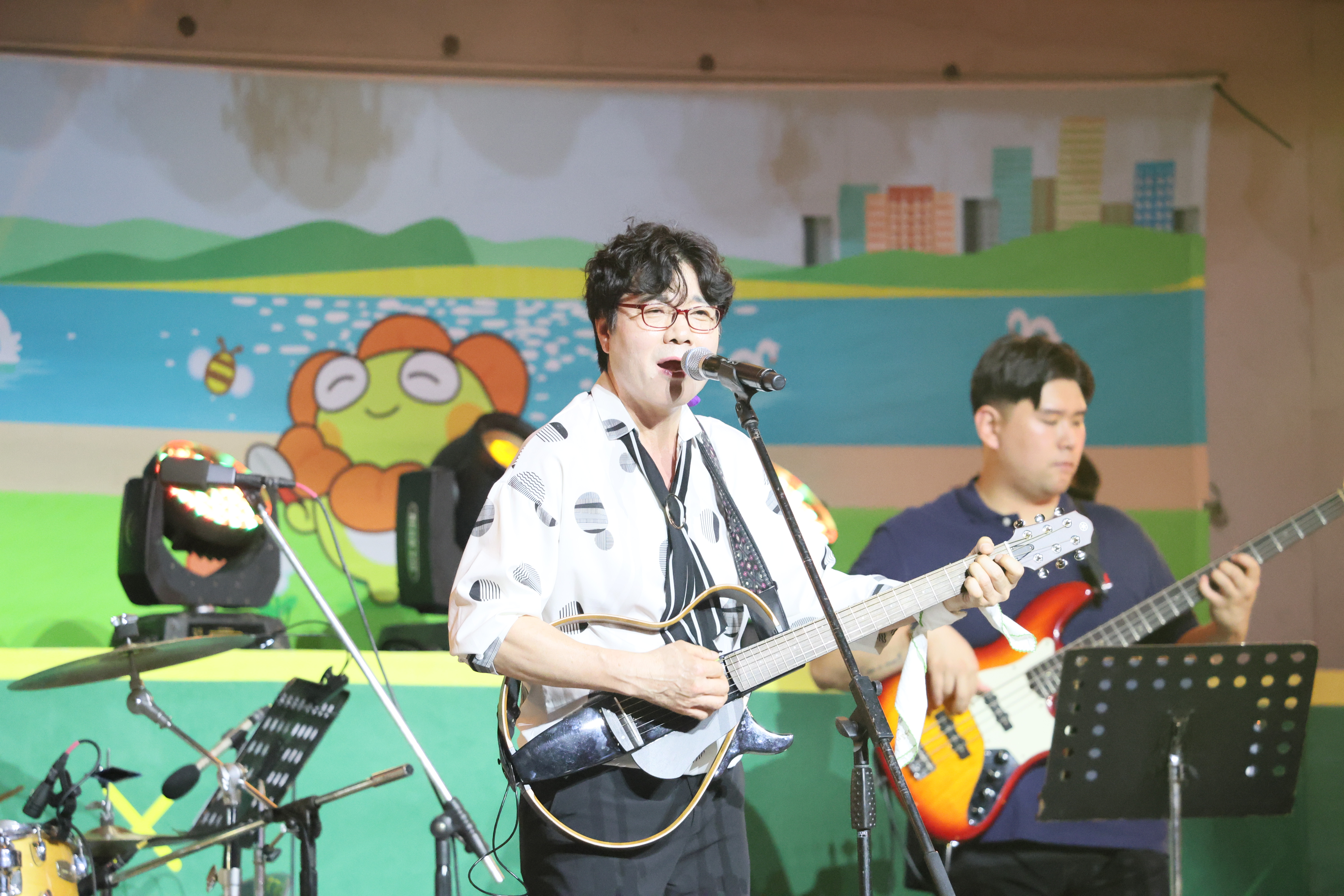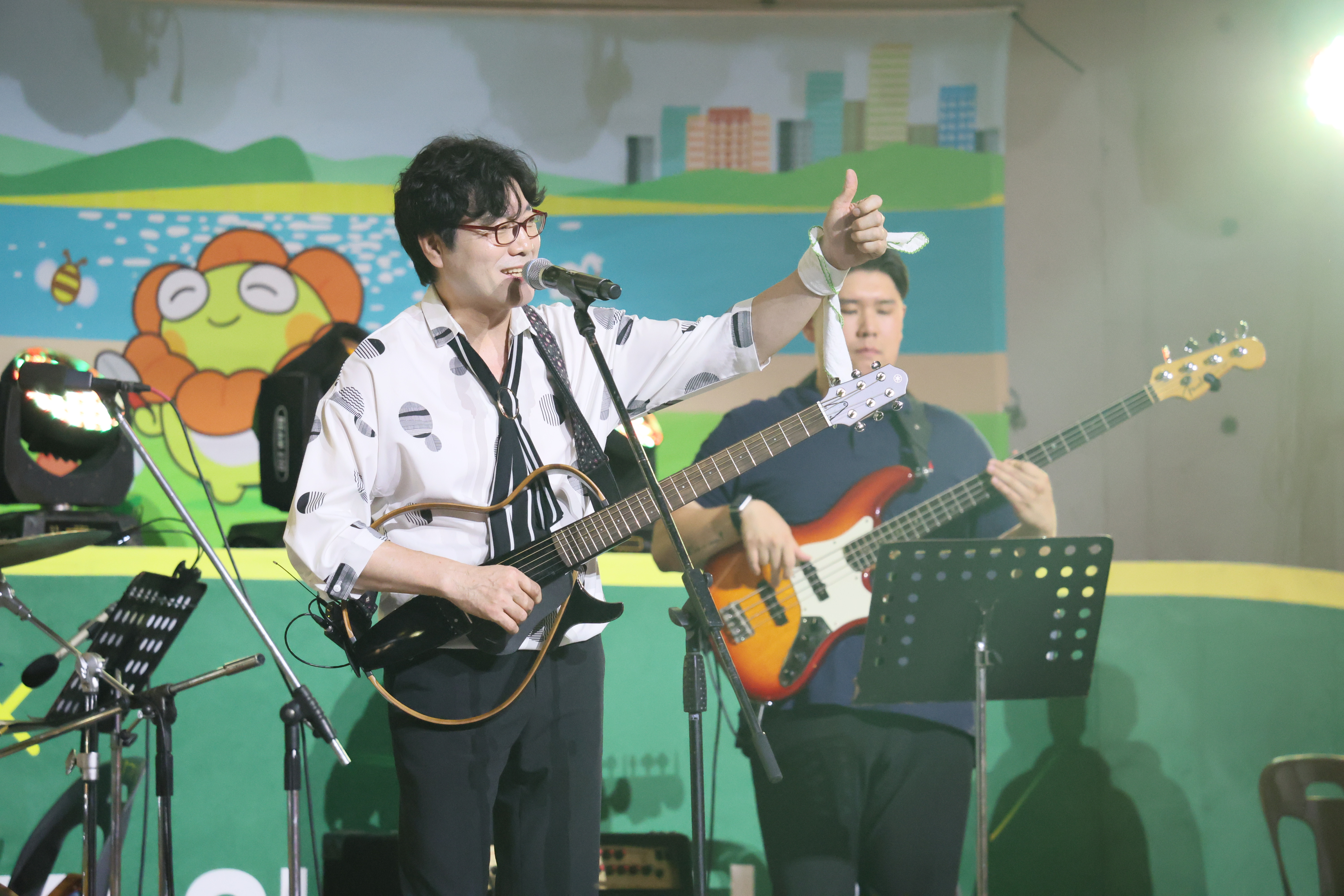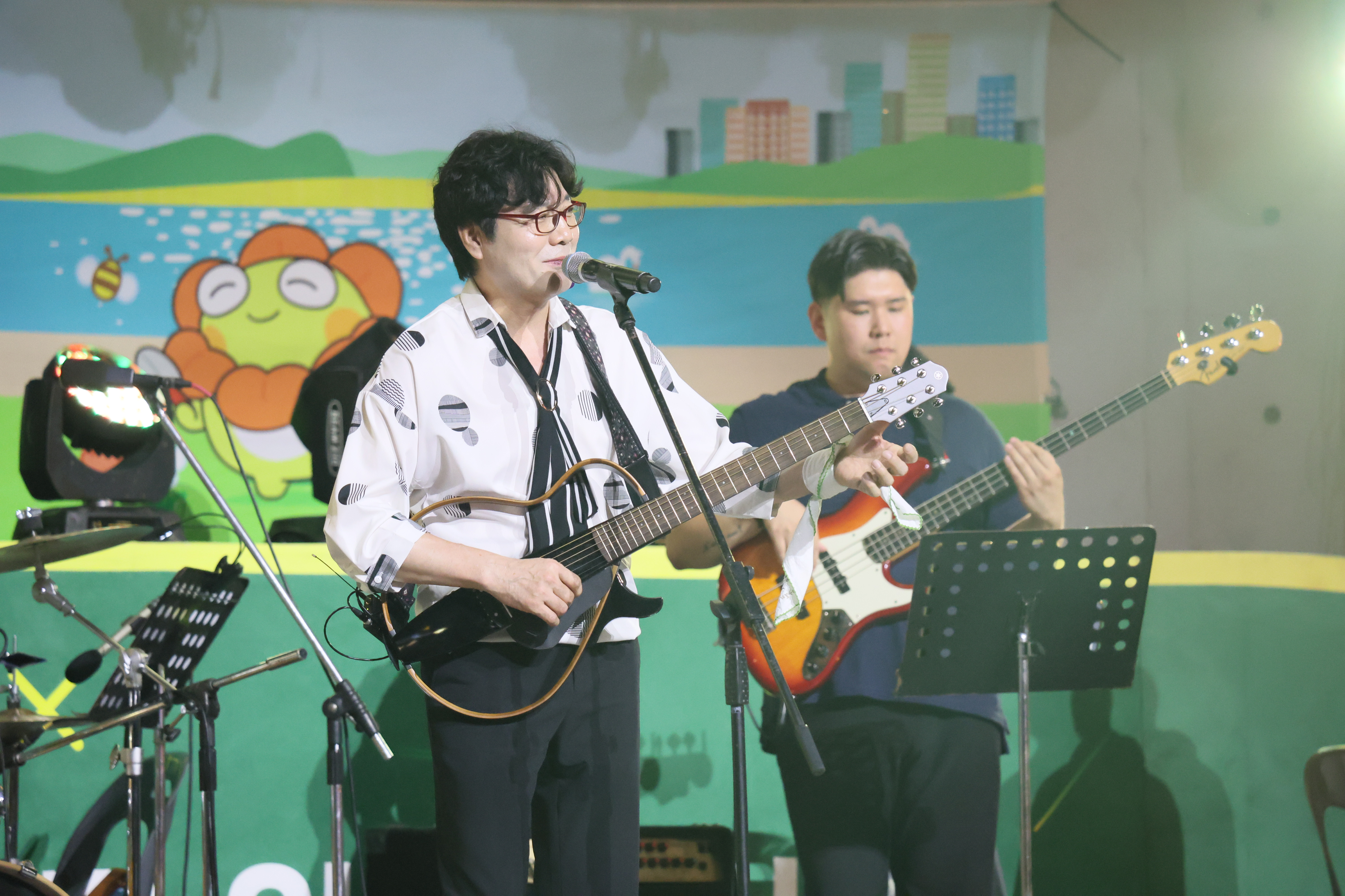 장진철씨 입니다. 통기타 연주 하고 노래를 부릅니다. 굳프랜드도 동시에 합니다.