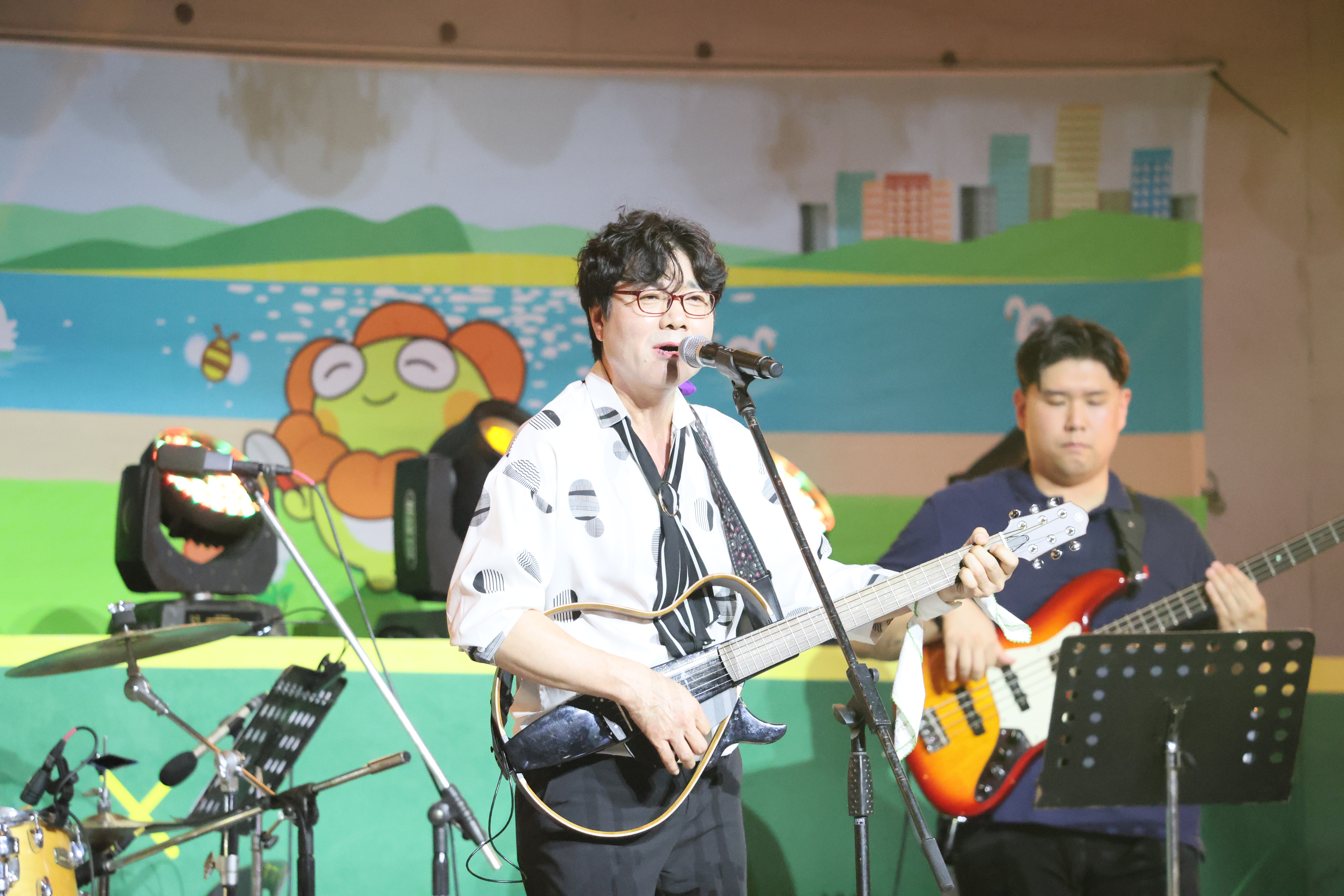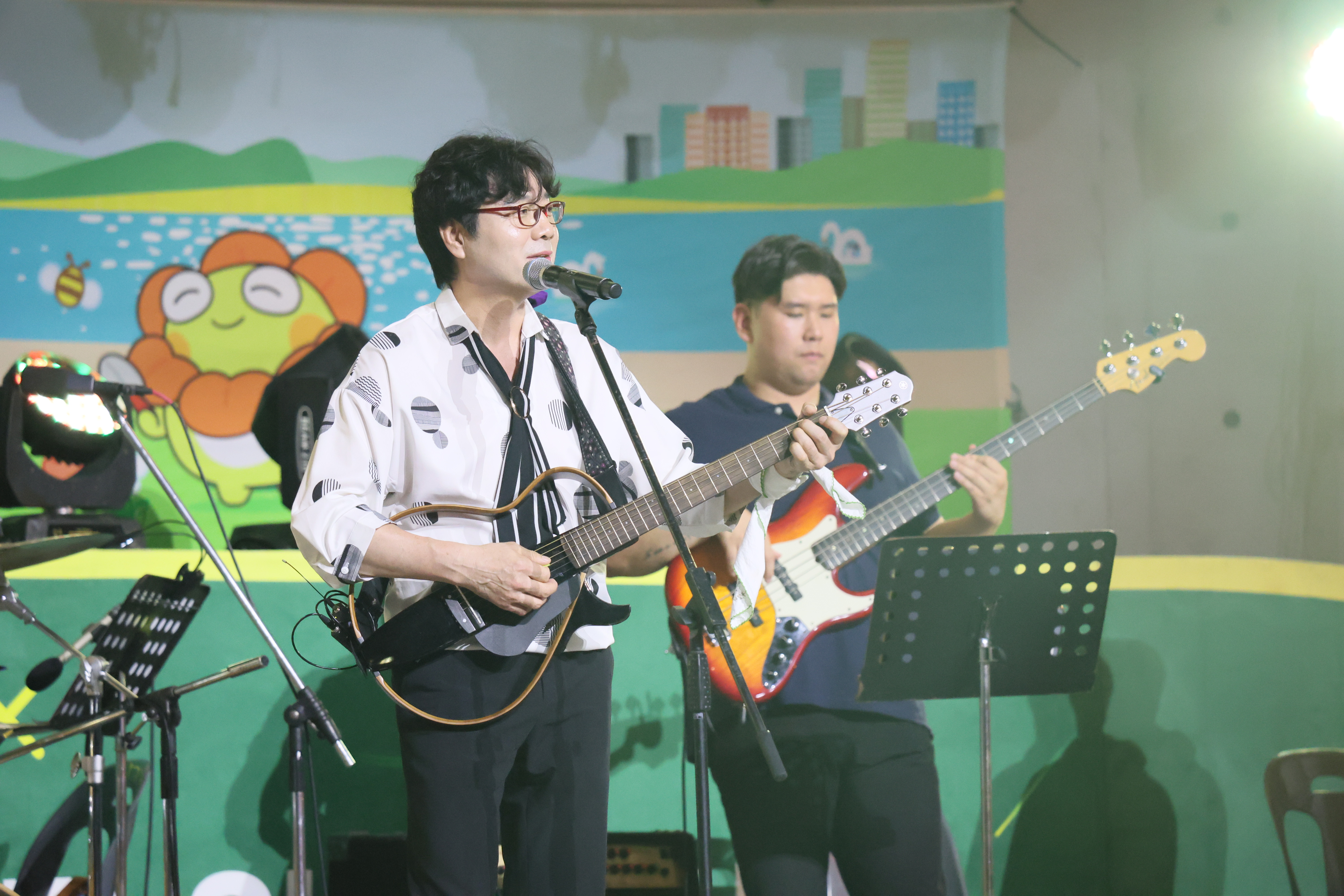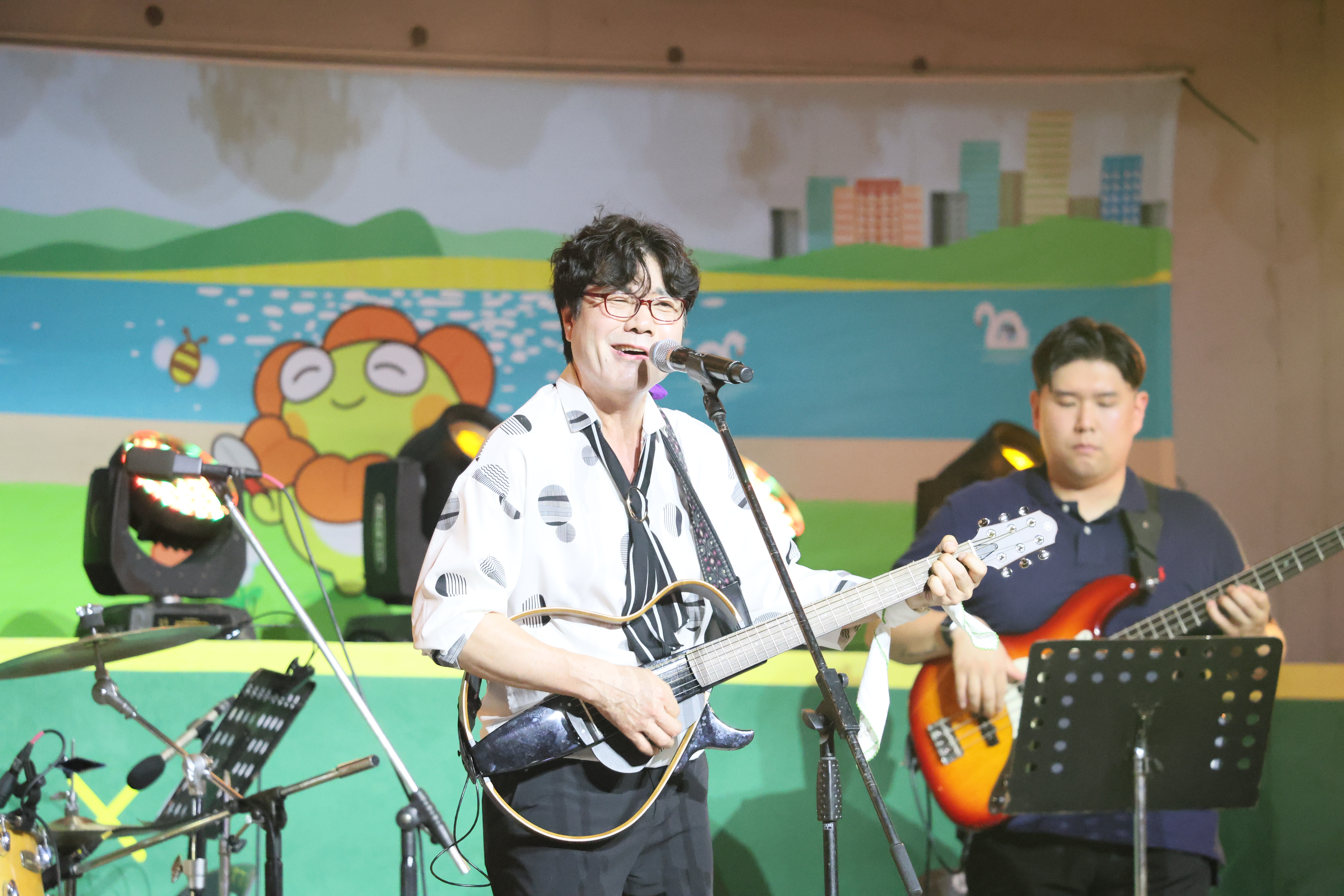 장진철씨 입니다. 통기타 연주 하고 노래를 부릅니다. 굳프랜드도 동시에 합니다.