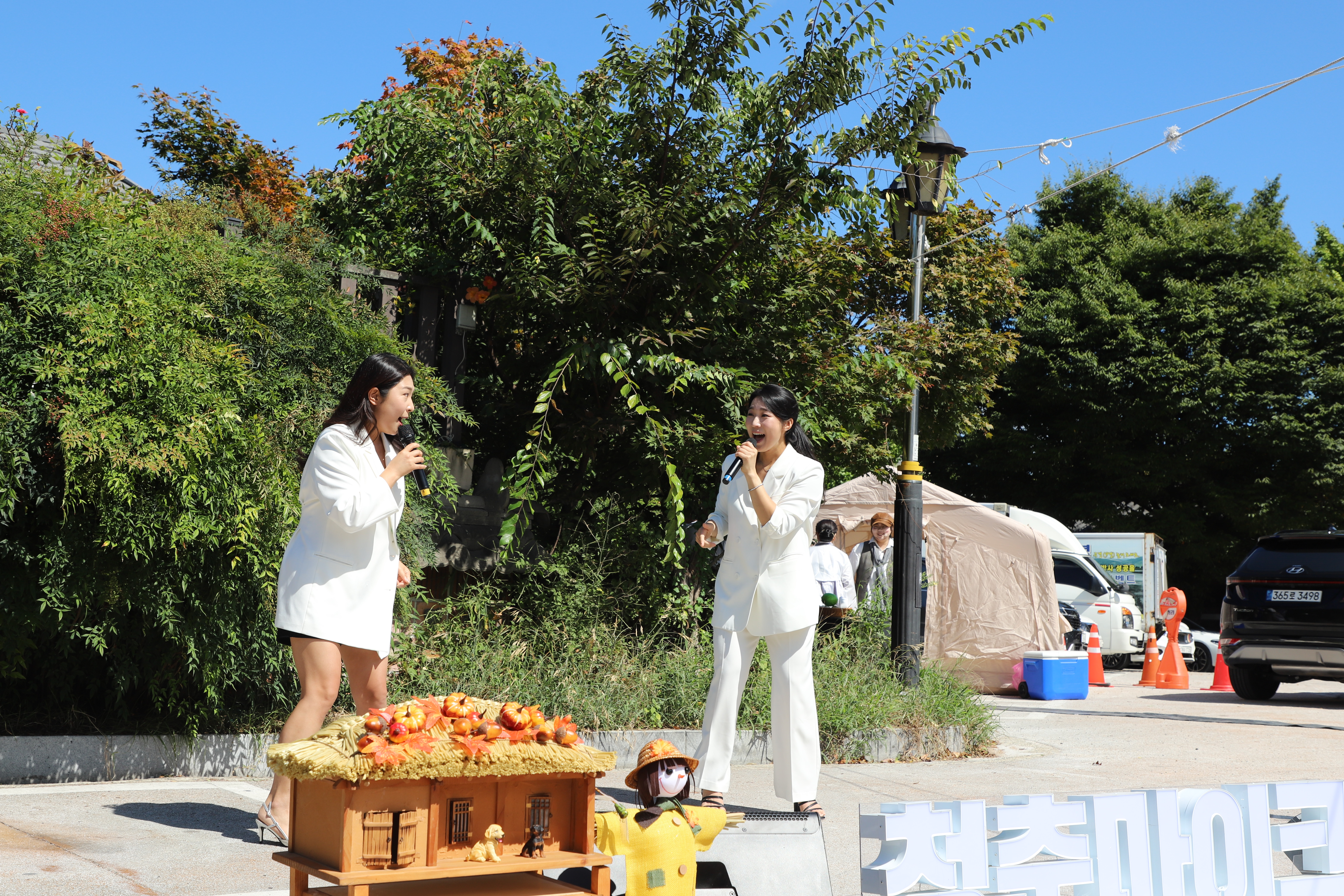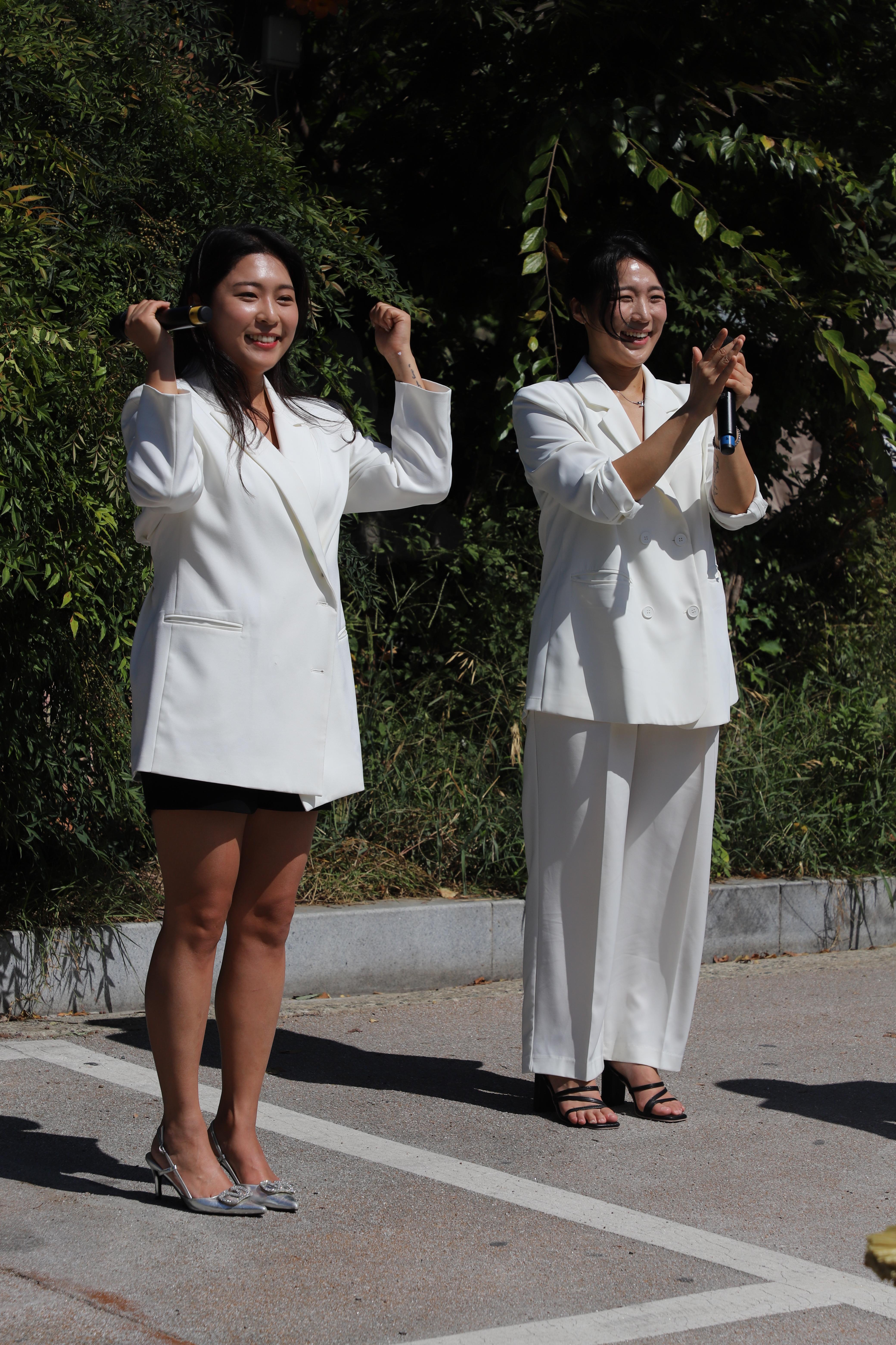 여성분 둘이서 노래를 부릅니다.