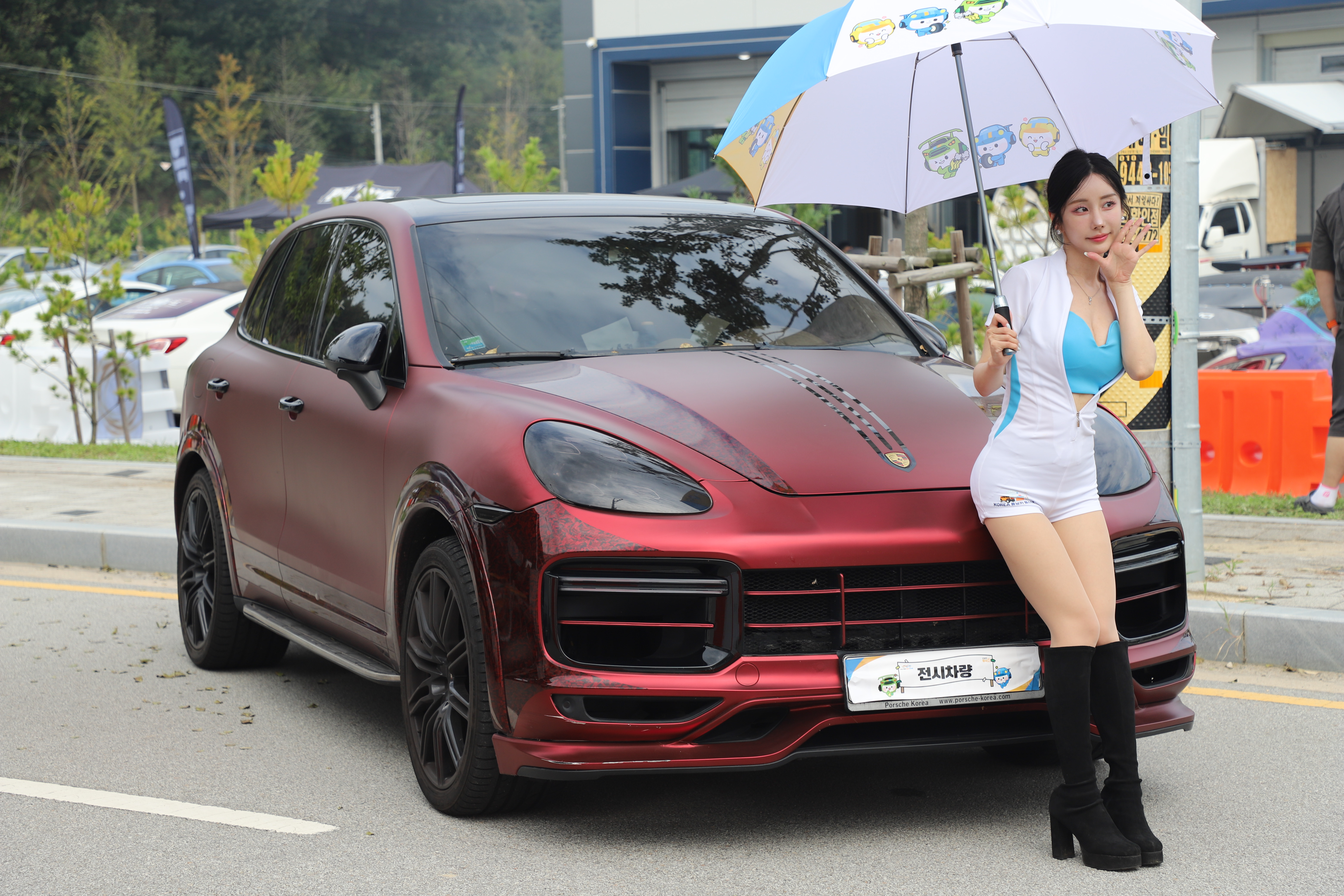 2025 튜닝카 페스티벌 10 초록색 슈퍼카에서도 포즈를 취합니다.둘이서 포즈 취하네요.마스코트와 같이 하였습니다. 하얀색 슈퍼카에서 포즈 취합니다.노란색 슈퍼카에서도 포즈 취합니다.포르쉐 지프차에서도 포즈를 취합니다. 야외 및 전시장 2025.09.28