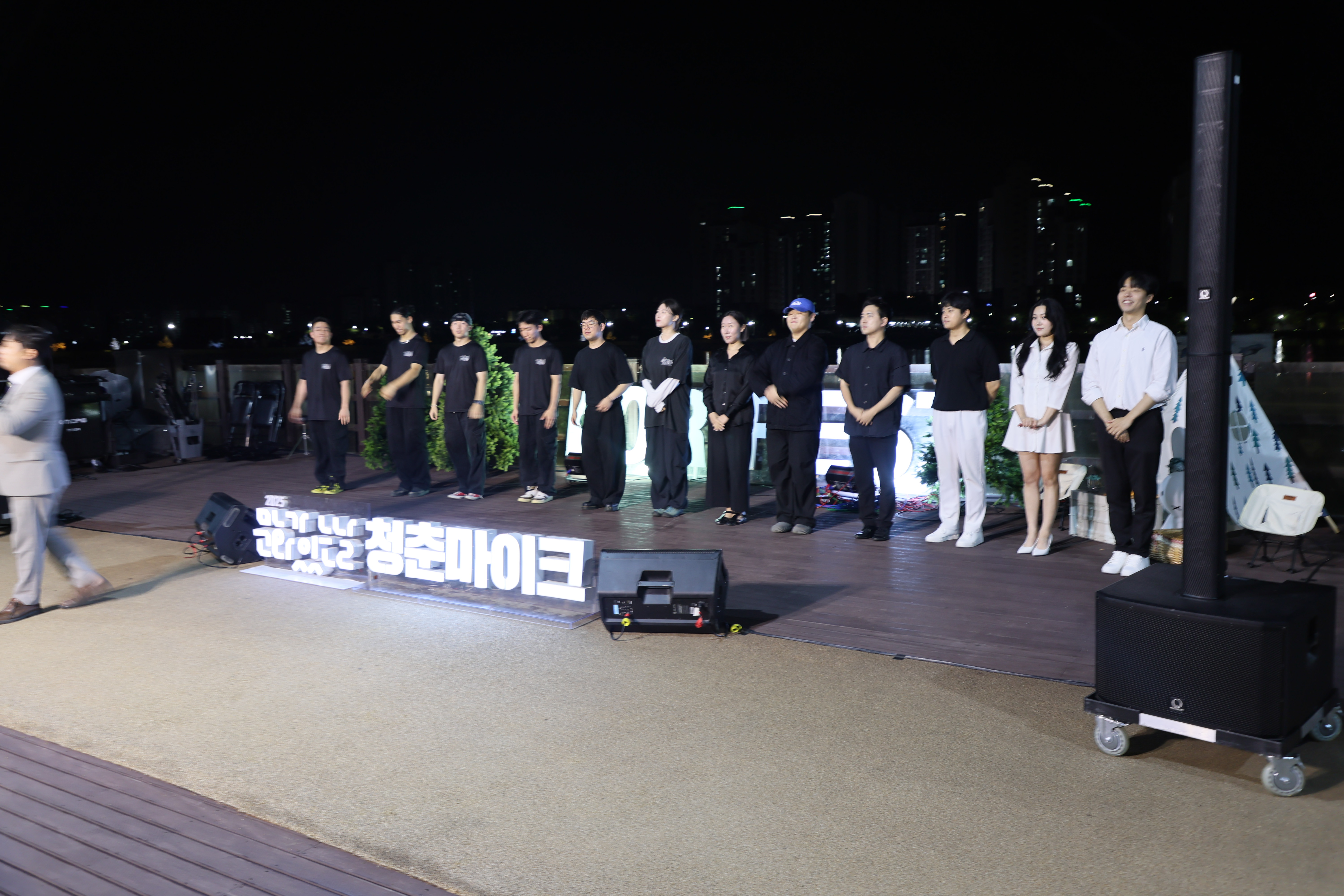 2025년 9월 27일 청춘마이크 경상권 포레스트 3 3팀이 인사를 하였습니다.곰스,민음 컴퍼니의 인사를 하였습니다.국악팀 민음의 인사를 하였습니다.댄스팀 본때크루의 포즈 취합니다. 뮤지컬팀 곰스컴퍼니의 인사를 하였습니다.커튼콜을 하였습니다.셀카를 하였습니다.영천우로지자연생태공원에서 청춘마이크를 하였습니다.하양역에서 영천시내버스 55,555번을 타고 창신아파트에 내리면 나오고, 영천역에서 1번을 타고 오셔도 됩니다. 야외 및 전시장 2025.09.28